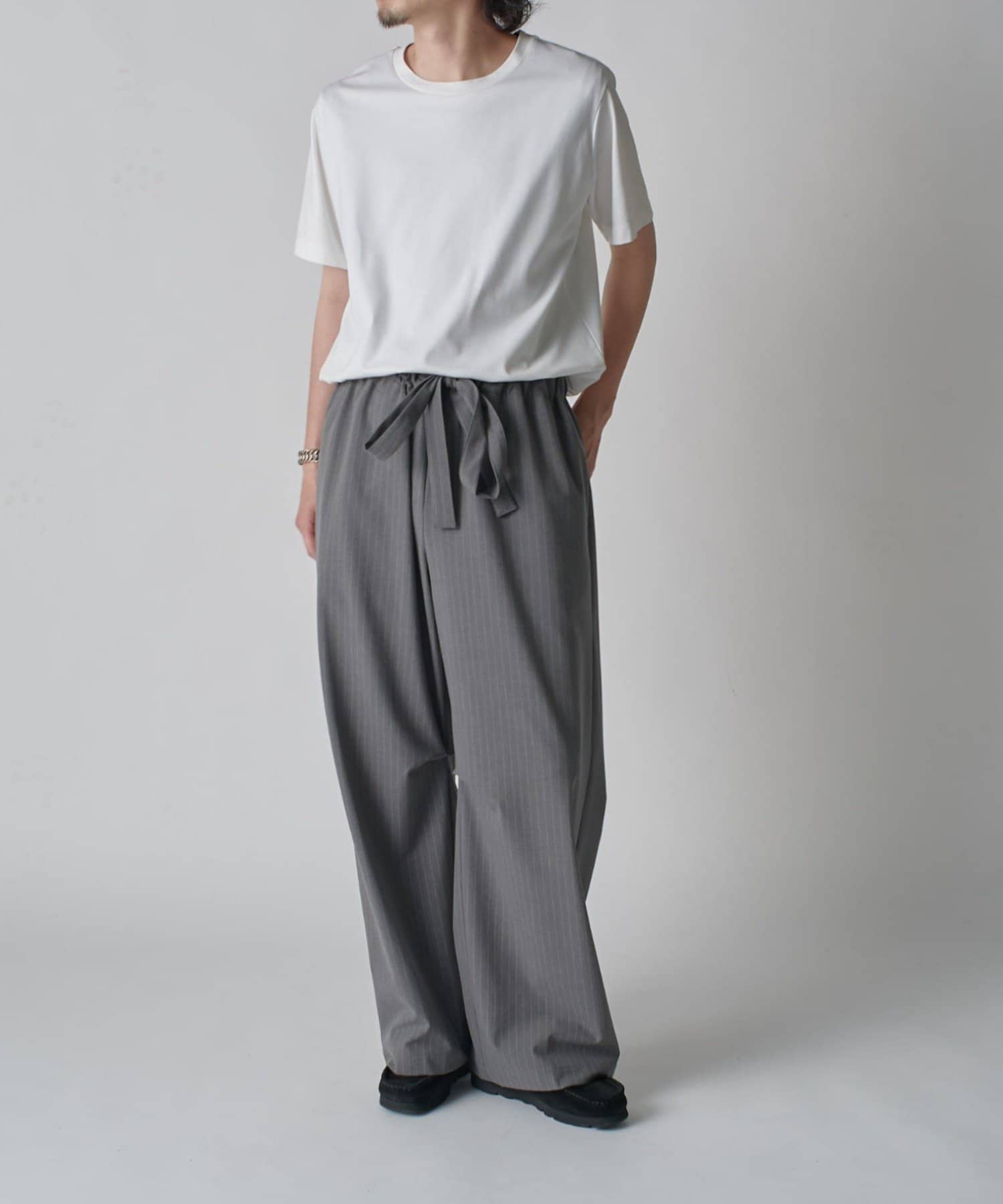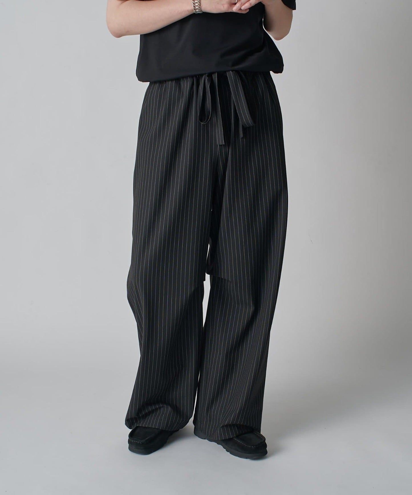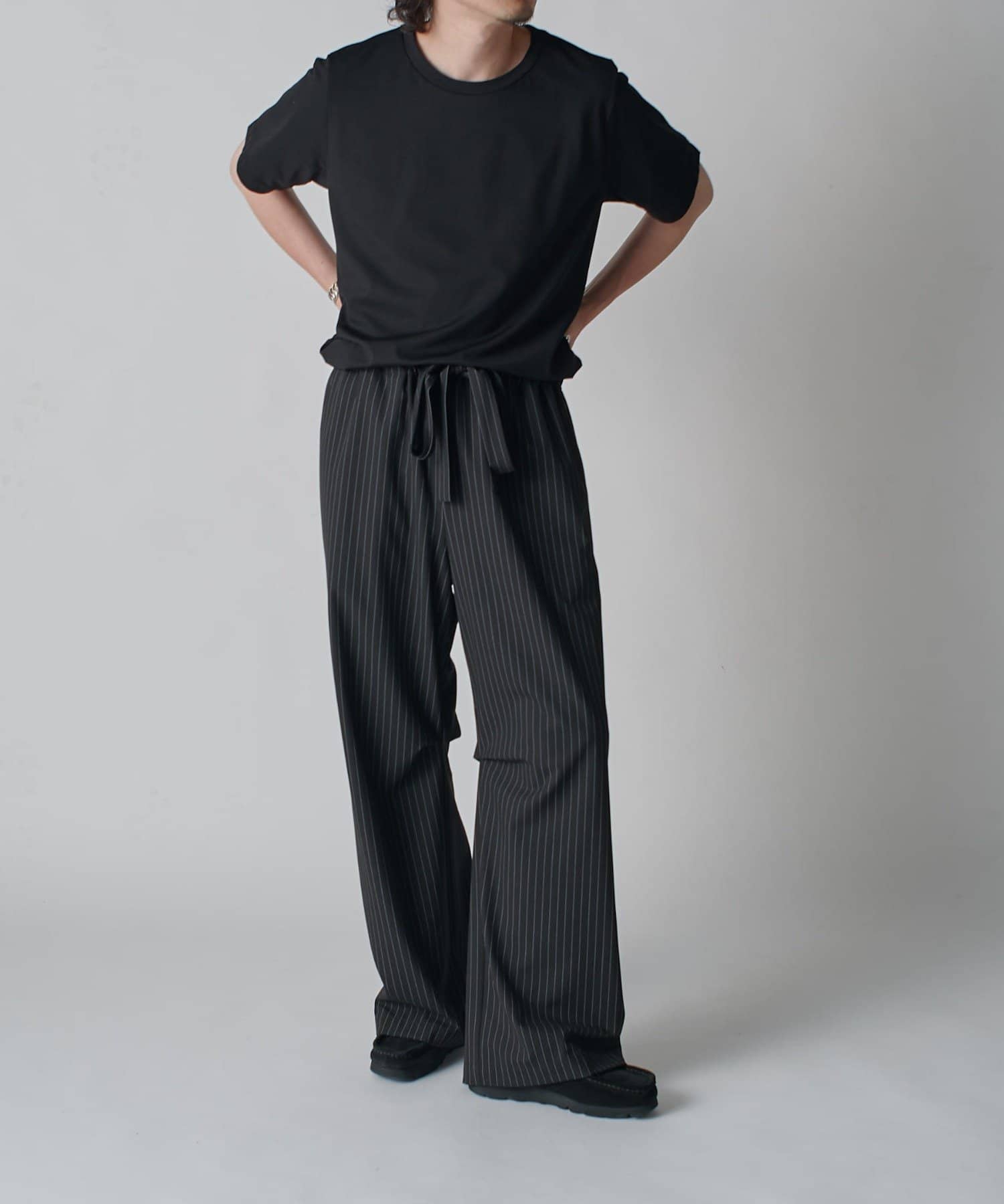 這款長褲的特點是外觀優雅,易於規範。寬大的直筒廓形,易於搭出各種風格。腰部有穿繩,可通過擠壓調節。前部打結時更顯突出。有三種顏色可供選擇:雙條紋和純黑色。這款長褲是一種既優雅又易穿的新式長褲。