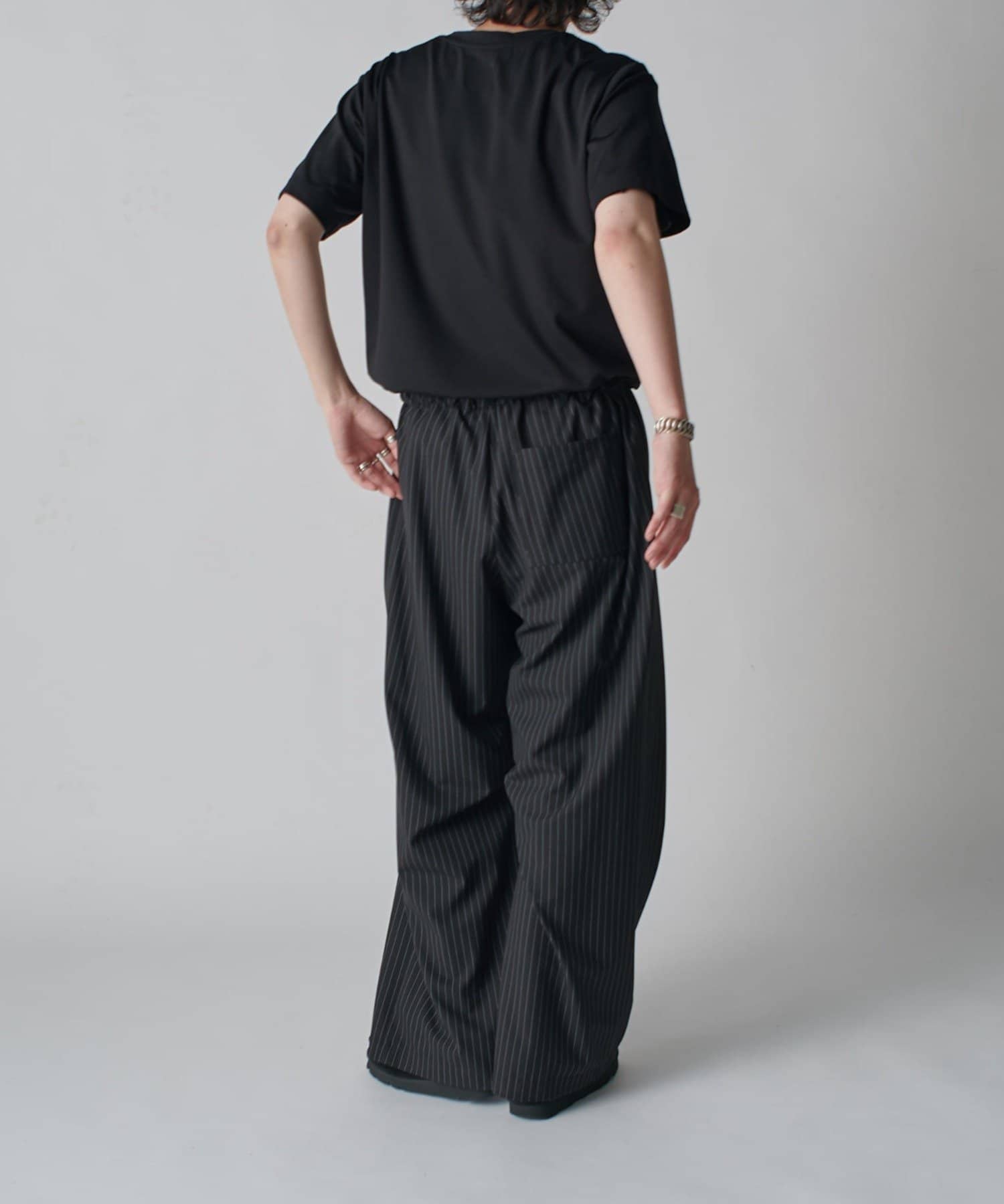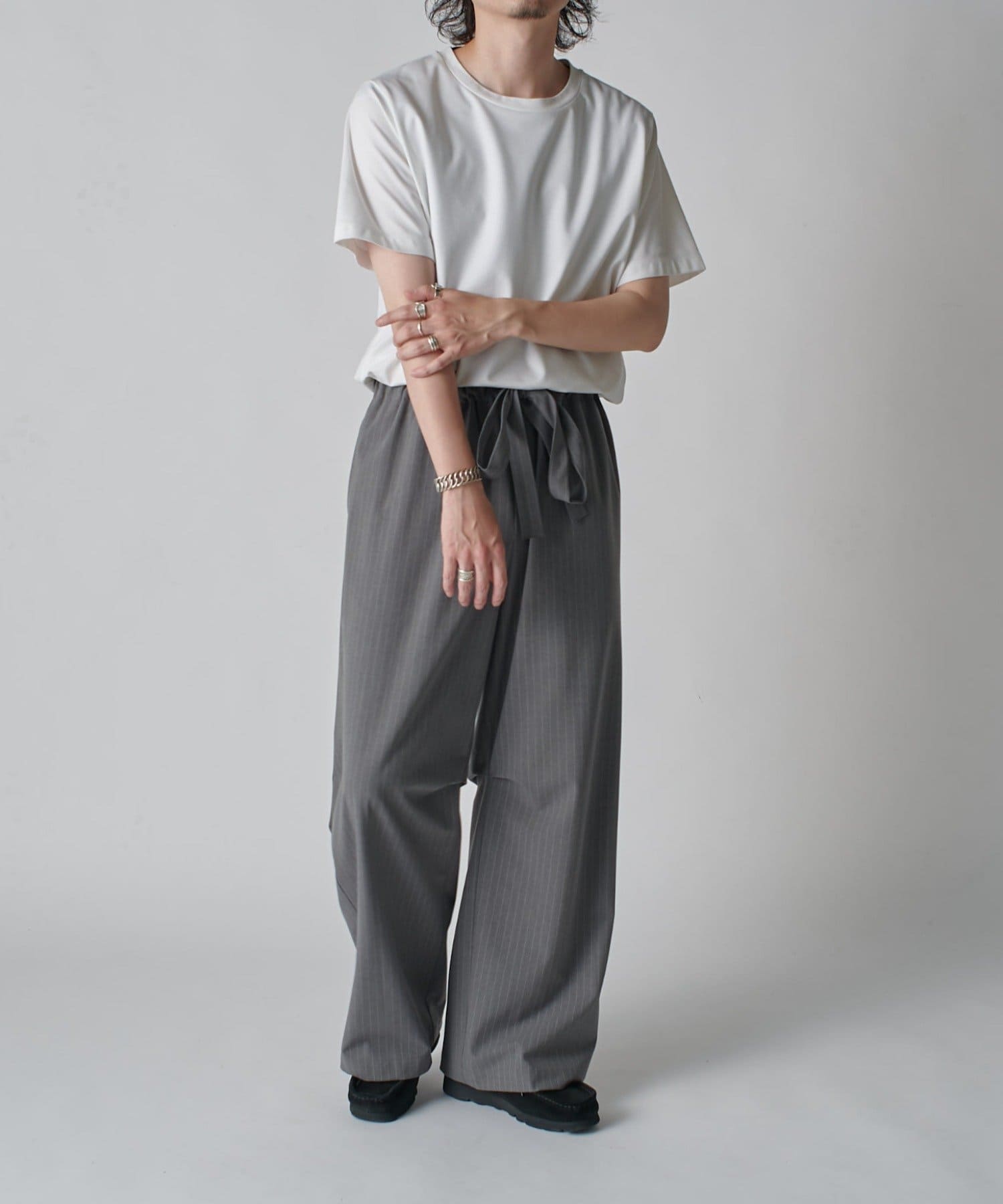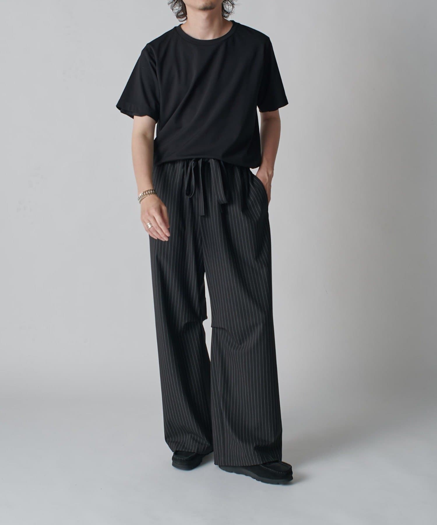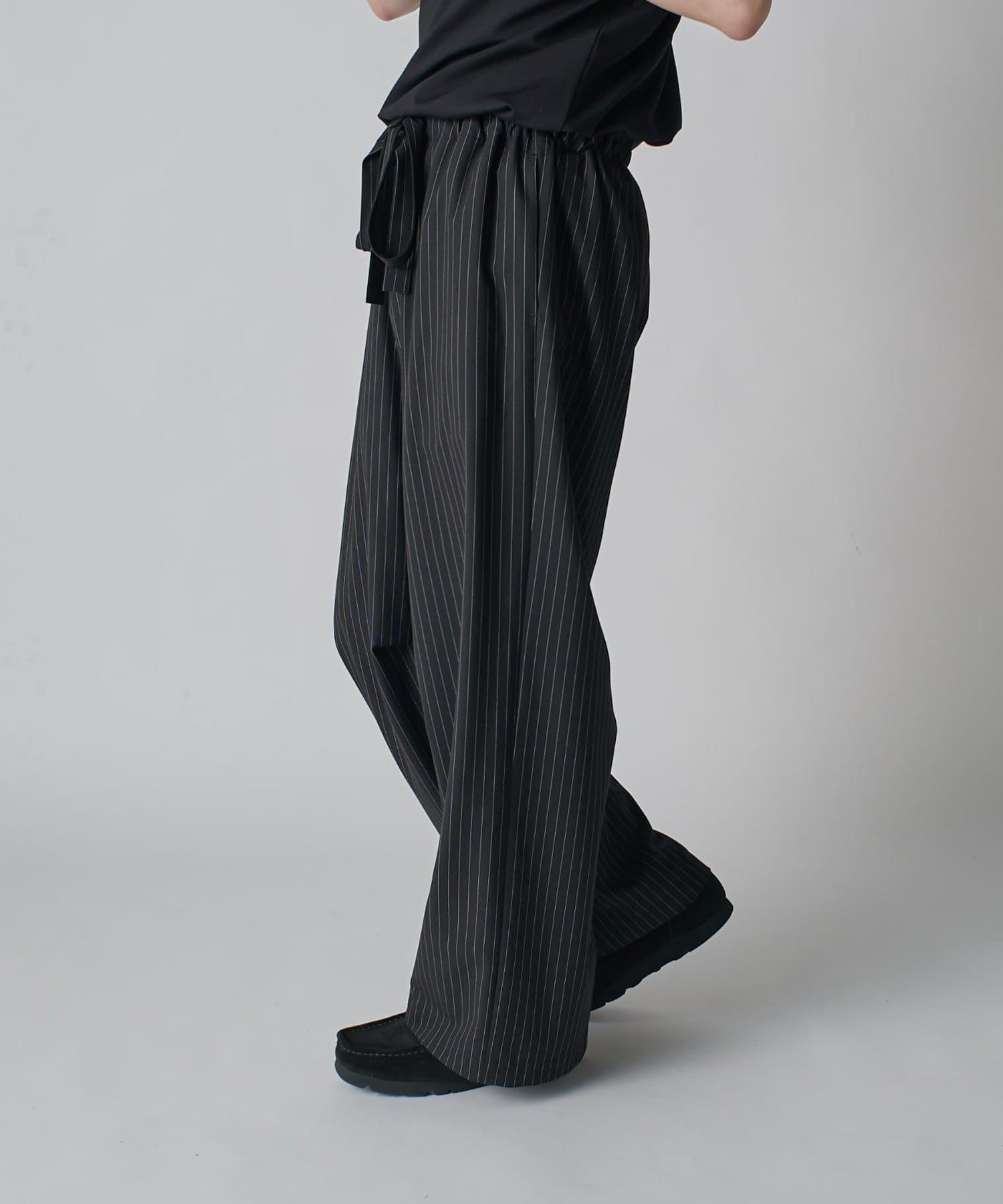 這款長褲的特點是外觀優雅,易於規範。寬大的直筒廓形,易於搭出各種風格。腰部有穿繩,可通過擠壓調節。前部打結時更顯突出。有三種顏色可供選擇:雙條紋和純黑色。這款長褲是一種既優雅又易穿的新式長褲。