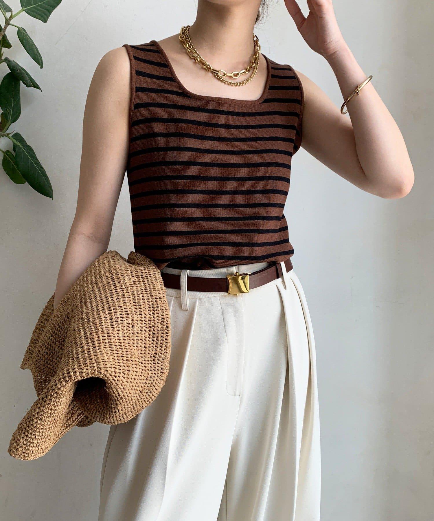 針織面料易於穿著,方形領口帶來小臉效果和美麗的肩部線條。