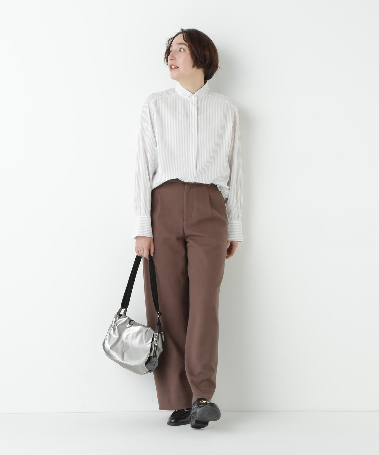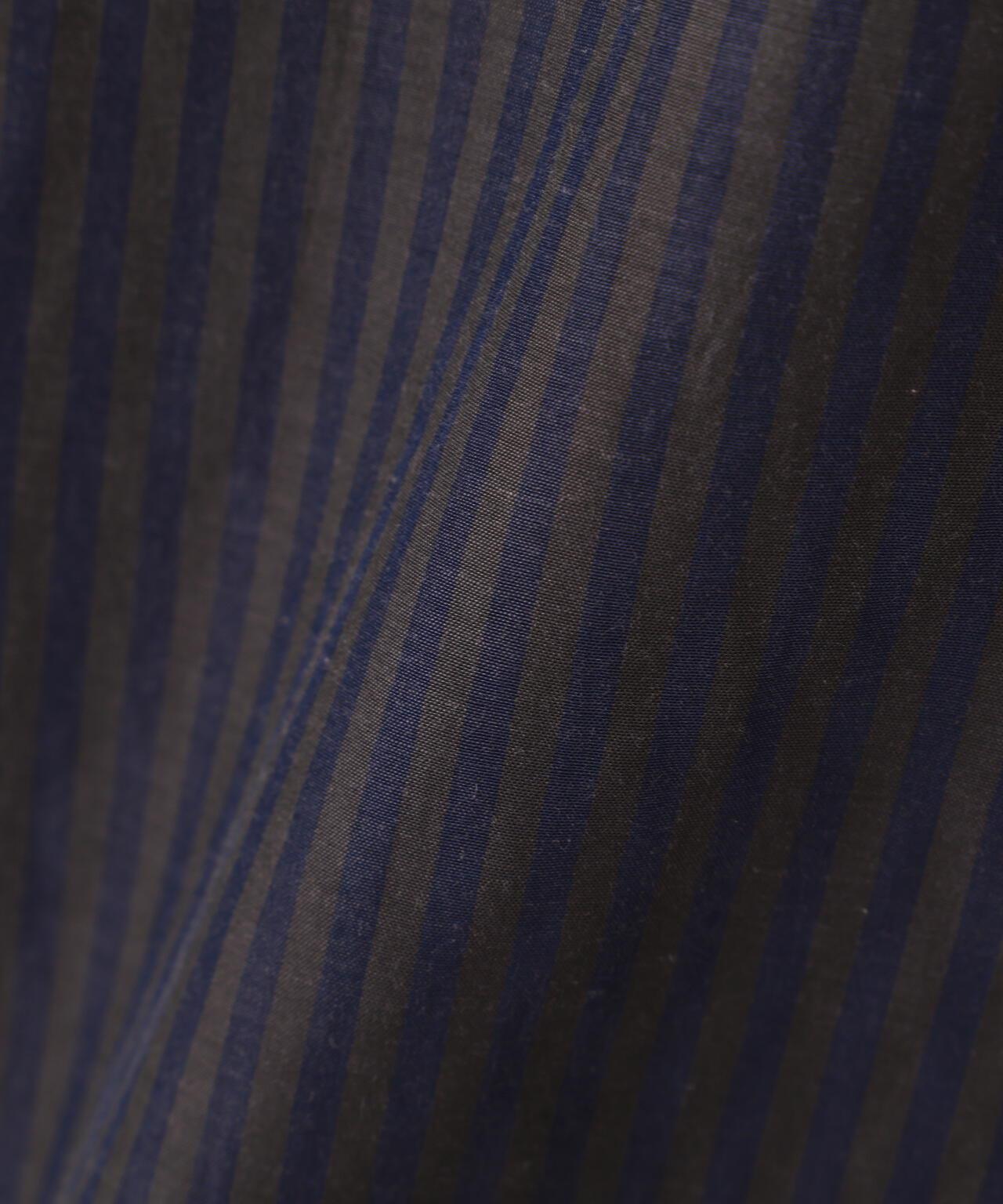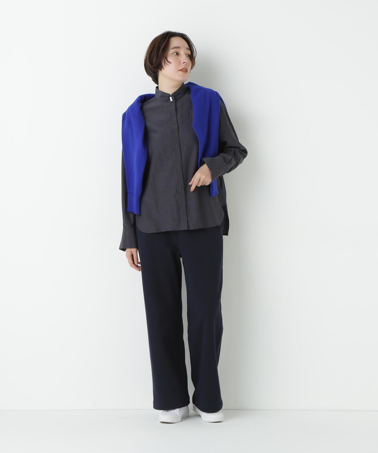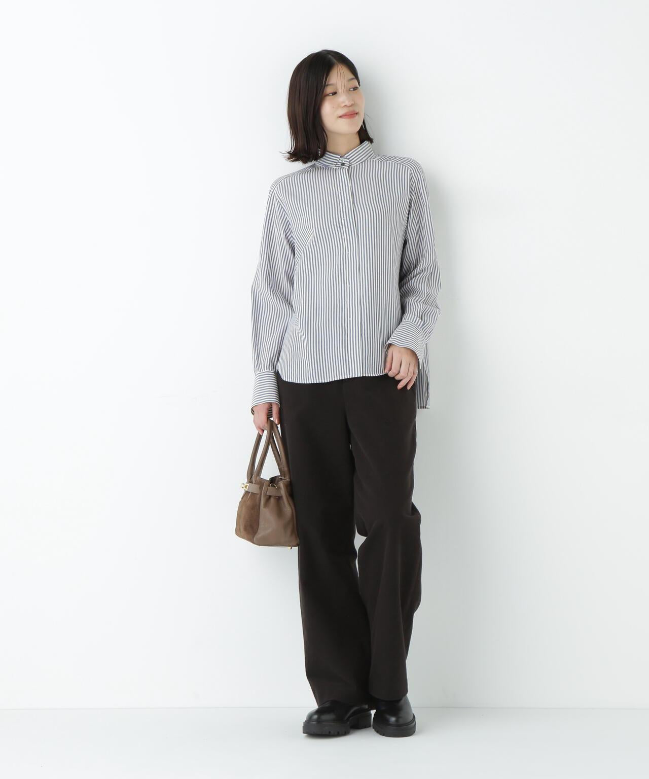 條紋襯衫,自然整潔 [設計要點] 條紋卷邊高領襯衫,寬鬆適度。肩章式插肩袖也是一大亮點。襯衫後背的長度可以遮住臀部。條紋面料既有有機棉的天然質感,又有醋酸纖維的涼爽和人造絲的飄逸。推薦座標] 柔軟的面料既可以單穿,也可以作為針織套頭衫和其他服裝的內層。這款上衣四季皆宜。