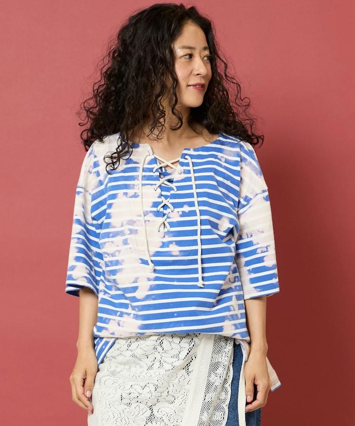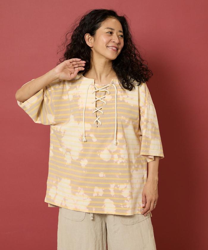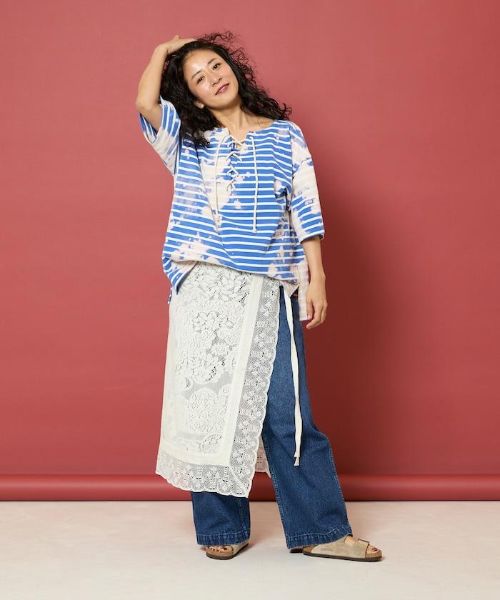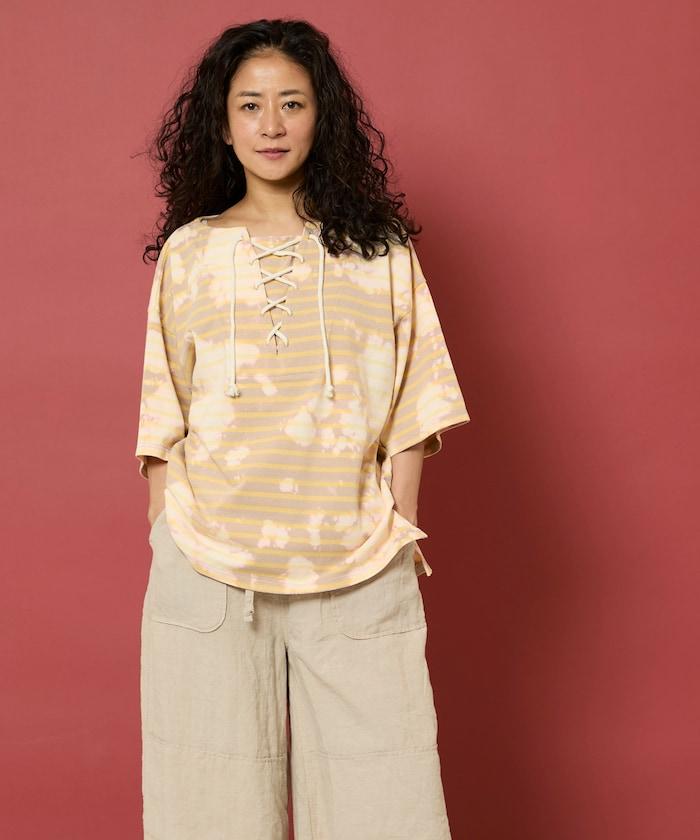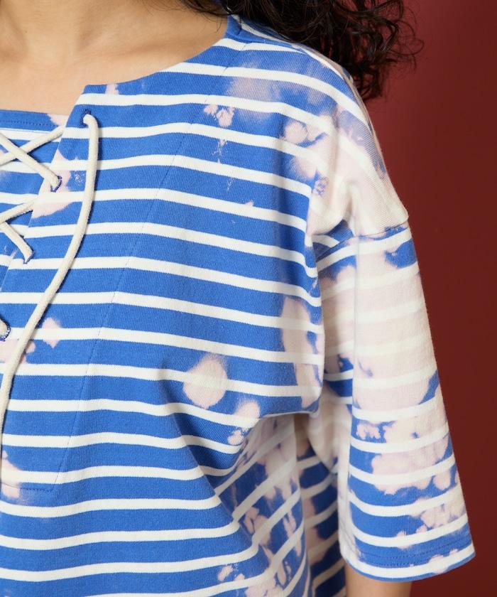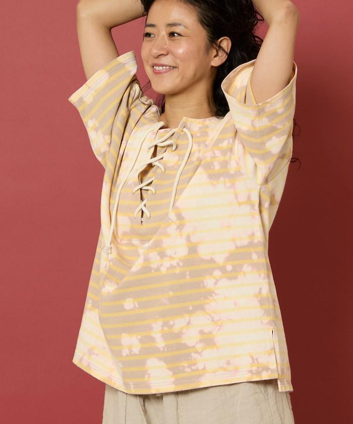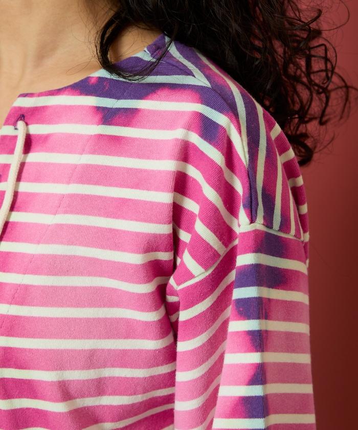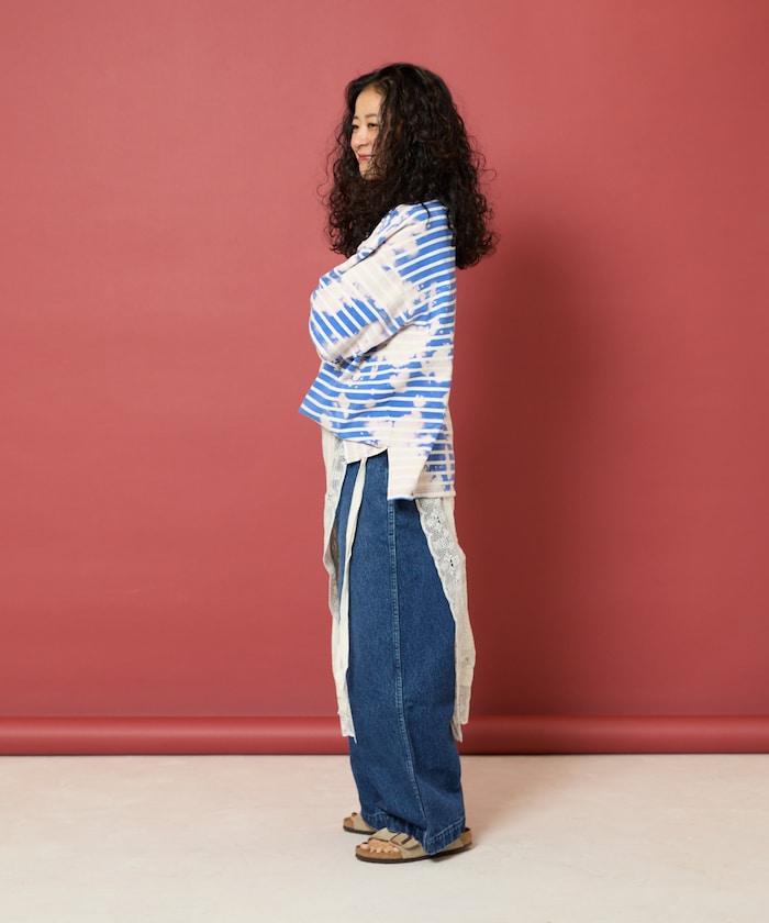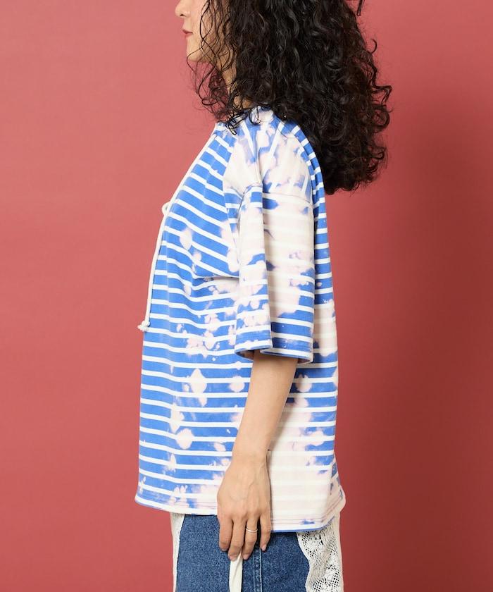 裁剪和縫製時,在邊布上進行扎染漂白。