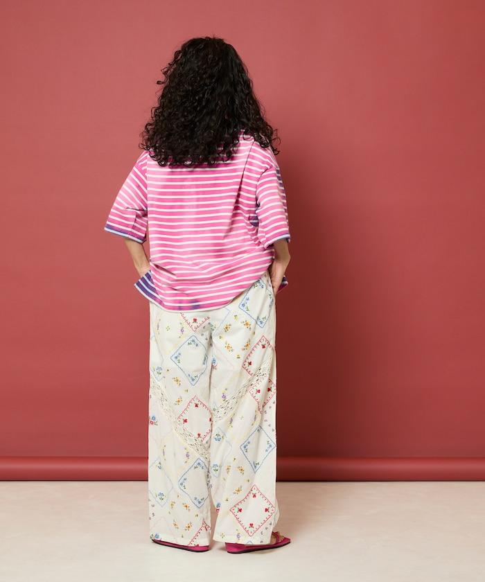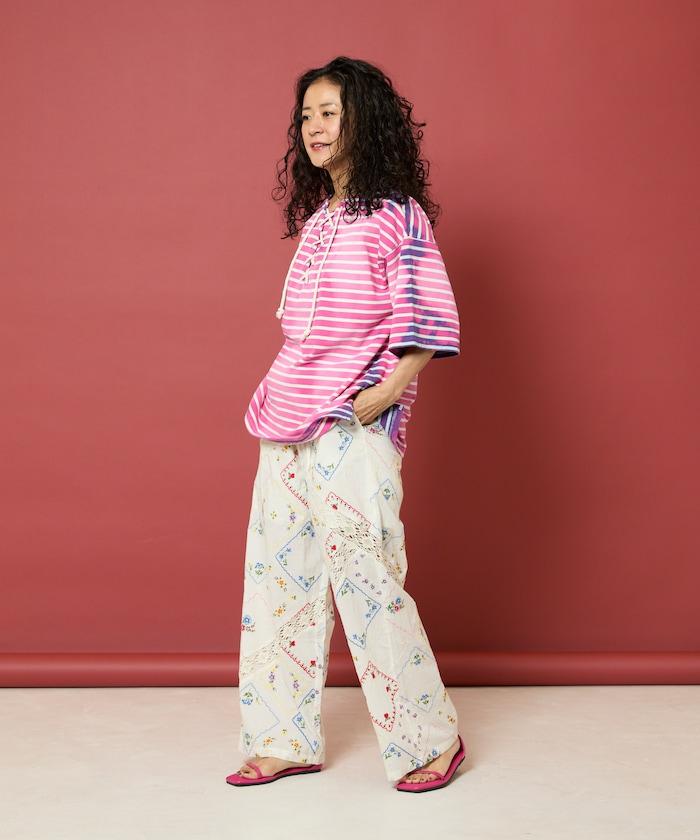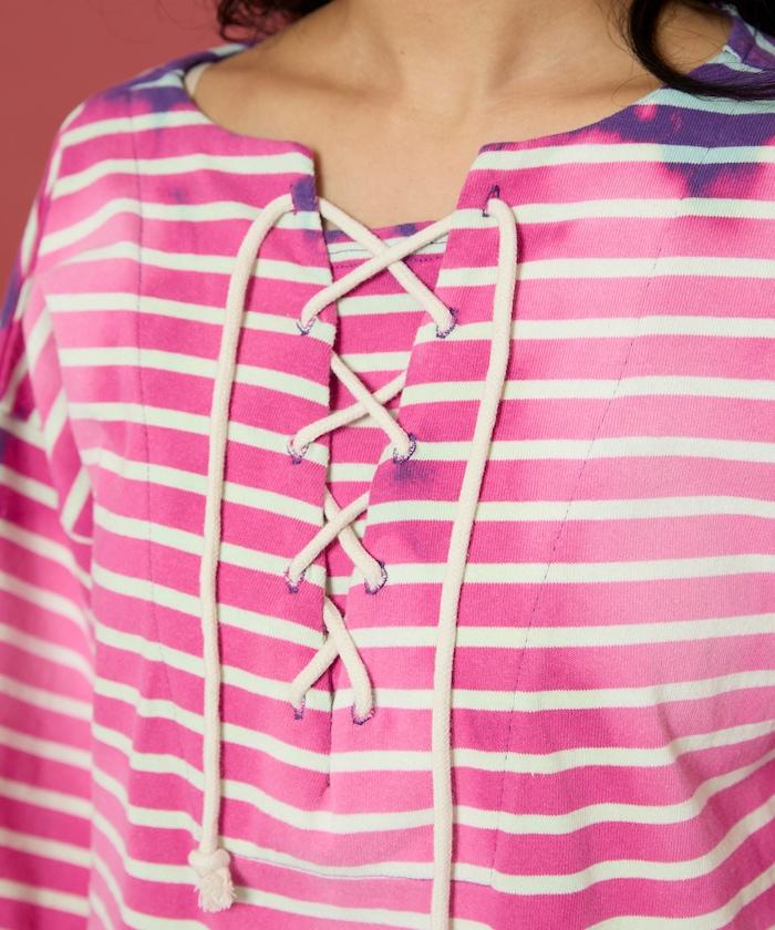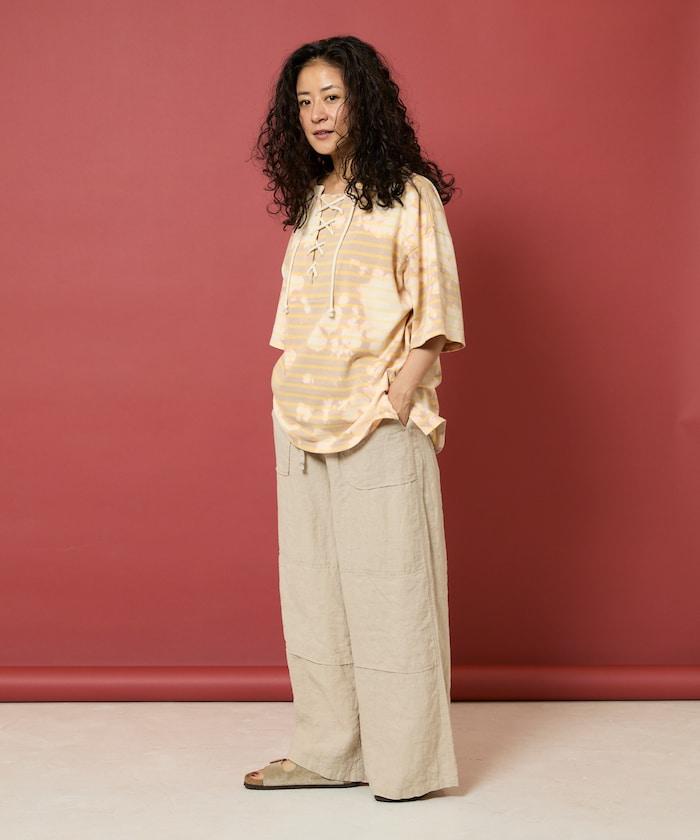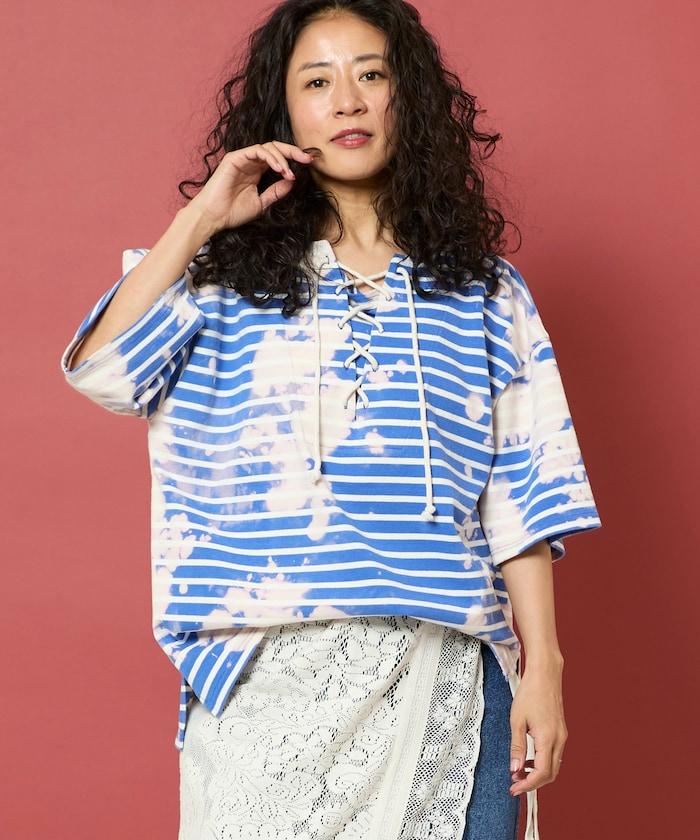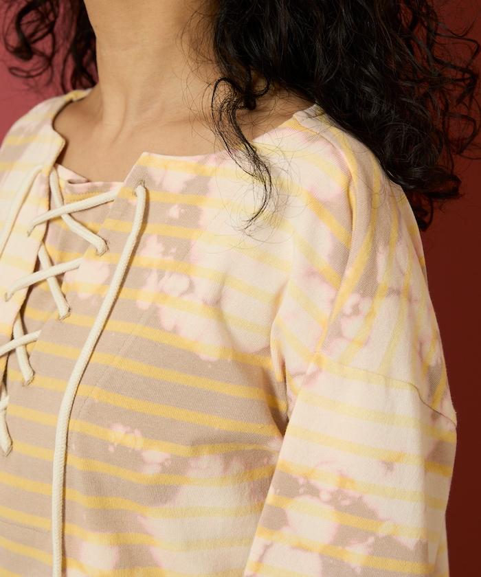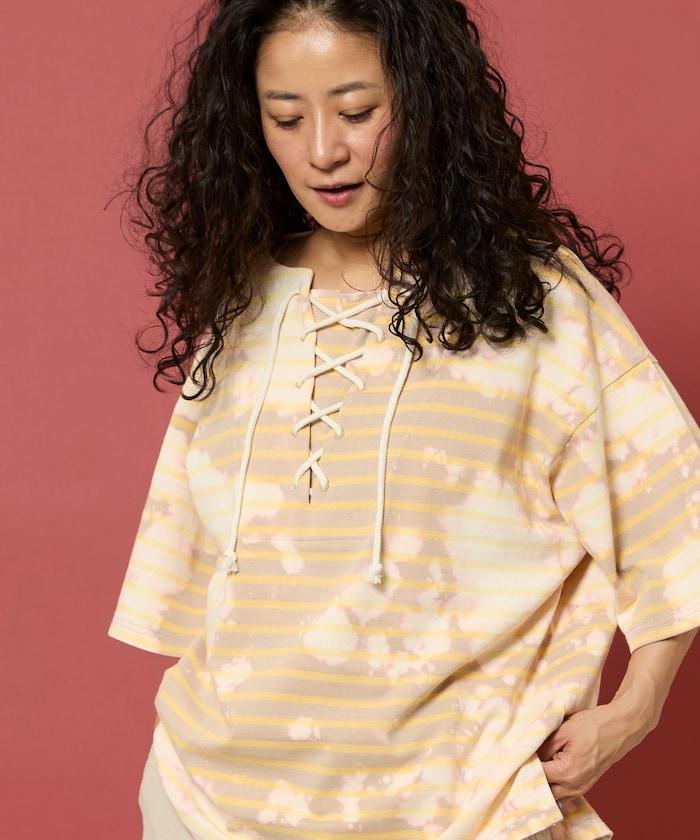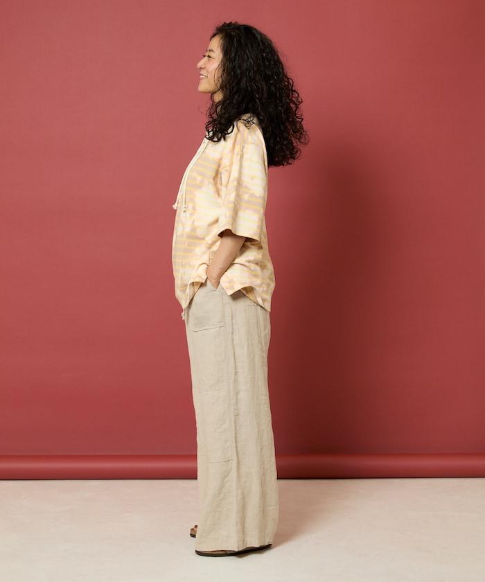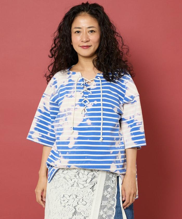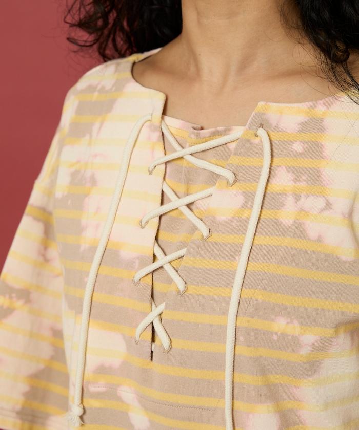 裁剪和縫製時,在邊布上進行扎染漂白。