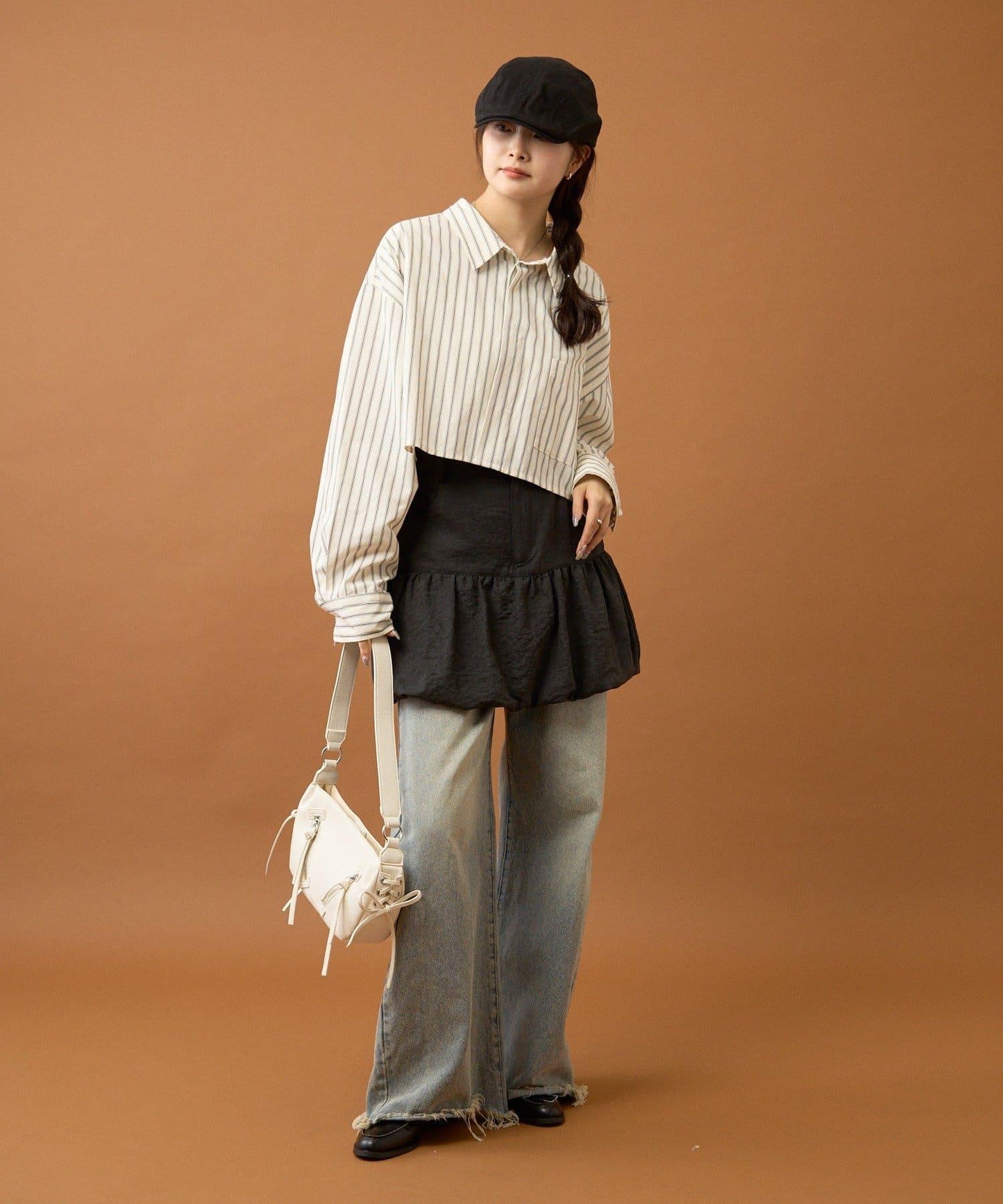 由於長度較短,建議搭配寬下裝和蓬鬆的氣球設計單品,以達到平衡的效果。