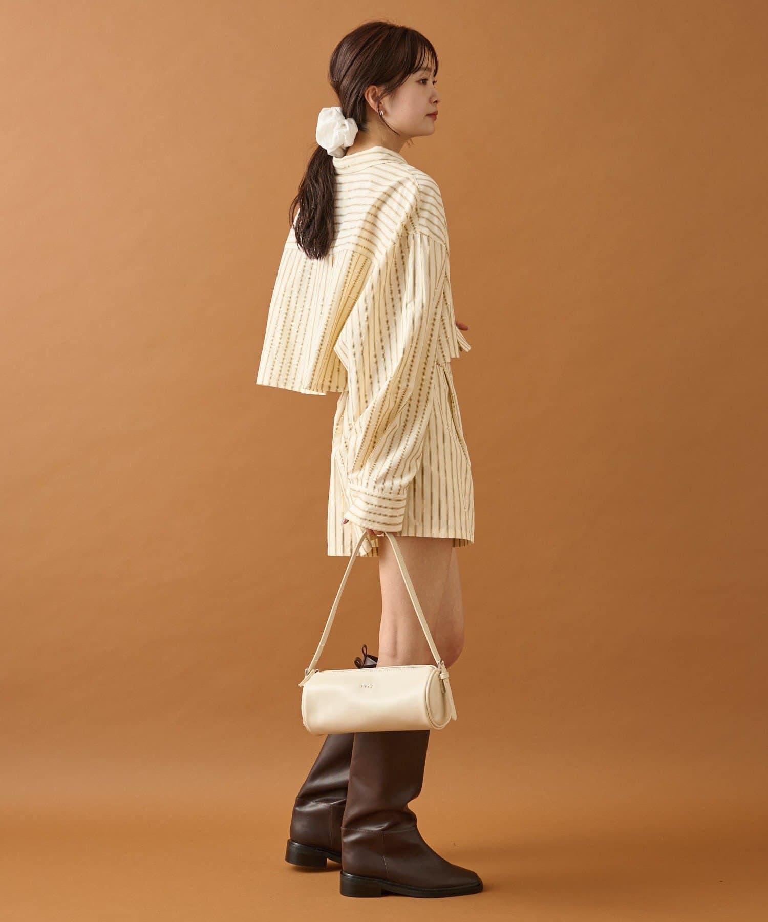 徽標標籤附在紐扣部分,也是隨性的點睛之筆。短款的長度也有提升氣質的效果。