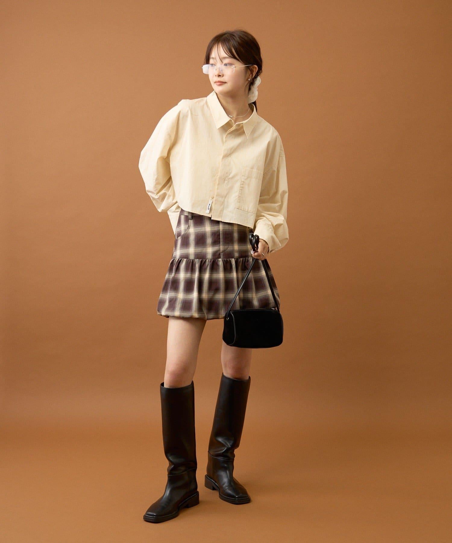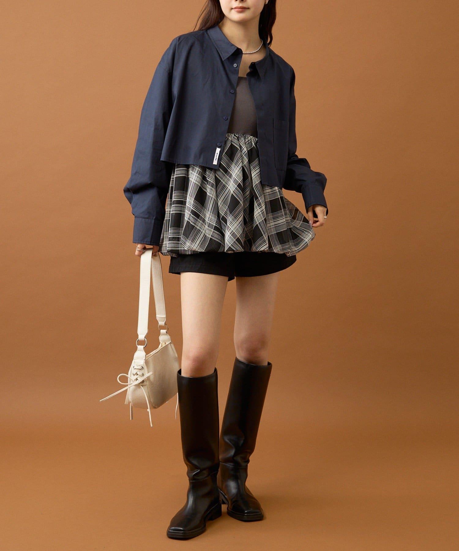 搭配氣球裙和長靴,打造可愛時尚的造型。