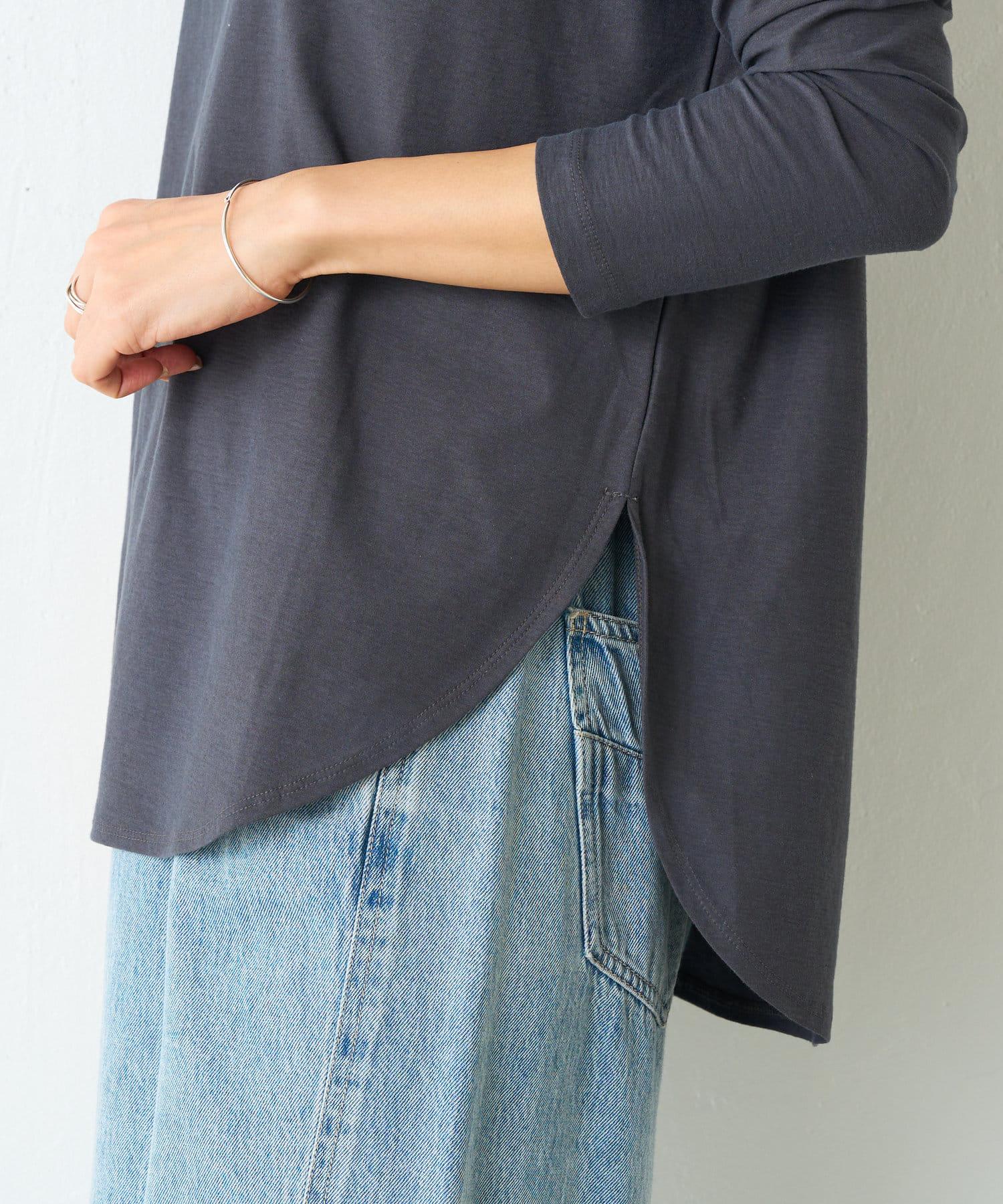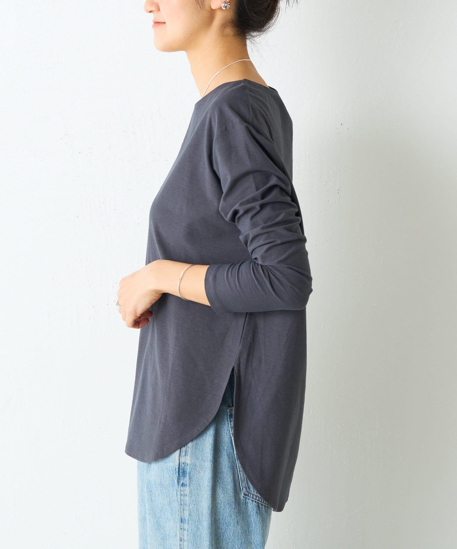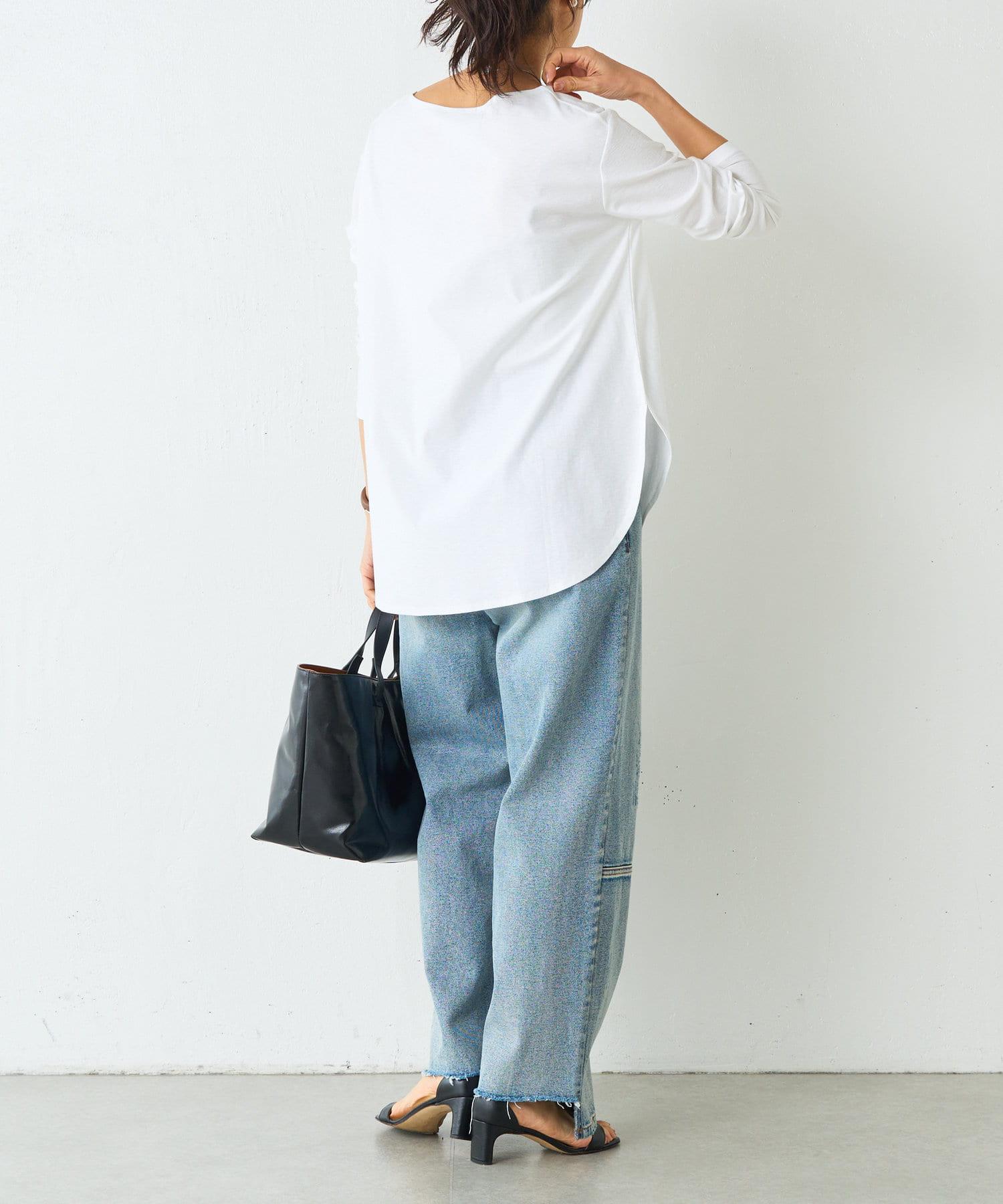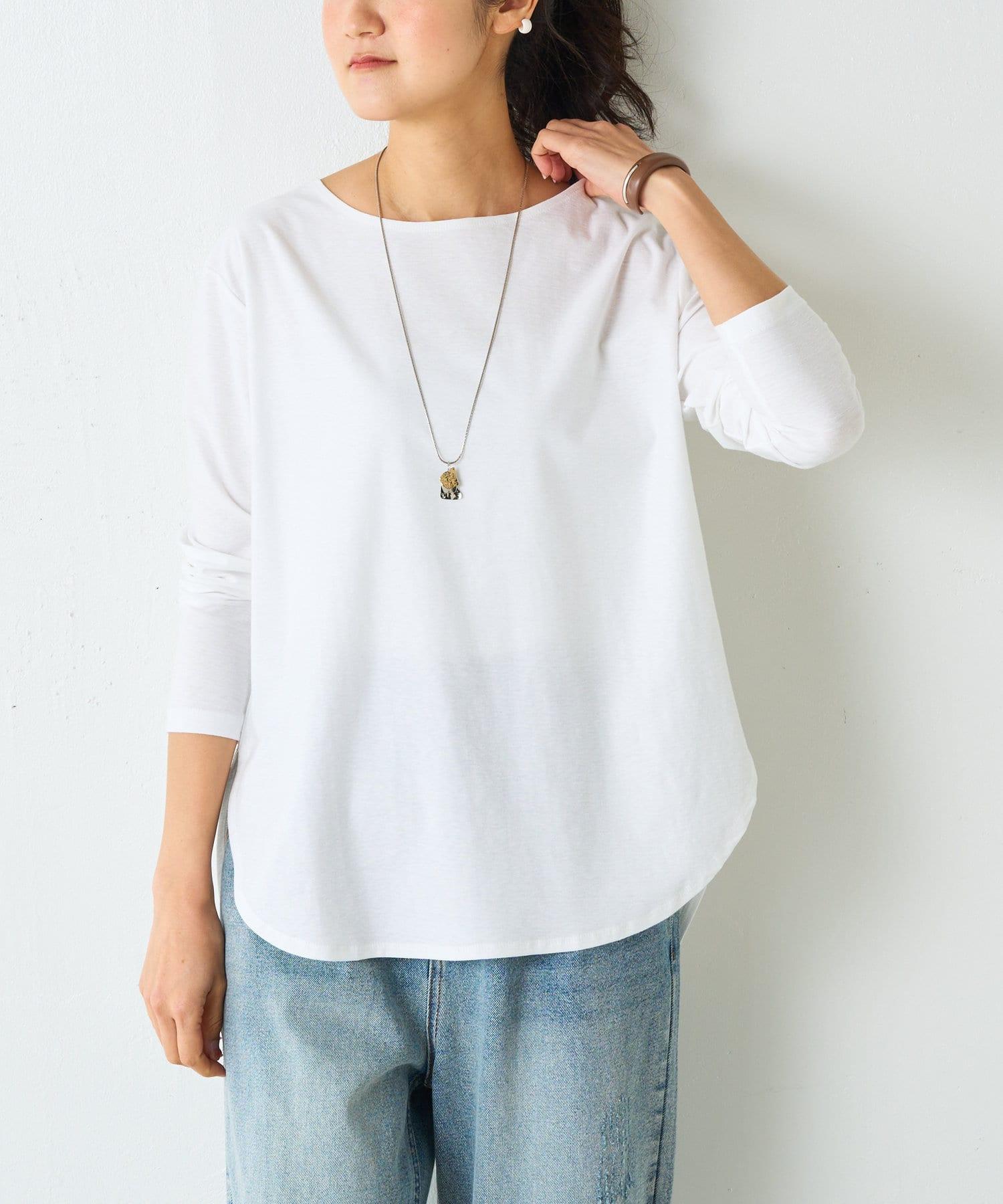 船形領口能很好地展現肩部線條,長度覆蓋臀部,可作為單件寬鬆穿著。