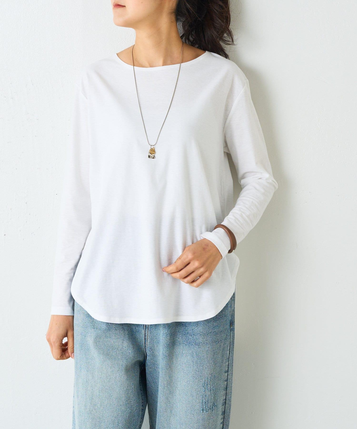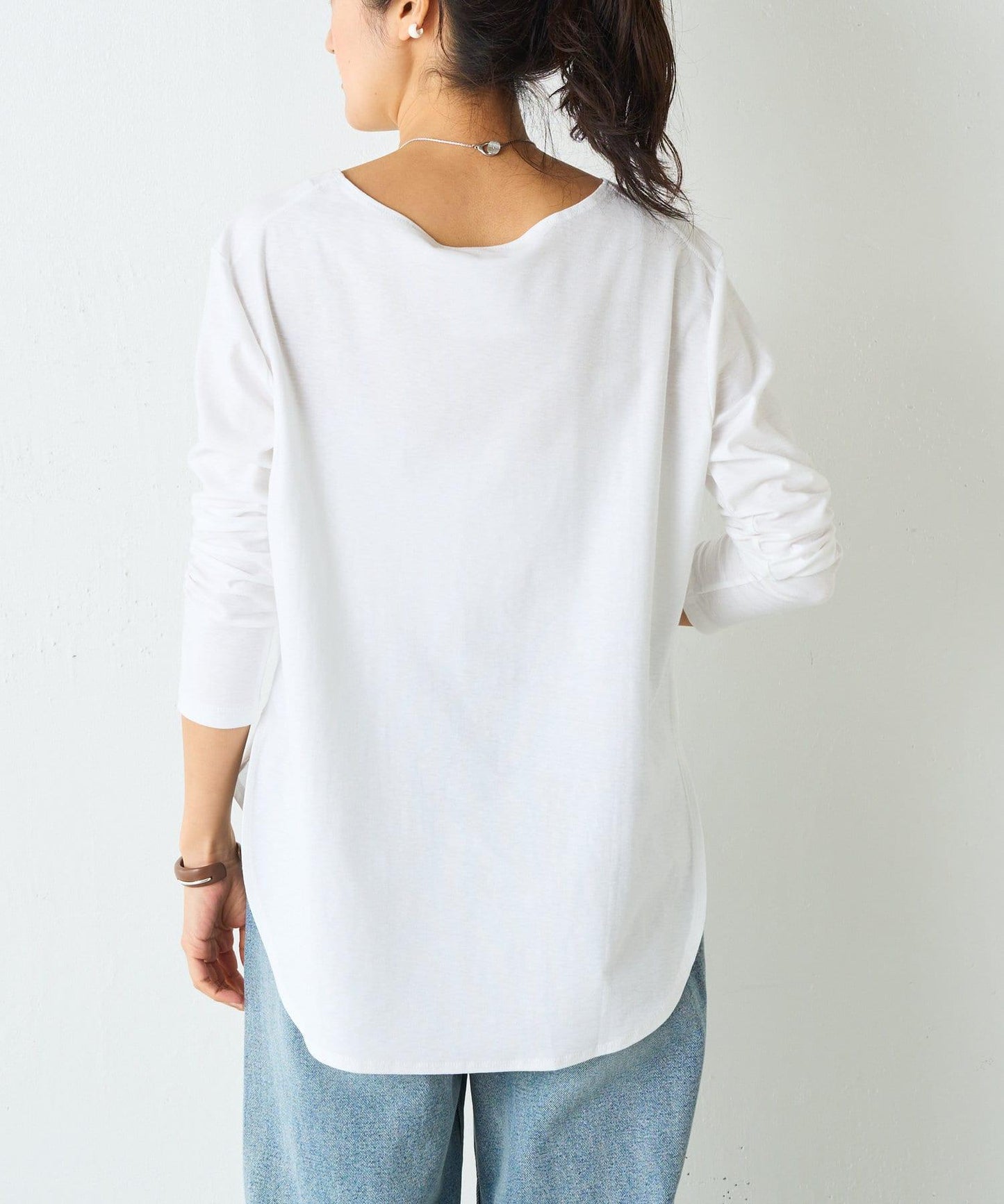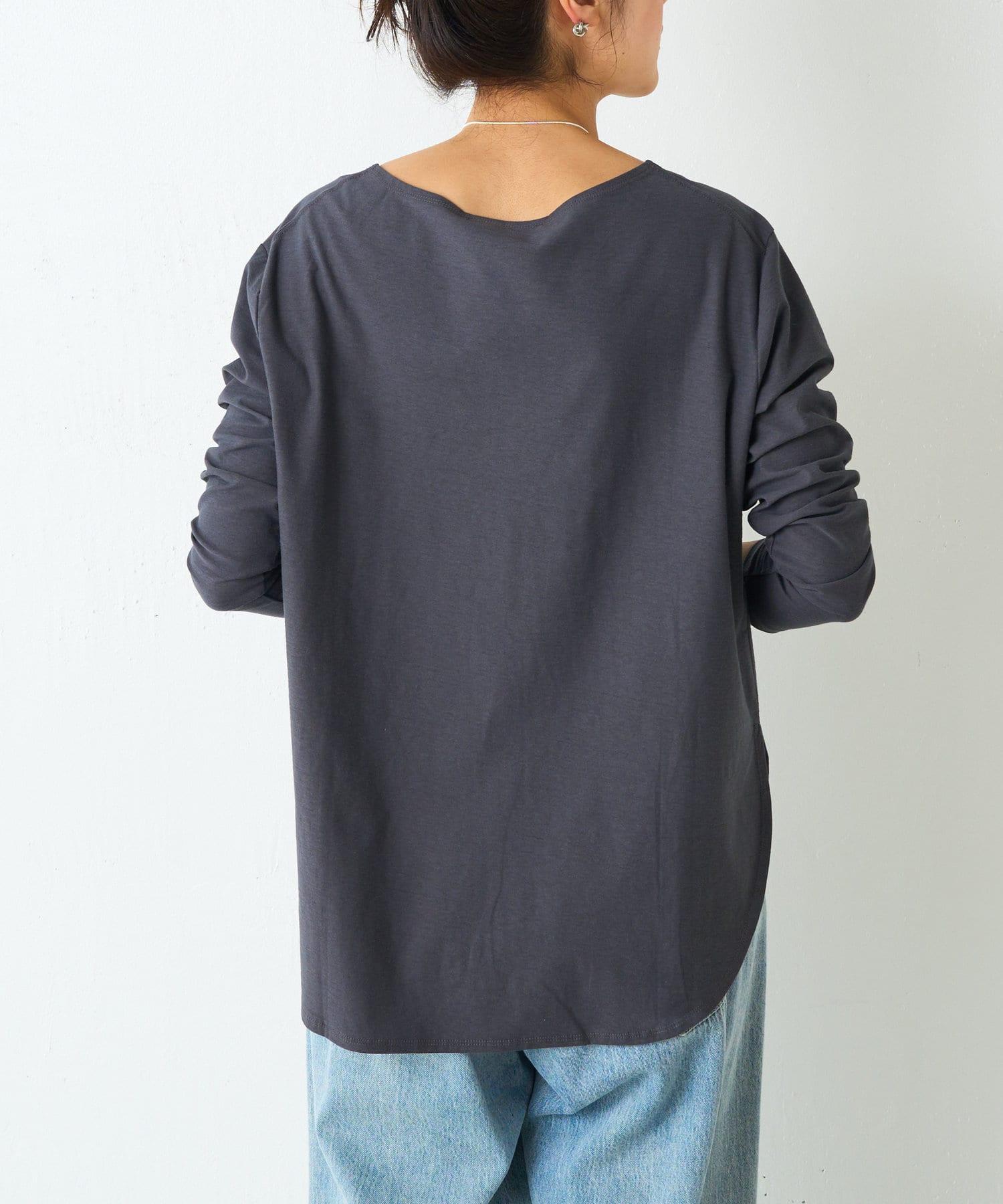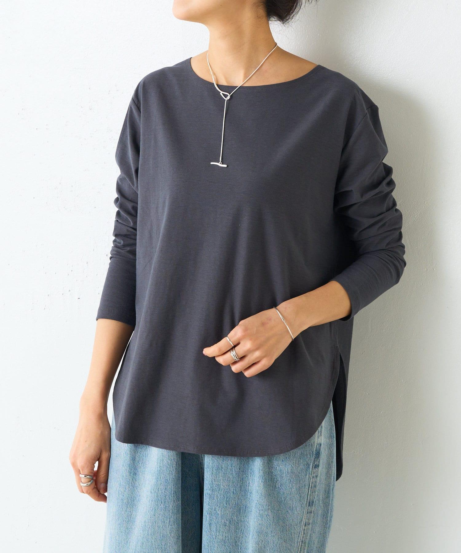 船形領口能很好地展現肩部線條,長度覆蓋臀部,可作為單件寬鬆穿著。