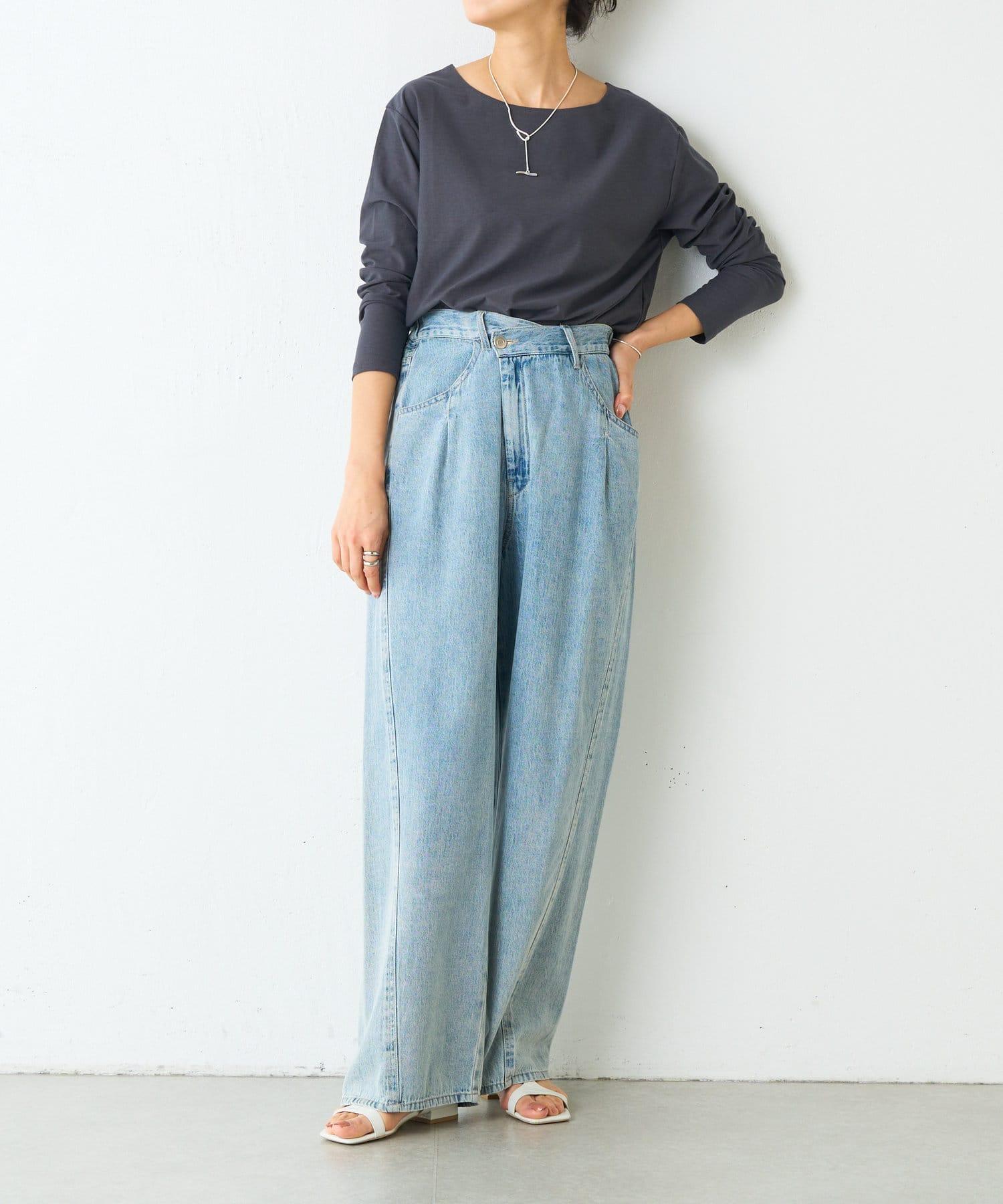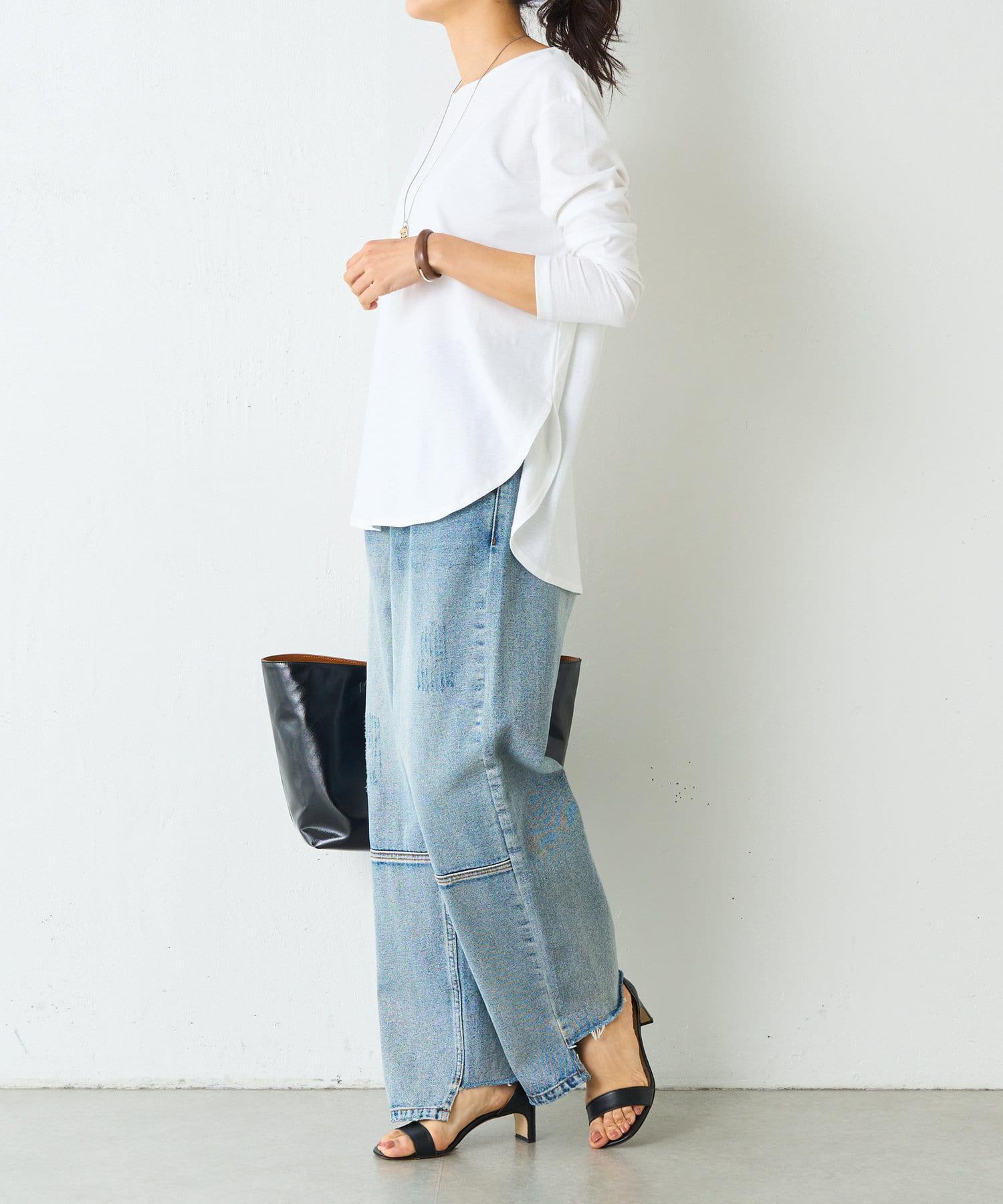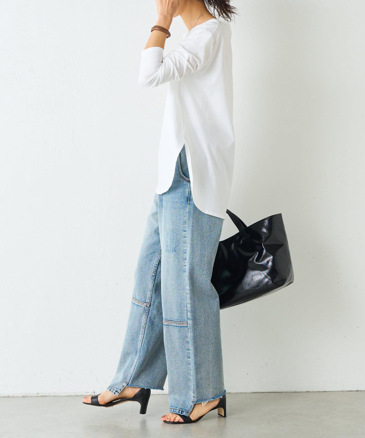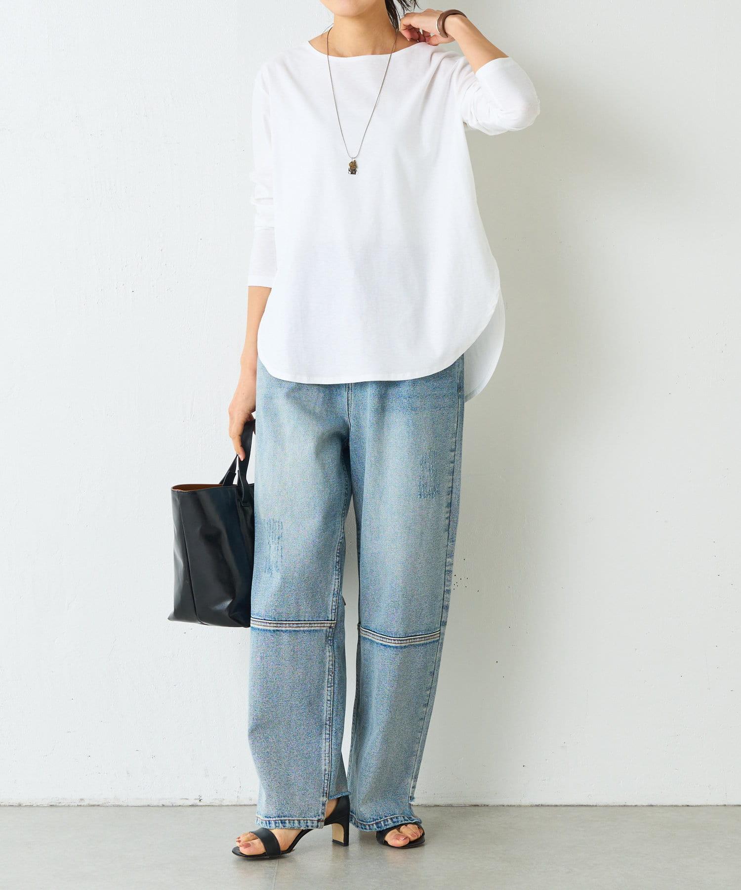 船形領口能很好地展現肩部線條,長度覆蓋臀部,可作為單件寬鬆穿著。