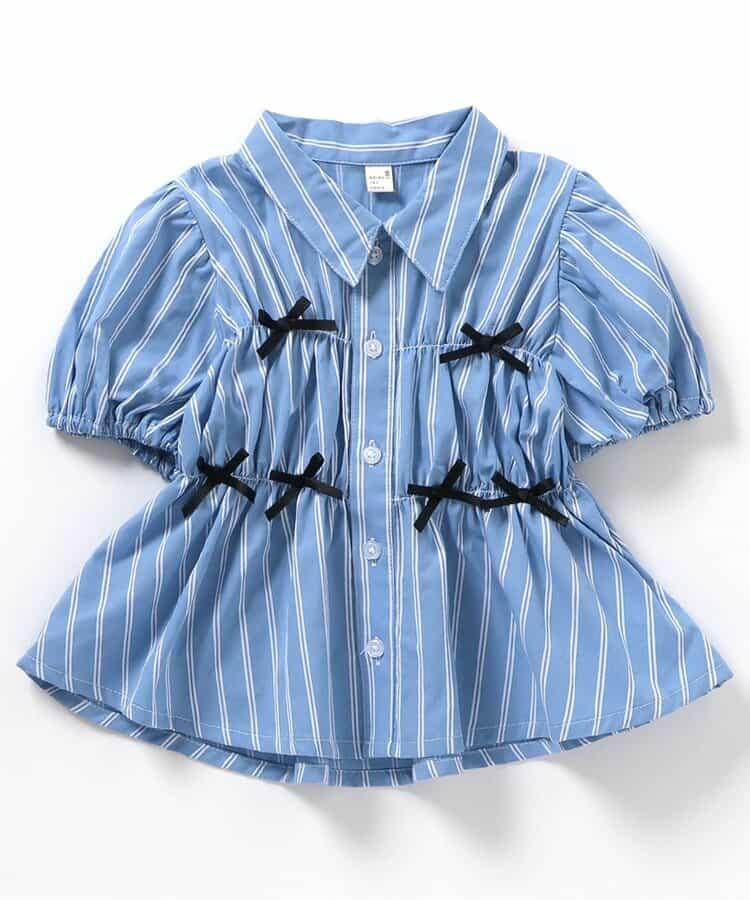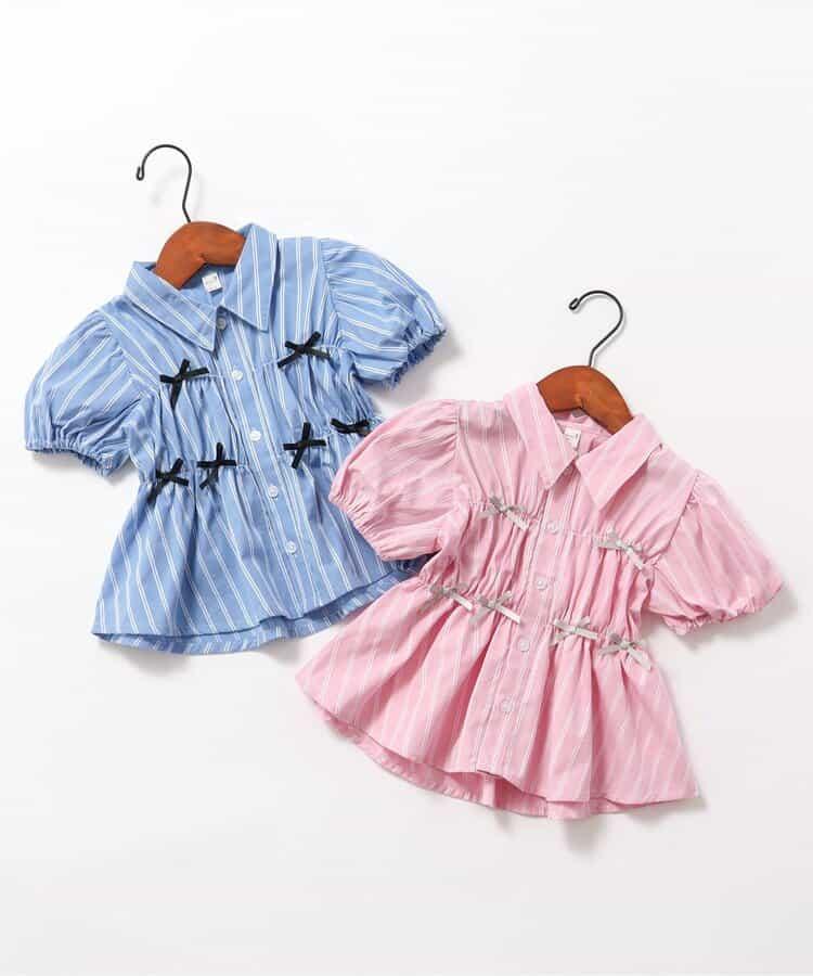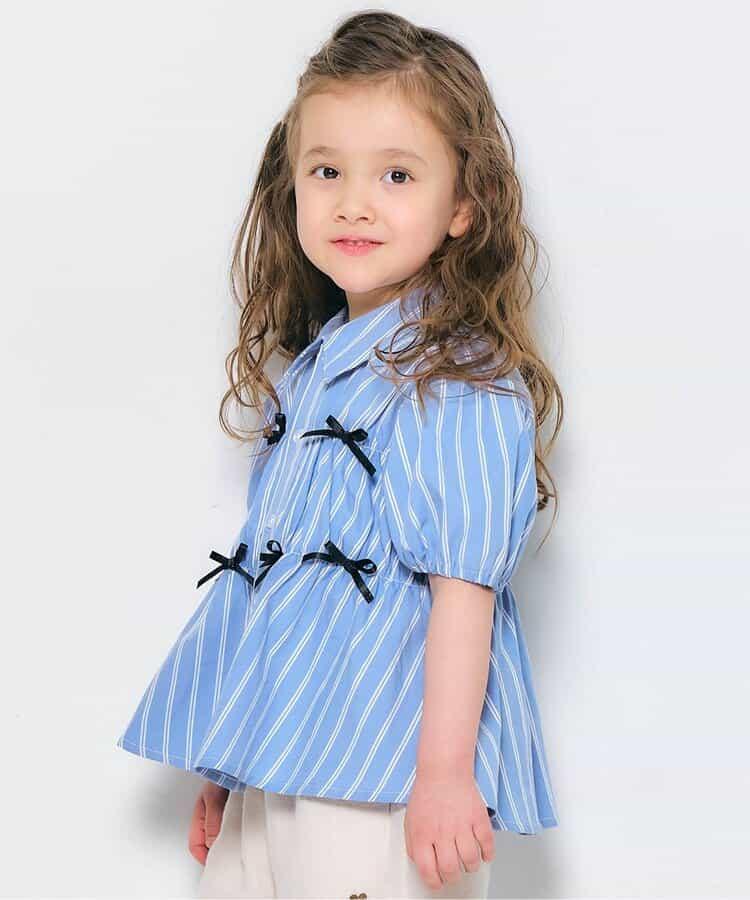 apres les cours 襯衫和襯衫 "條紋滾邊絲帶外衣 "是一款時尚單品,為自然風格*增添了精巧的設計。