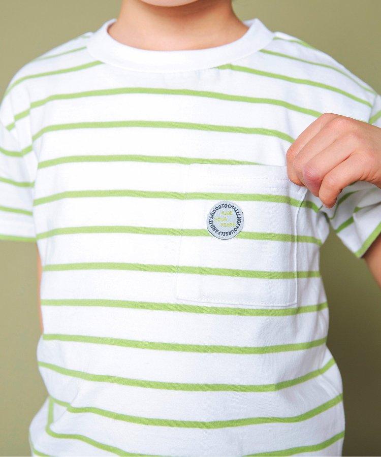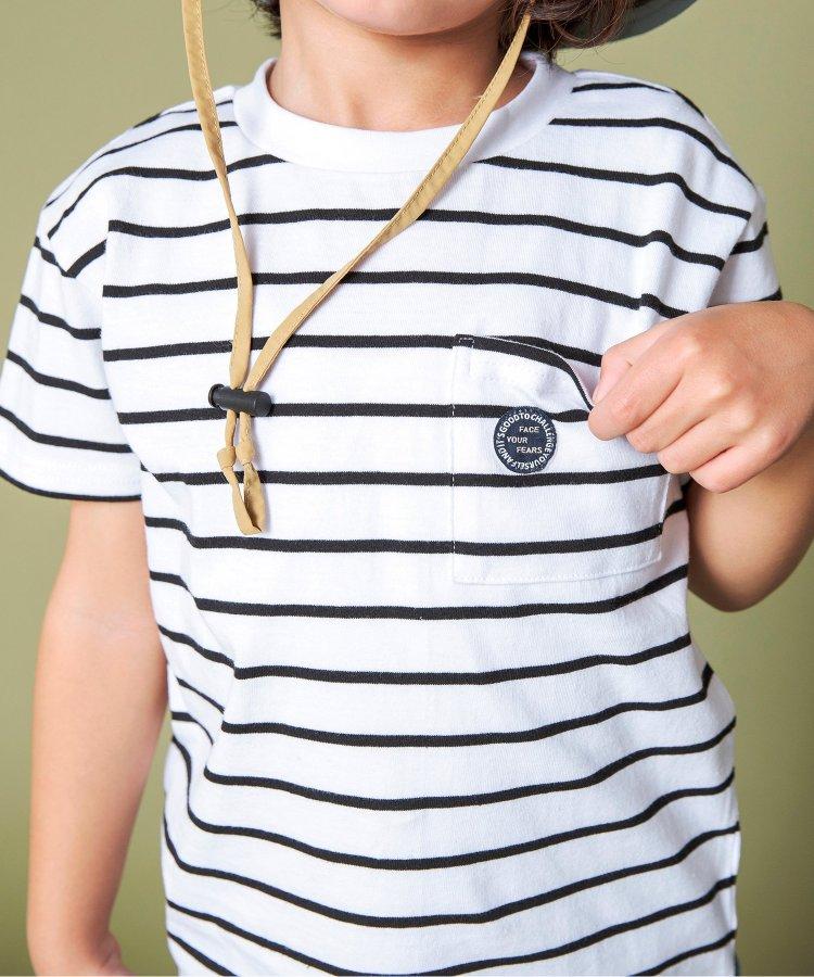 這款 T 恤採用清爽的夏日邊框和素雅的色彩變化,是各種場合的👍選擇。柔軟的棉質面料穿著舒適。