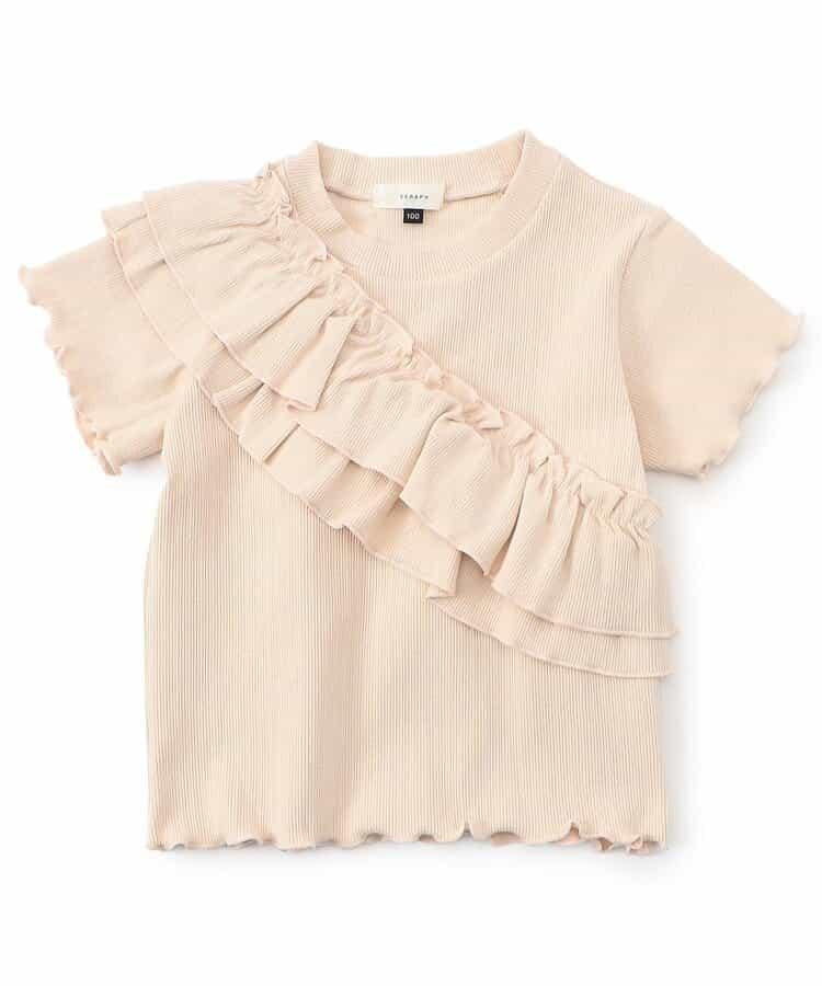 Seraph 的 "羅紋荷葉邊上衣 "短袖 T 恤以其簡潔的面料和柔和的色彩向時尚、自然的品味人士推薦!