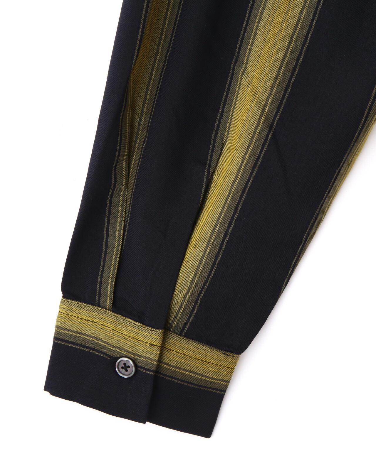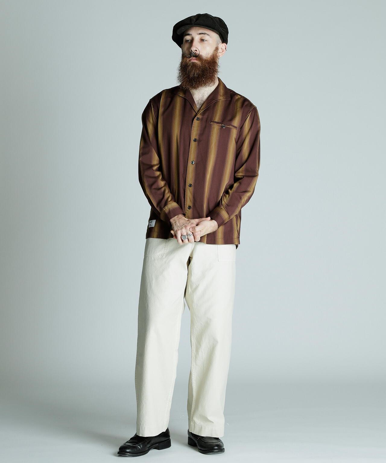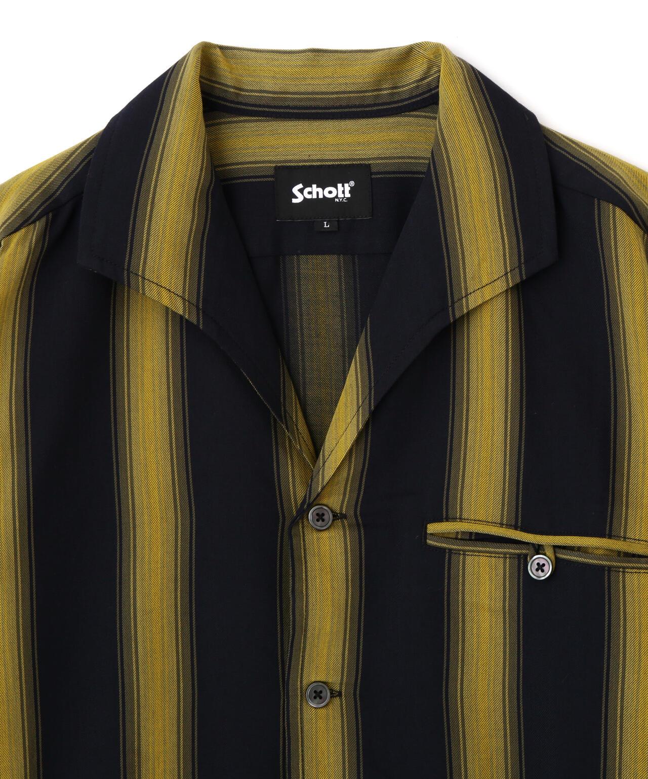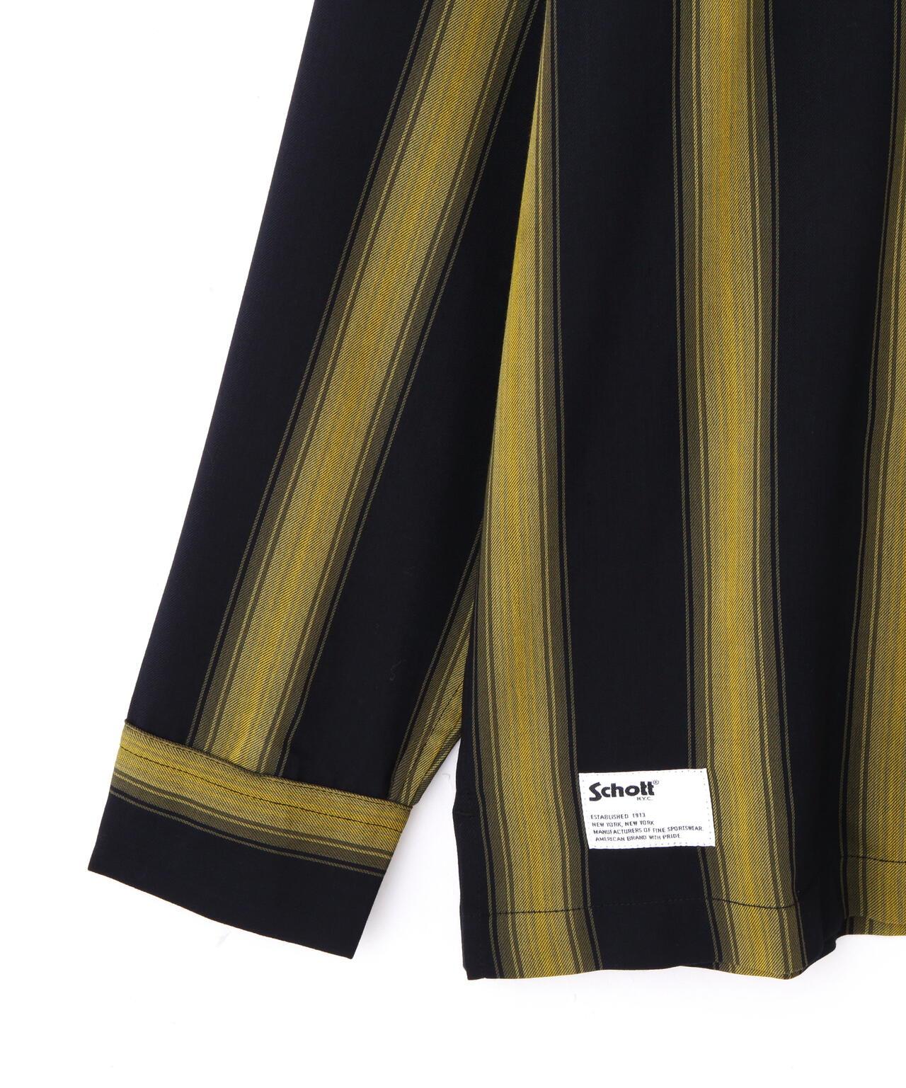 新型人造絲和滌綸混紡面料略有重量,具有獨特的墜感。條紋襯衫的間距很厚,也有一種亡命之徒的架勢。迷人的鯊魚領搭配優雅的衣領,使其成為一件精緻的單品。從顏色的深淺到色彩的搭配和構成,所有的紡織品都是原創組合而成。皇家黑棕雙色格紋面料是 2/2 斜紋織法,而這款面料是 3/1 斜紋織法,突出了條紋圖案。肖特] 肖特是騎手夾克的代名詞,其歷史始於 1913 年的紐約,創始人是歐文-肖特和傑克-肖特兄弟。 起初,它只是一家生產雨衣的工廠。