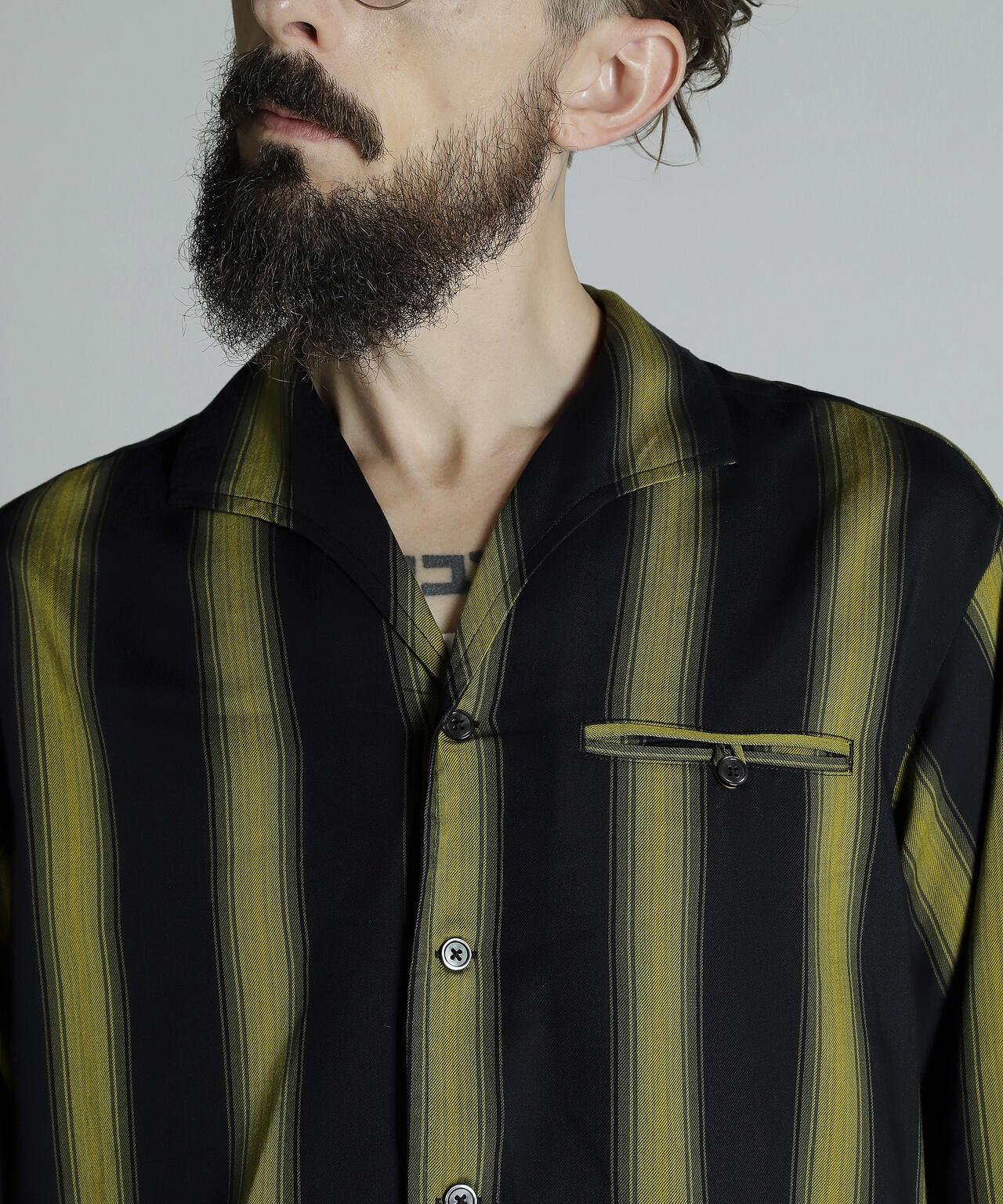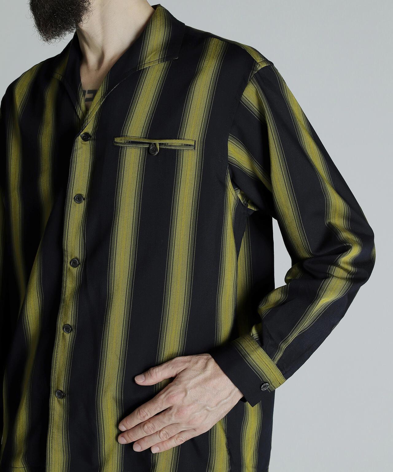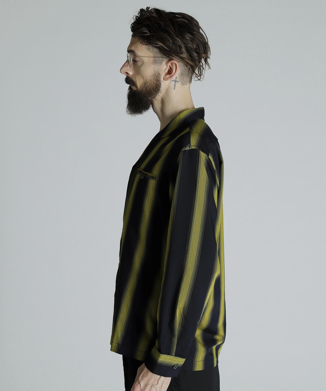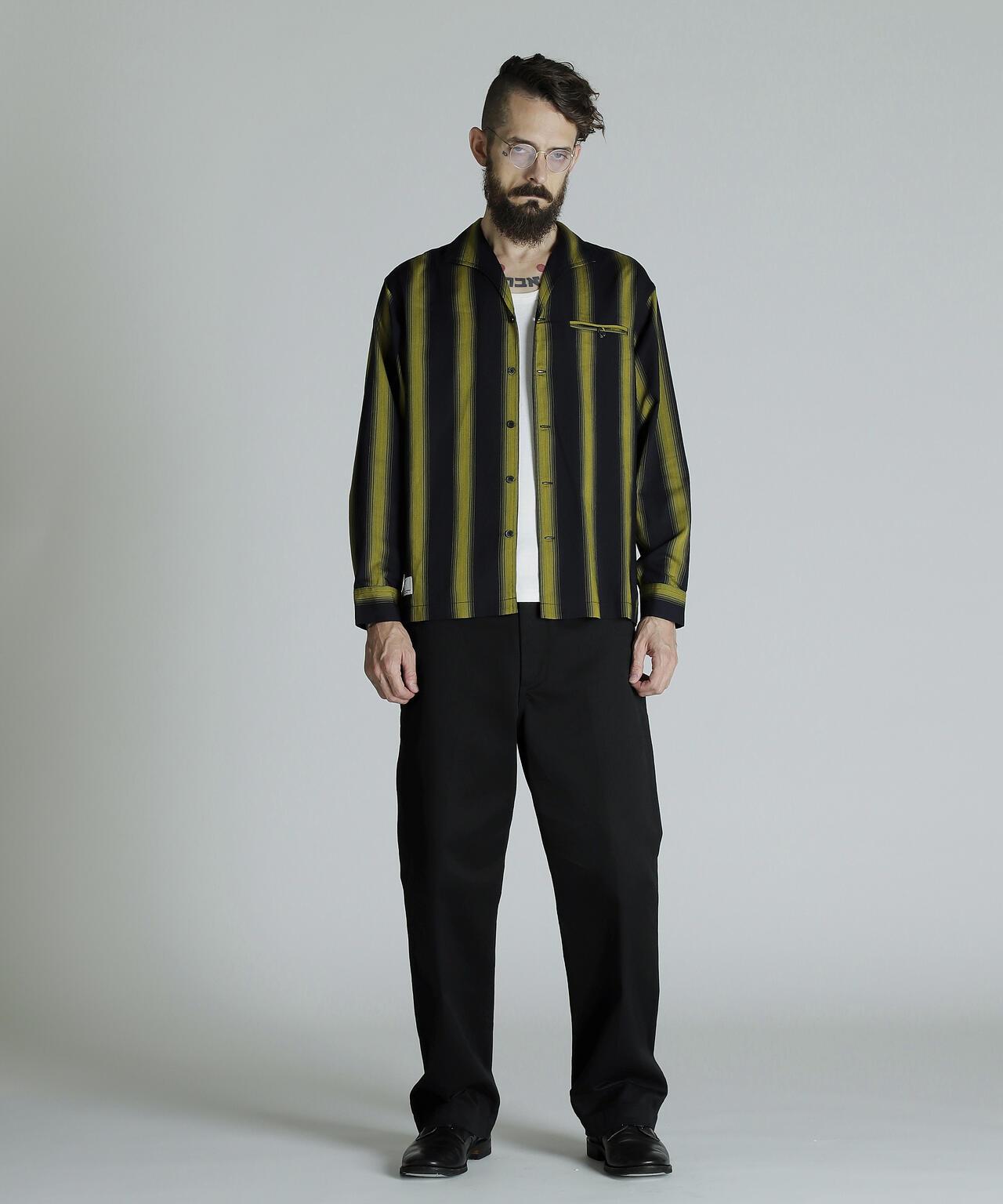 新型人造絲和滌綸混紡面料略有重量,具有獨特的墜感。條紋襯衫的間距很厚,也有一種亡命之徒的架勢。迷人的鯊魚領搭配優雅的衣領,使其成為一件精緻的單品。從顏色的深淺到色彩的搭配和構成,所有的紡織品都是原創組合而成。皇家黑棕雙色格紋面料是 2/2 斜紋織法,而這款面料是 3/1 斜紋織法,突出了條紋圖案。肖特] 肖特是騎手夾克的代名詞,其歷史始於 1913 年的紐約,創始人是歐文-肖特和傑克-肖特兄弟。 起初,它只是一家生產雨衣的工廠。