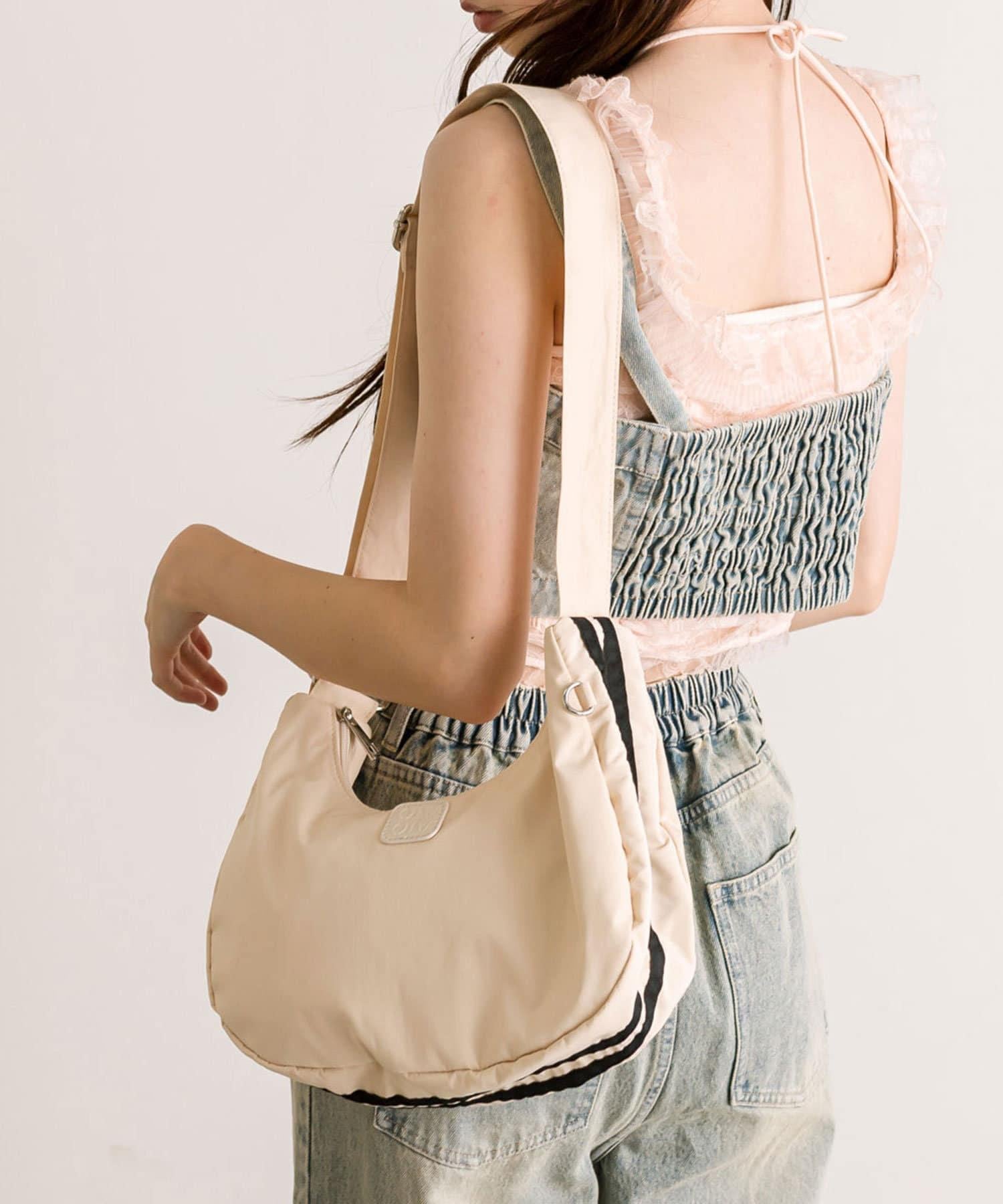 這款 Hobo 包設計可愛,採用雙線裝飾和單點橄欖徽標。