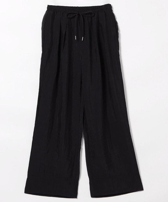 這款寬鬆長褲由人造絲和尼龍製成,質地輕盈透氣。