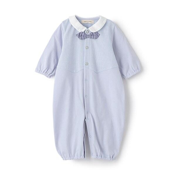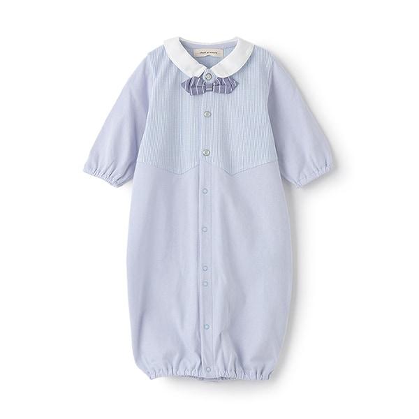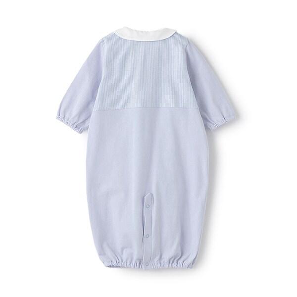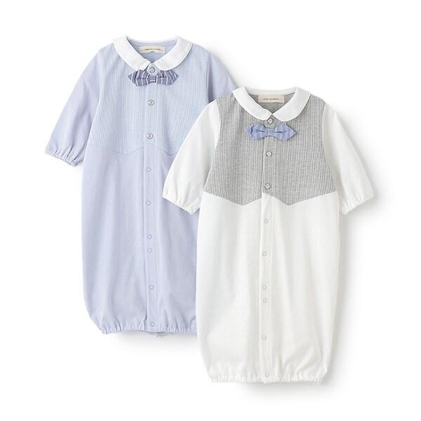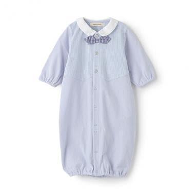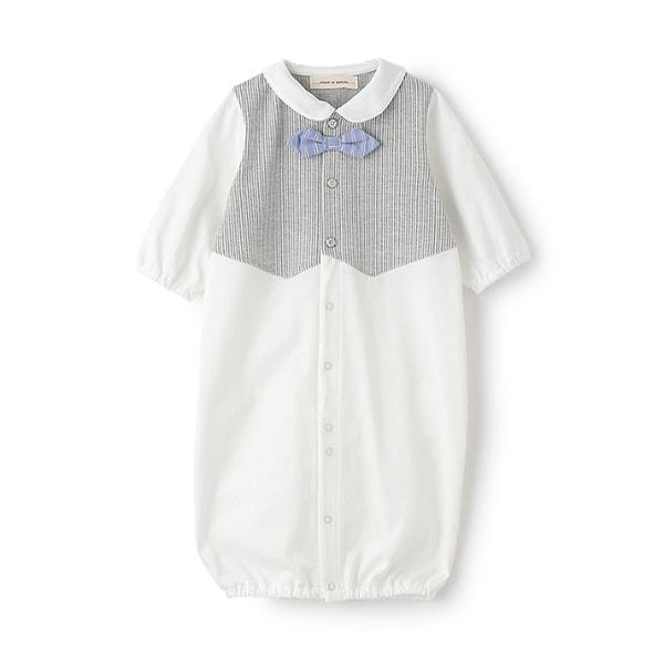 在寶寶剛出生時可作為連衣裙穿,從 2 個月或 3 個月大開始,只需改變襠部的紐扣扣法,即可作為褲裝穿。
