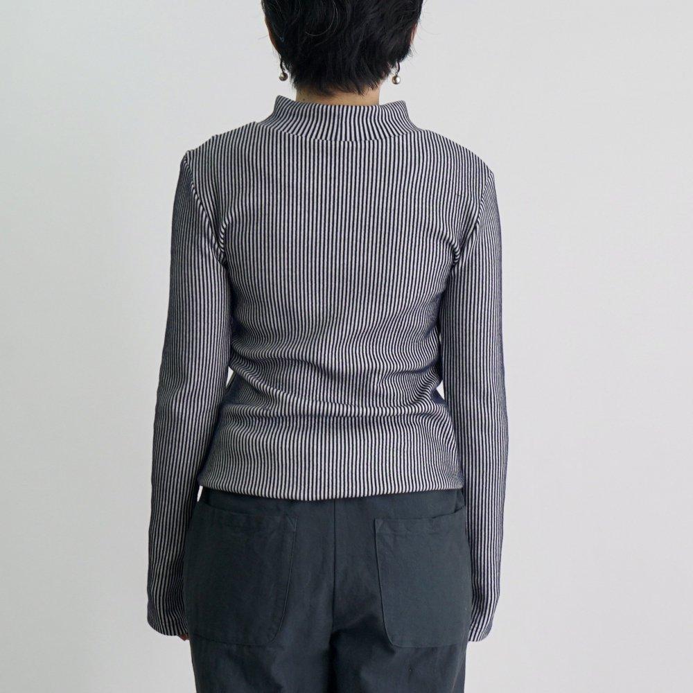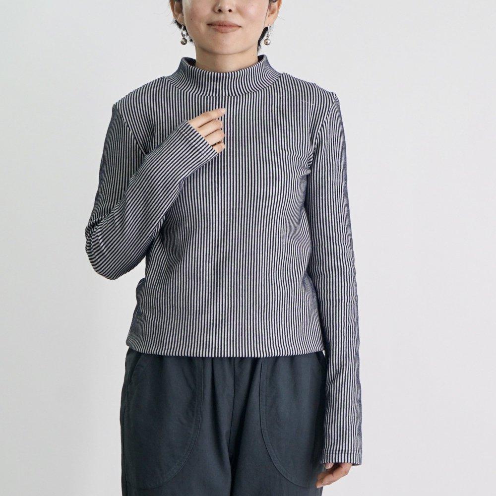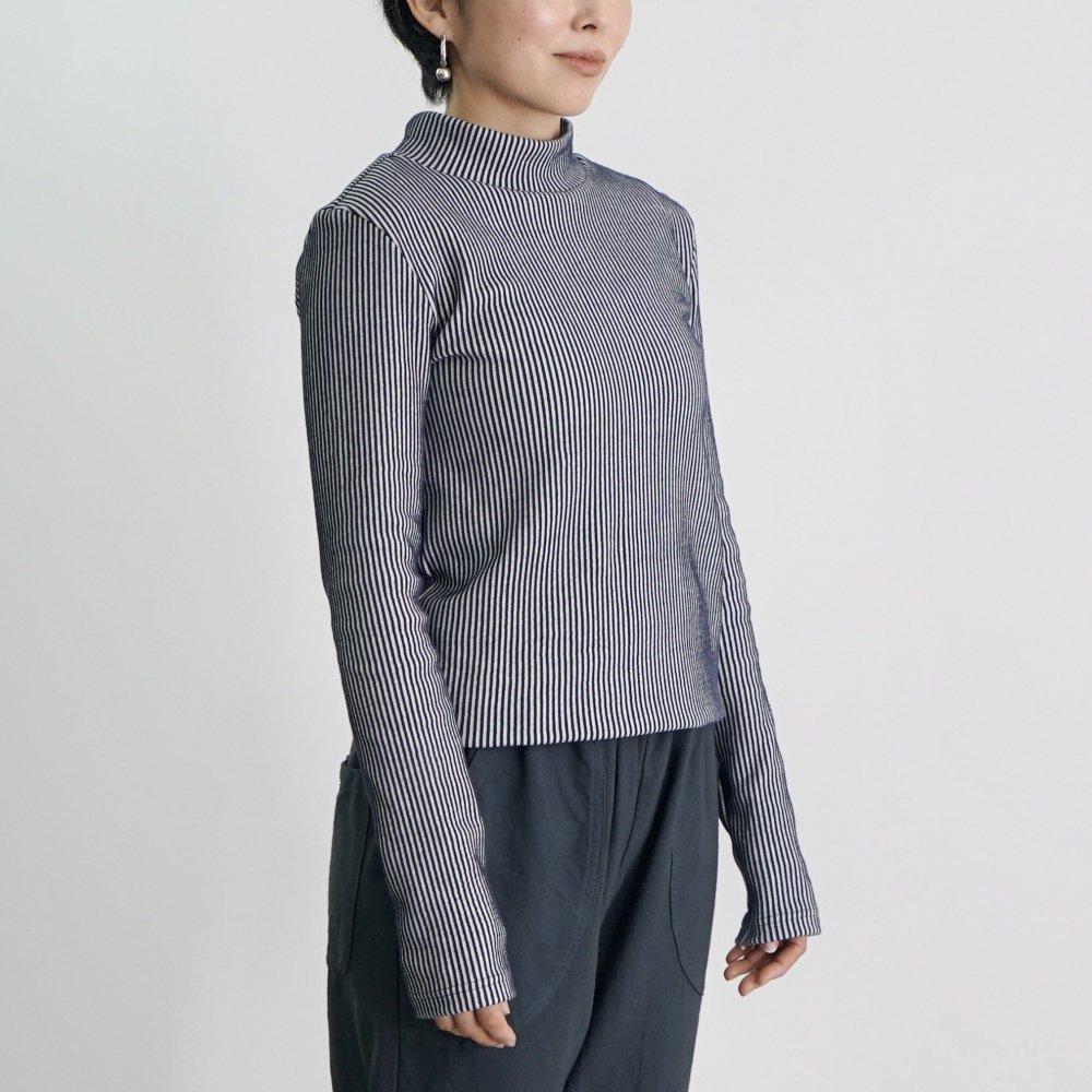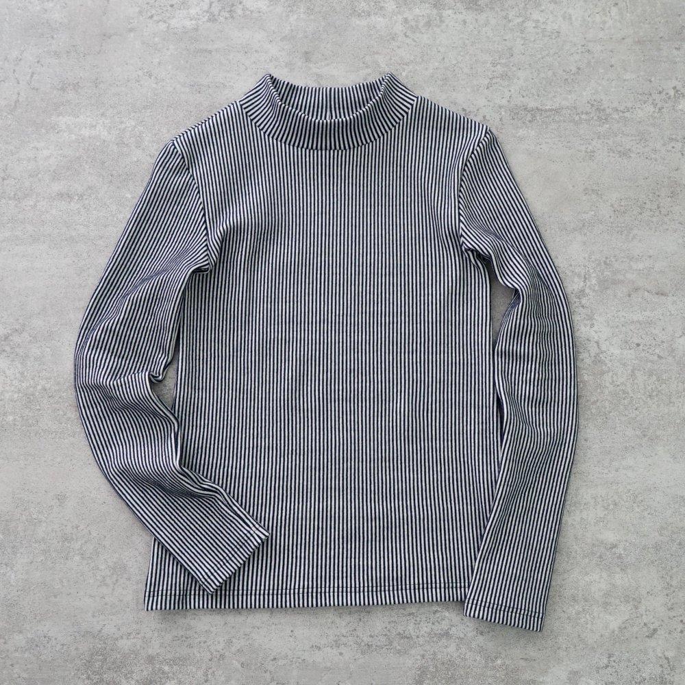 條紋圖案具有強調垂直線條的效果,通過垂直展示眼睛,可以達到提升氣質的效果。 雖然它很貼身,但穿起來不會有緊繃感,而且看起來很圓潤,如果與寬鬆的氣球褲等下身有體積感的單品搭配,會讓上半身看起來更苗條。