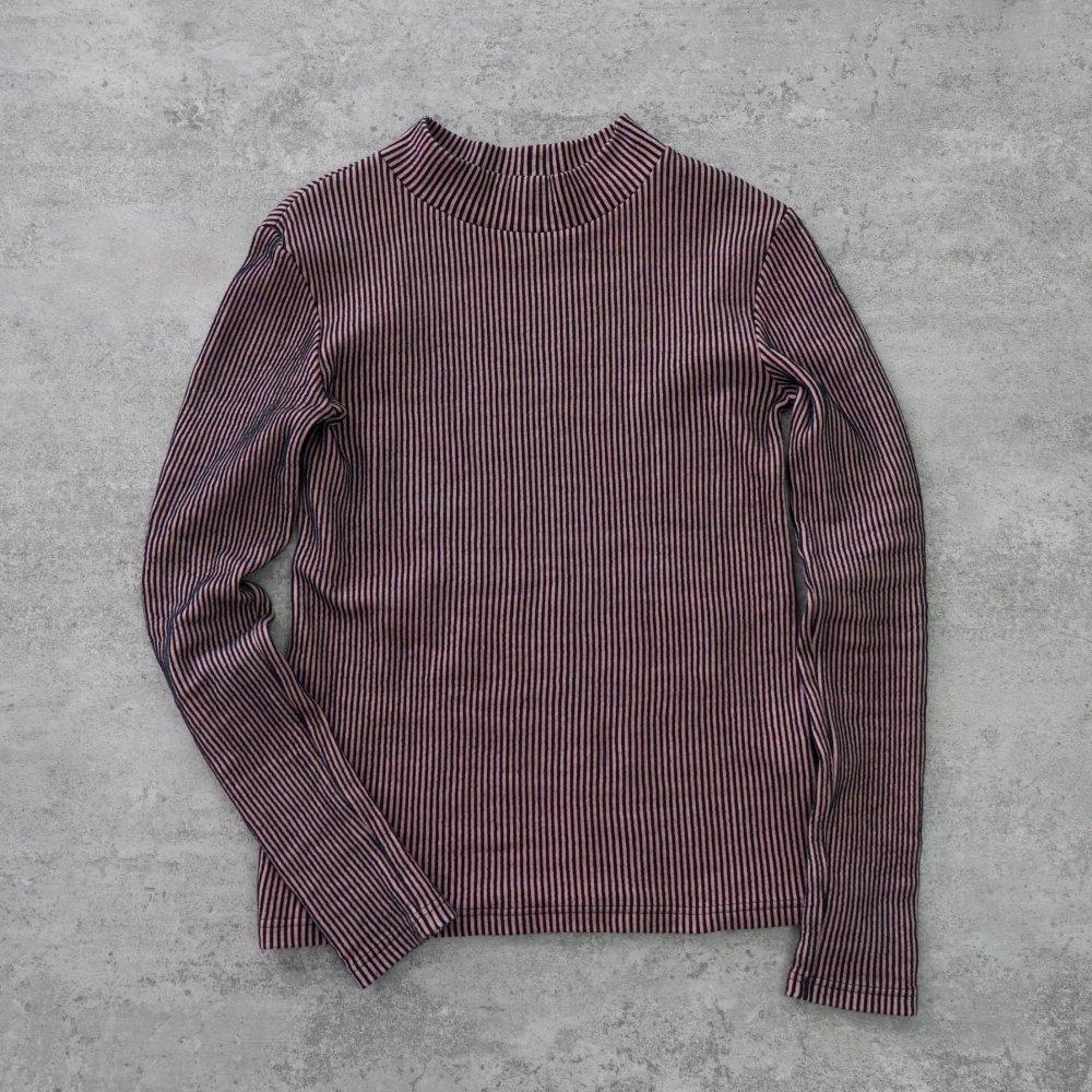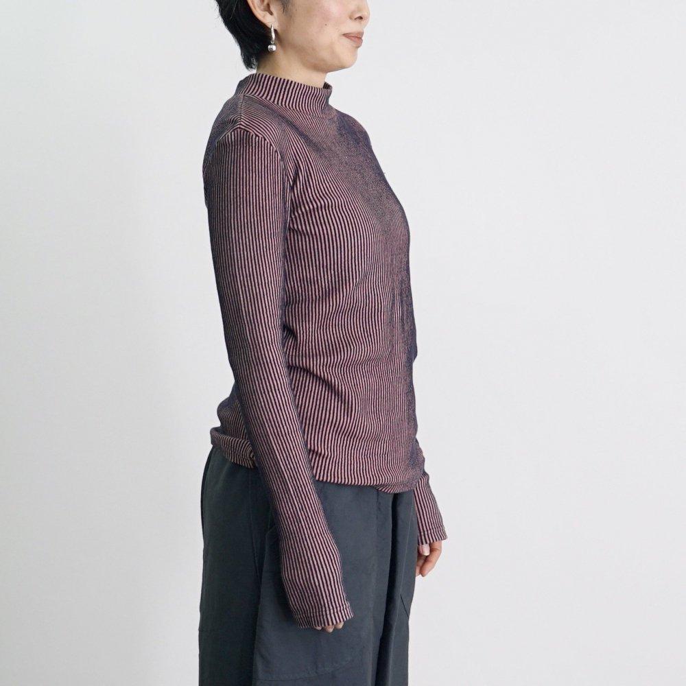條紋圖案具有強調垂直線的效果,通過垂直展示眼睛,可以達到提升氣質的效果。 雖然它很貼身,但穿起來不會有緊繃感,而且看起來很圓潤,如果與寬鬆的氣球褲等下身有體積感的單品搭配,會讓上半身看起來更苗條。