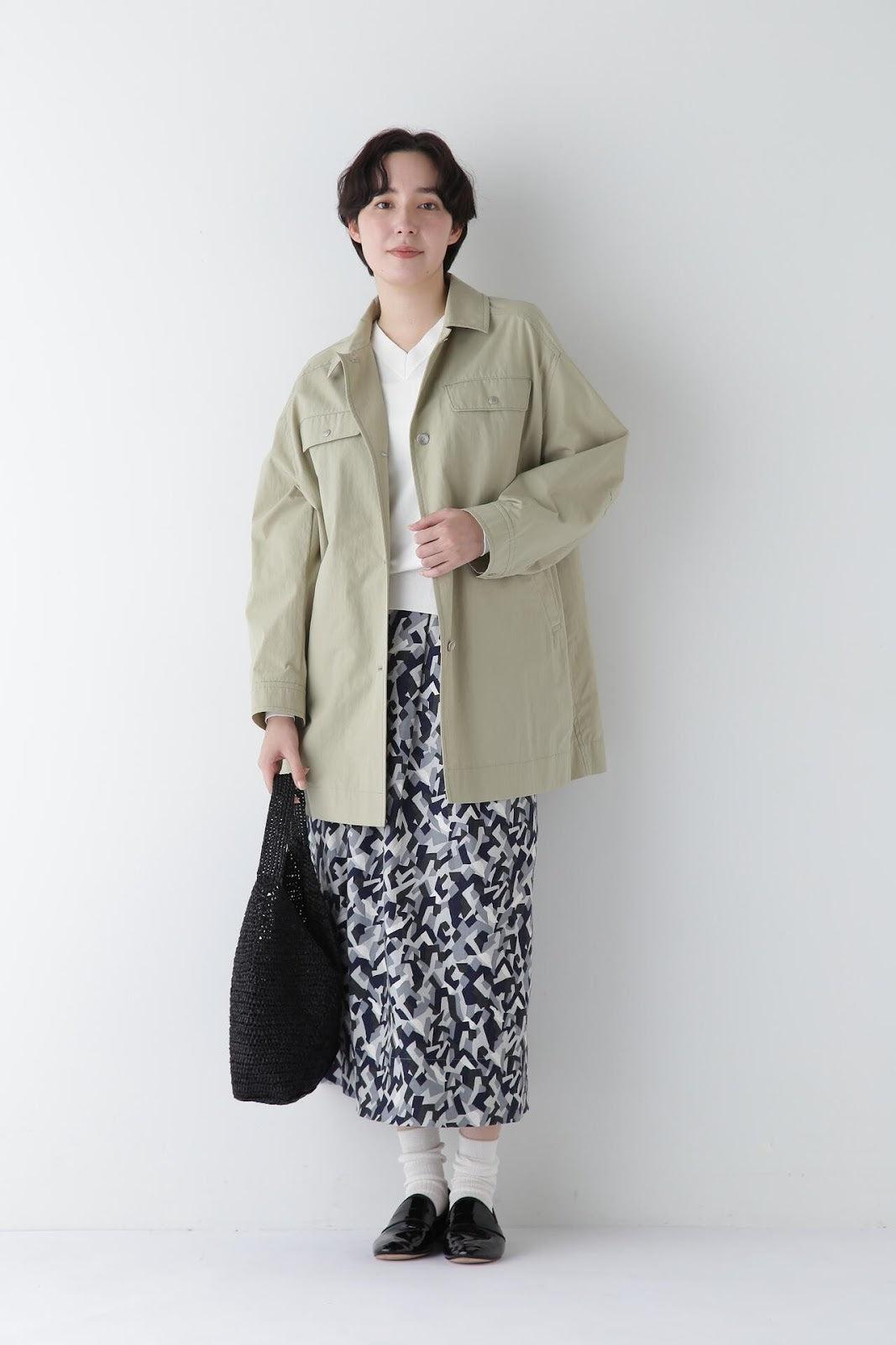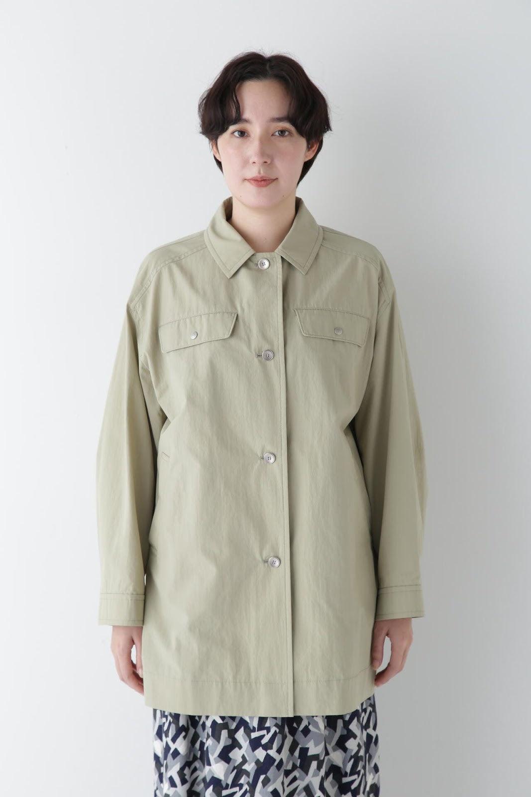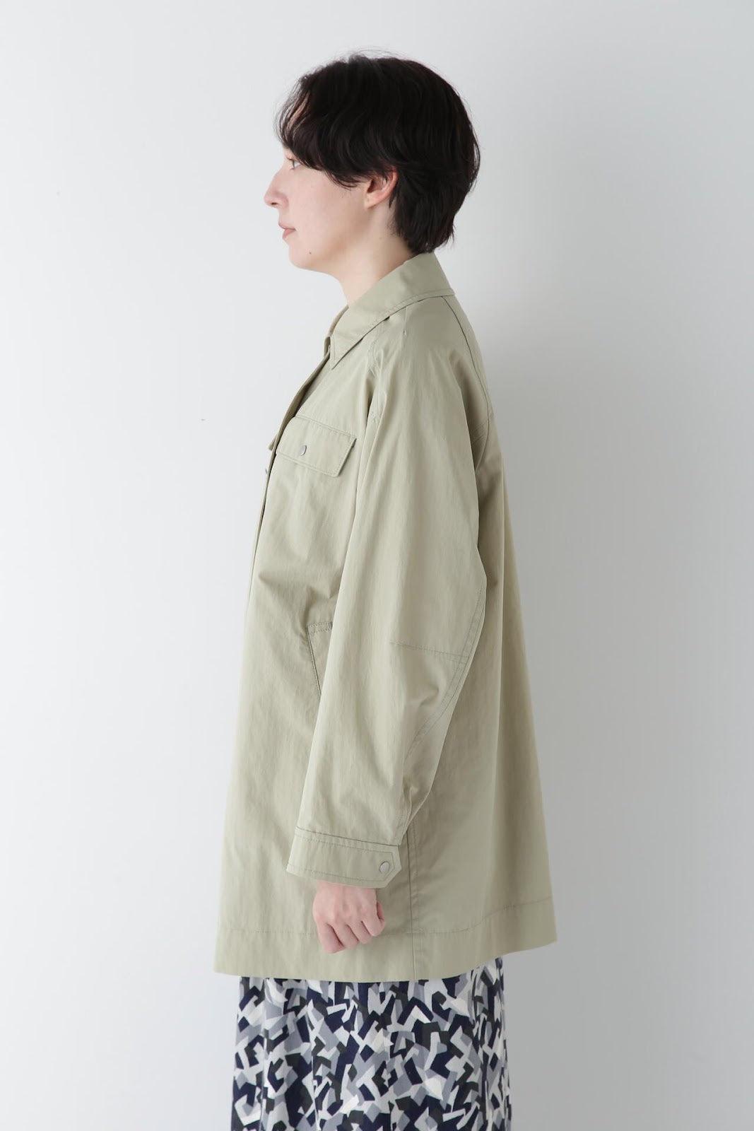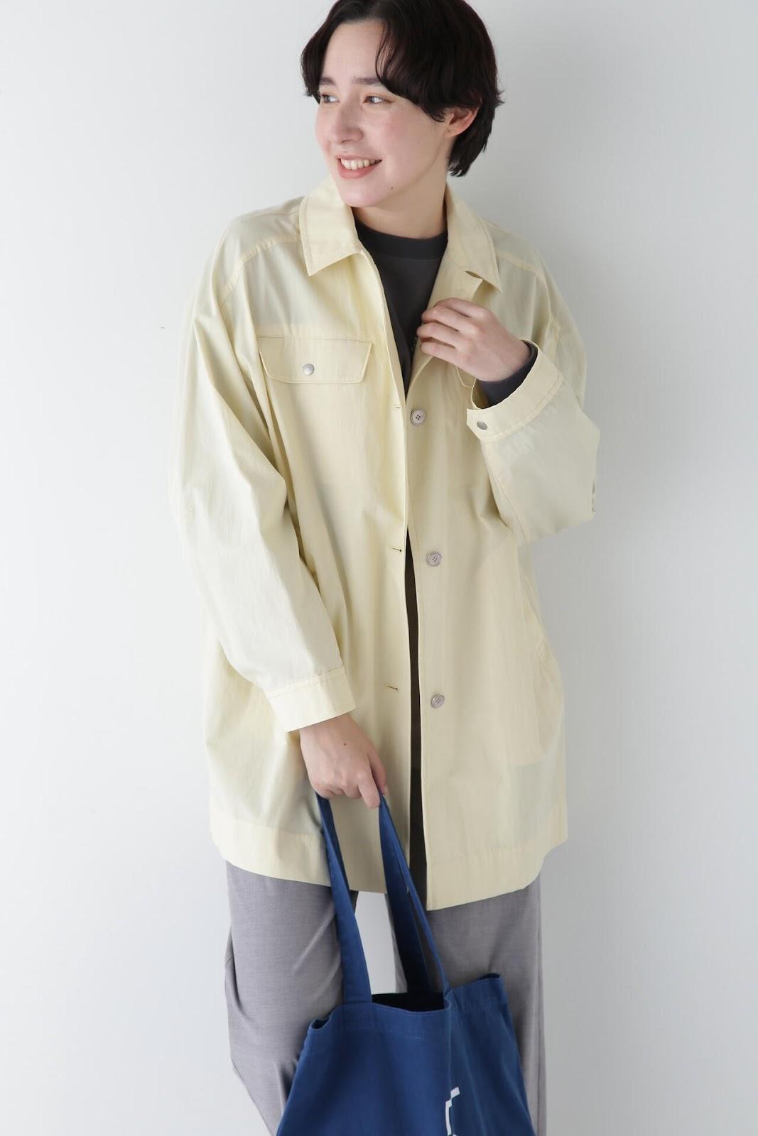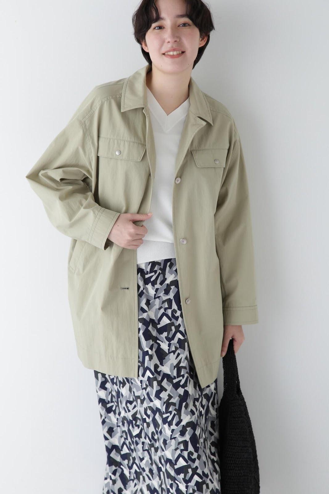 帶有復古風格的實用夾克 [設計特色] 這是一款中長款春裝大衣,帶有教練夾克的細節。設計以胸前的翻蓋為亮點,並使用了獨創的圓點紐扣。面料表現出順滑、乾爽、自然的洗衣感。細線密織,輕薄而又不失質感。百搭的中長款設計可輕鬆應對氣溫變化,還可搭配裙裝和寬鬆長褲,打造均衡的造型。