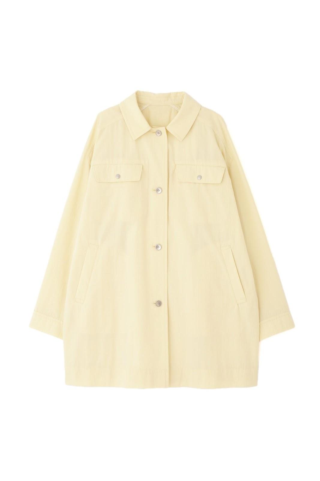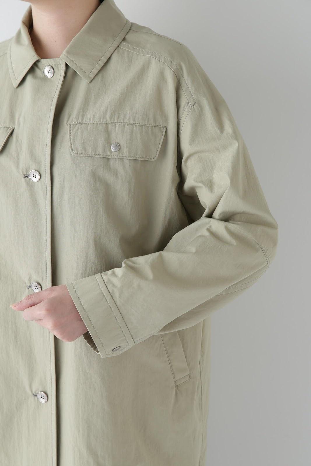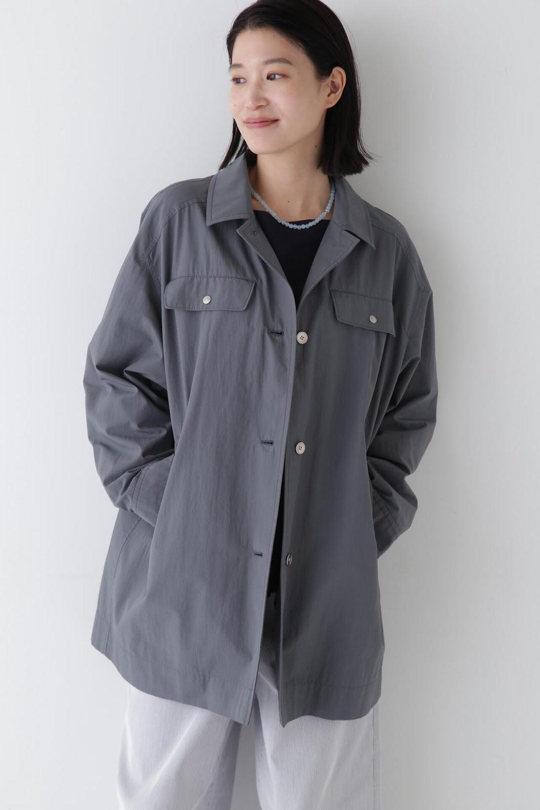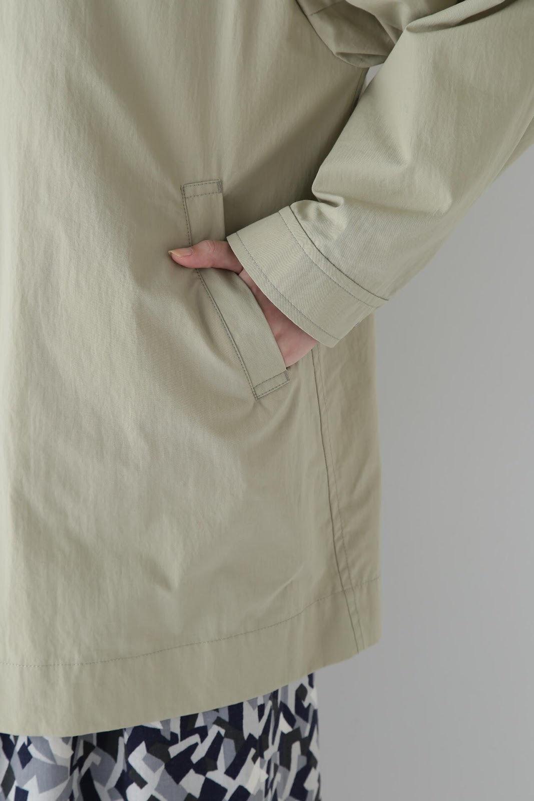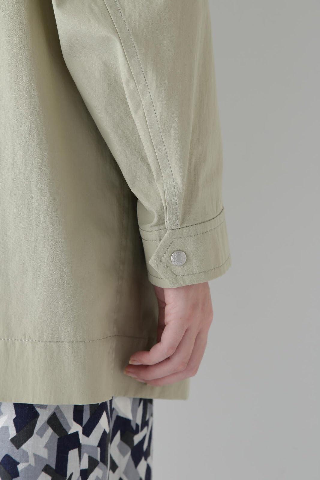 帶有復古風格的實用夾克 [設計特色] 這是一款中長款春裝大衣,帶有教練夾克的細節。設計以胸前的翻蓋為亮點,並使用了獨創的圓點紐扣。面料表現出順滑、乾爽、自然的洗衣感。細線密織,輕薄而又不失質感。百搭的中長款設計可輕鬆應對氣溫變化,還可搭配裙裝和寬鬆長褲,打造均衡的造型。