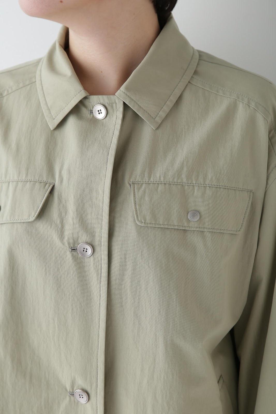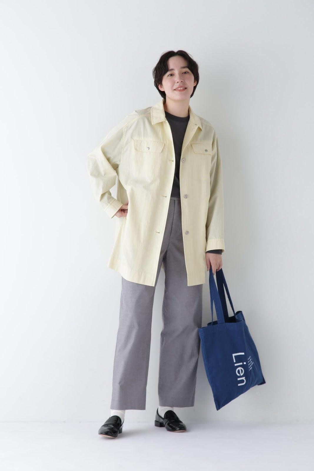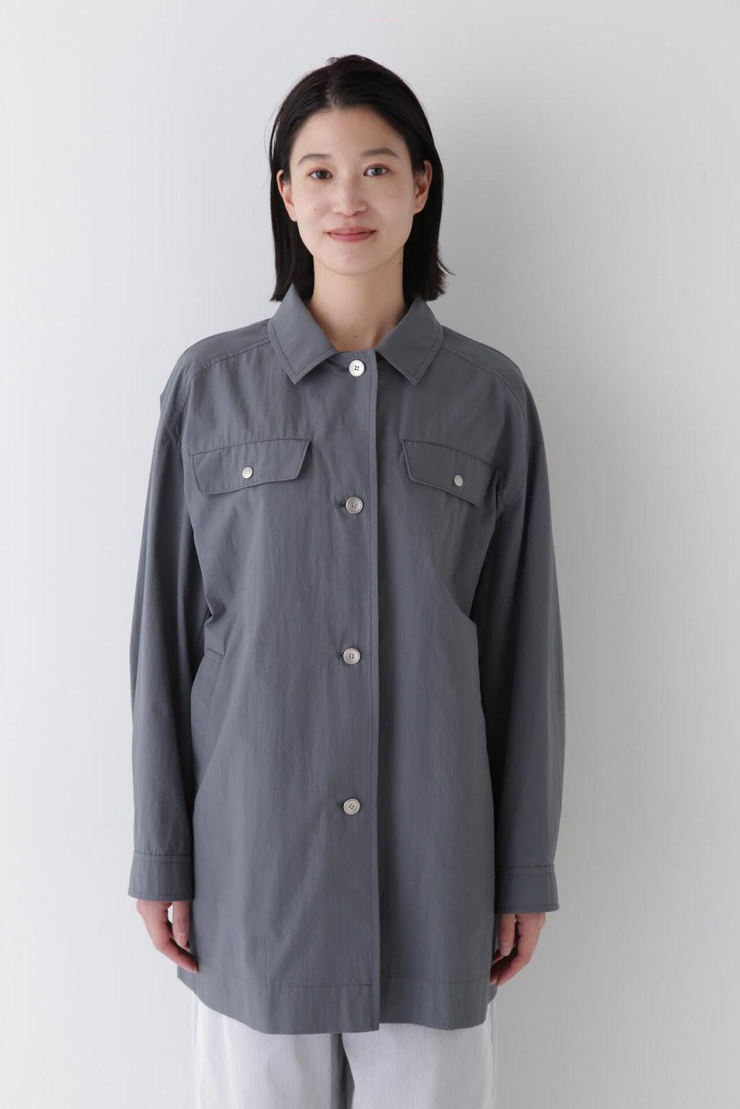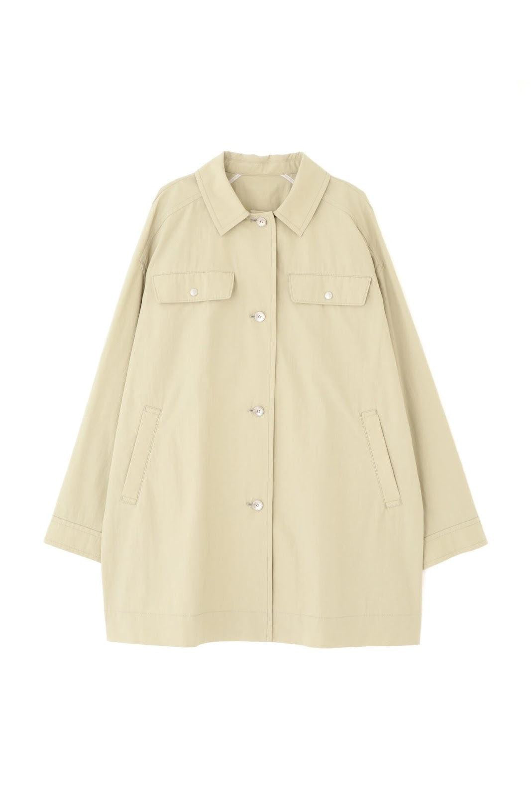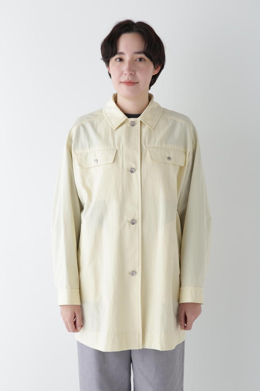 帶有復古風格的實用夾克 [設計特色] 這是一款中長款春裝大衣,帶有教練夾克的細節。設計以胸前的翻蓋為亮點,並使用了獨創的圓點紐扣。面料表現出順滑、乾爽、自然的洗衣感。細線密織,輕薄而又不失質感。百搭的中長款設計可輕鬆應對氣溫變化,還可搭配裙裝和寬鬆長褲,打造均衡的造型。