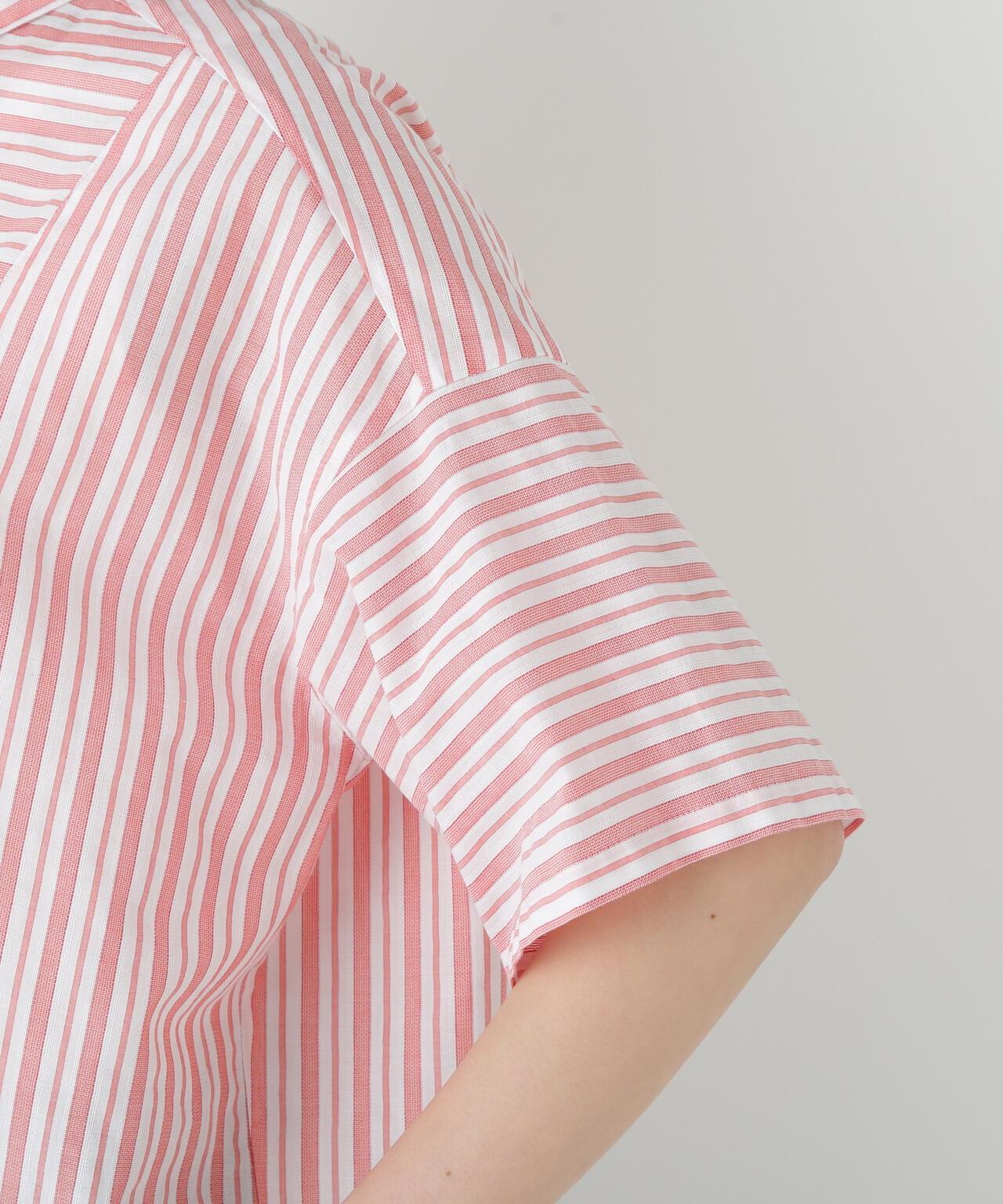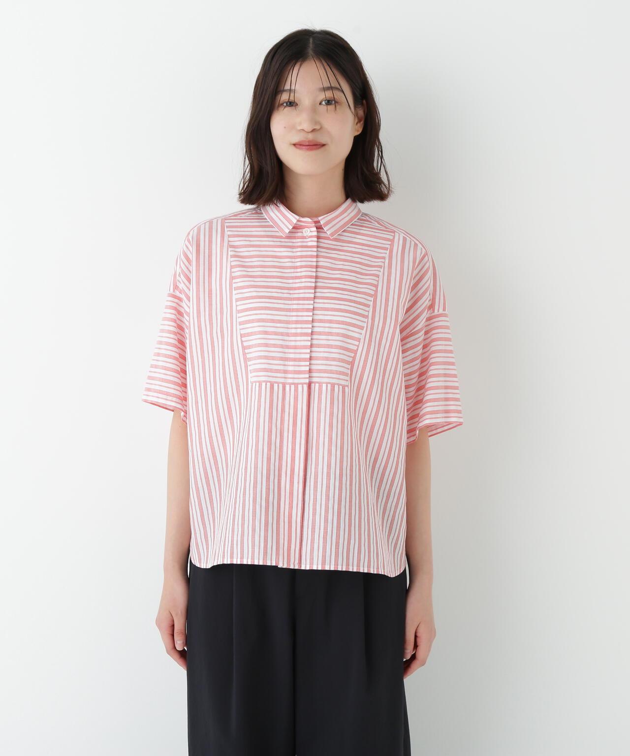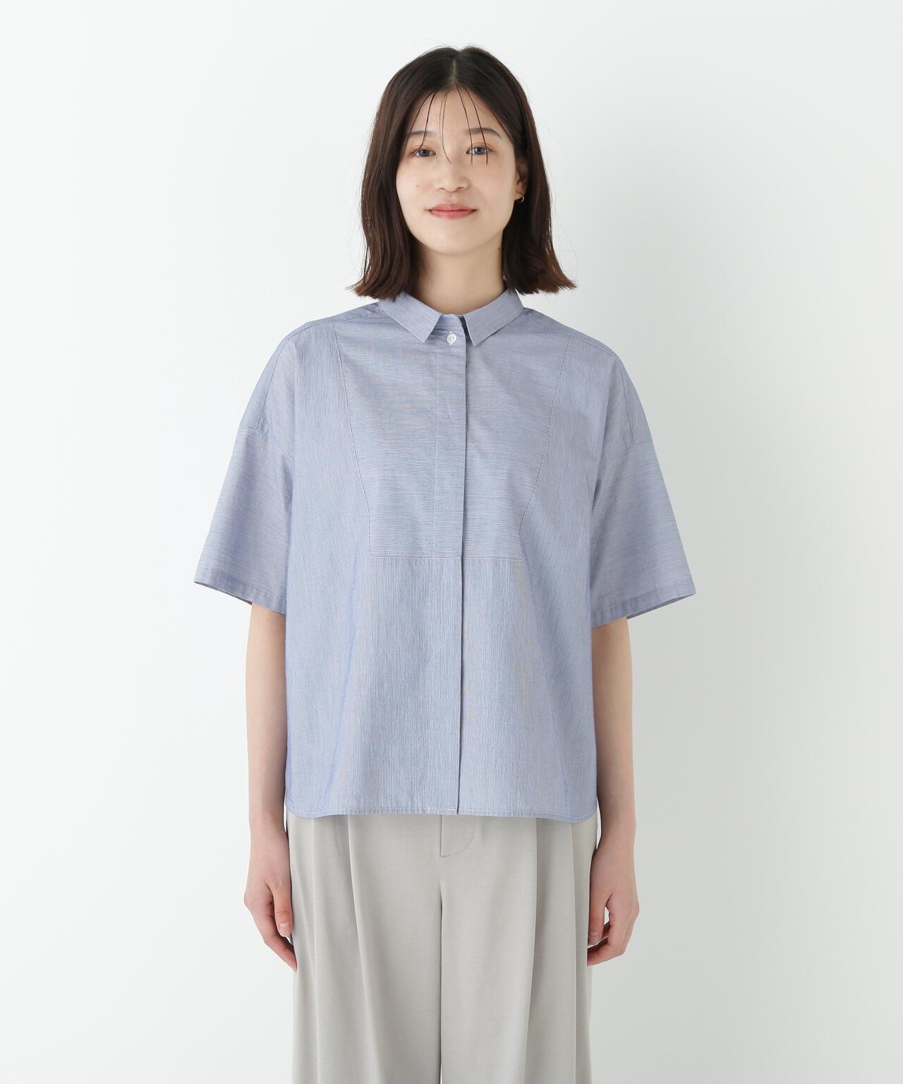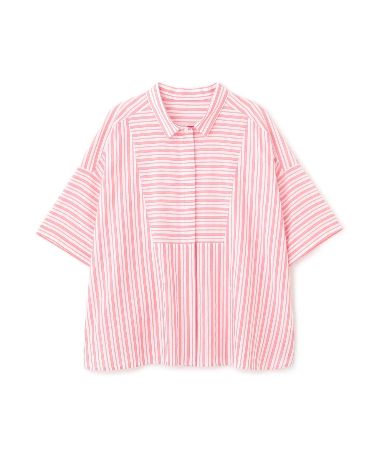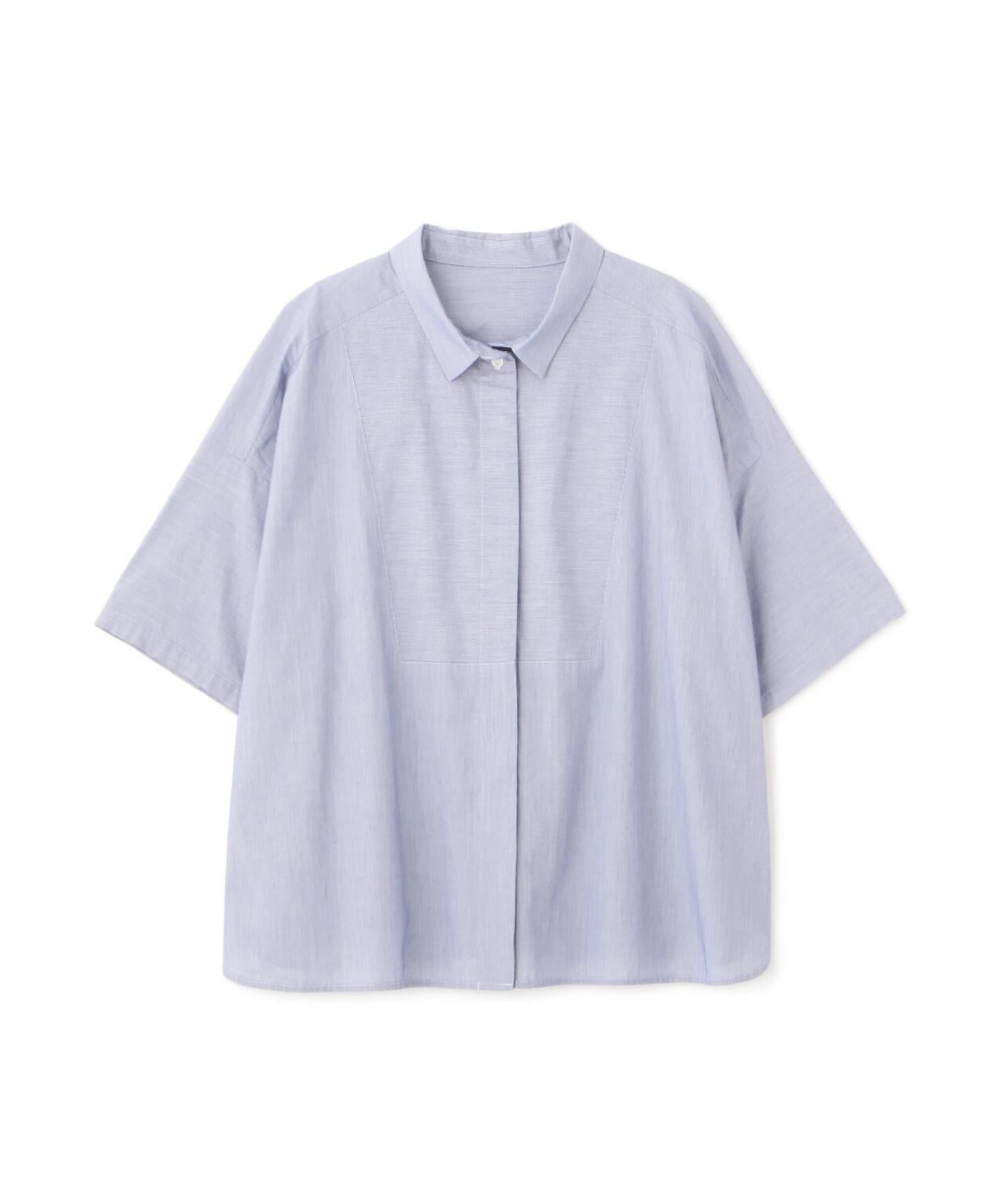 這款清涼條紋襯衫的箱型廓形 [設計要點] 這是一款半袖、箱型廓形、緊身懷抱襯衫。這款襯衫採用方形廓形,設計寬鬆,有黑色、藍色和橙色三種不同顏色可供選擇。前襟全開,採用飛翼式剪裁,可作為梭織或套頭衫穿著。