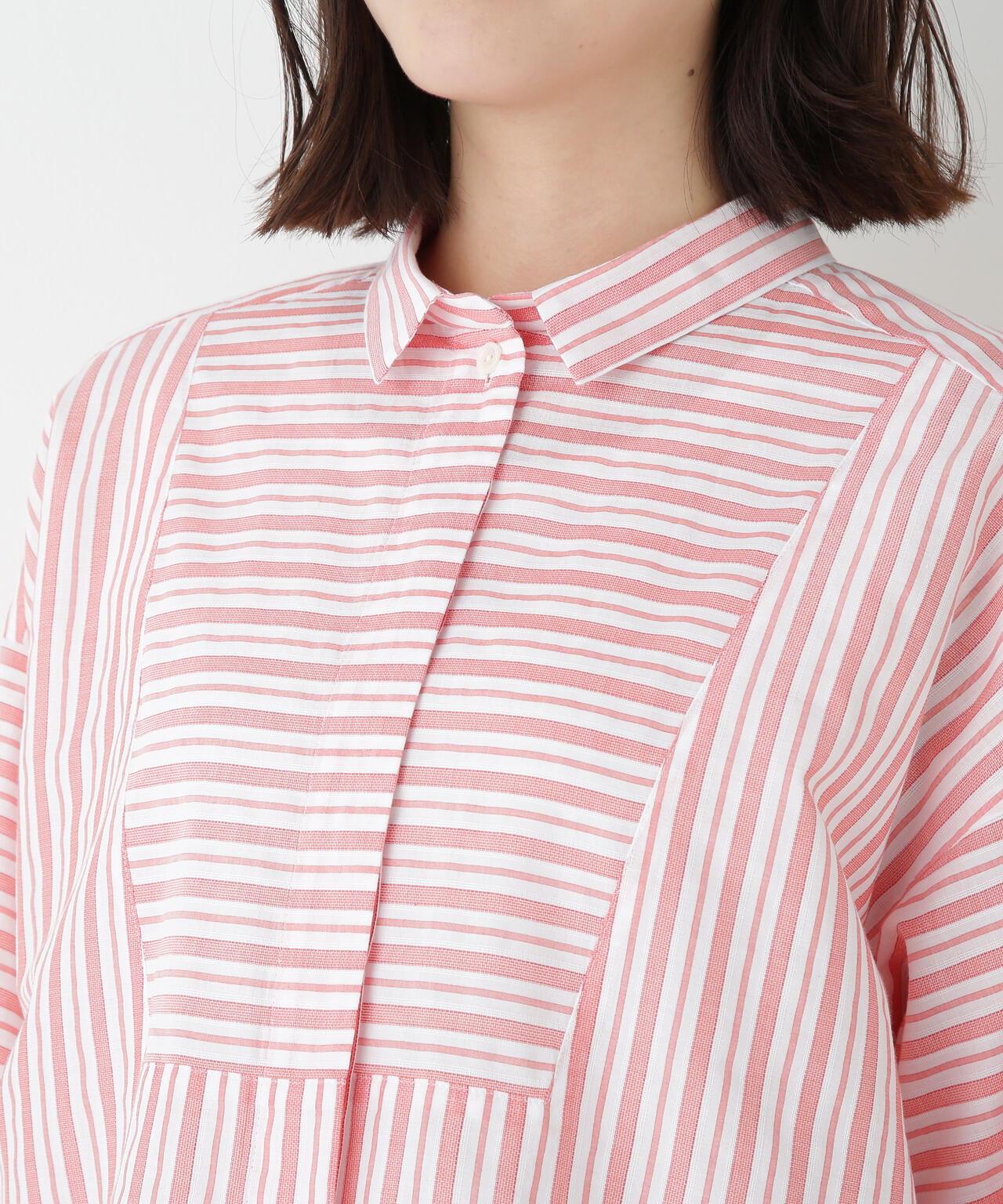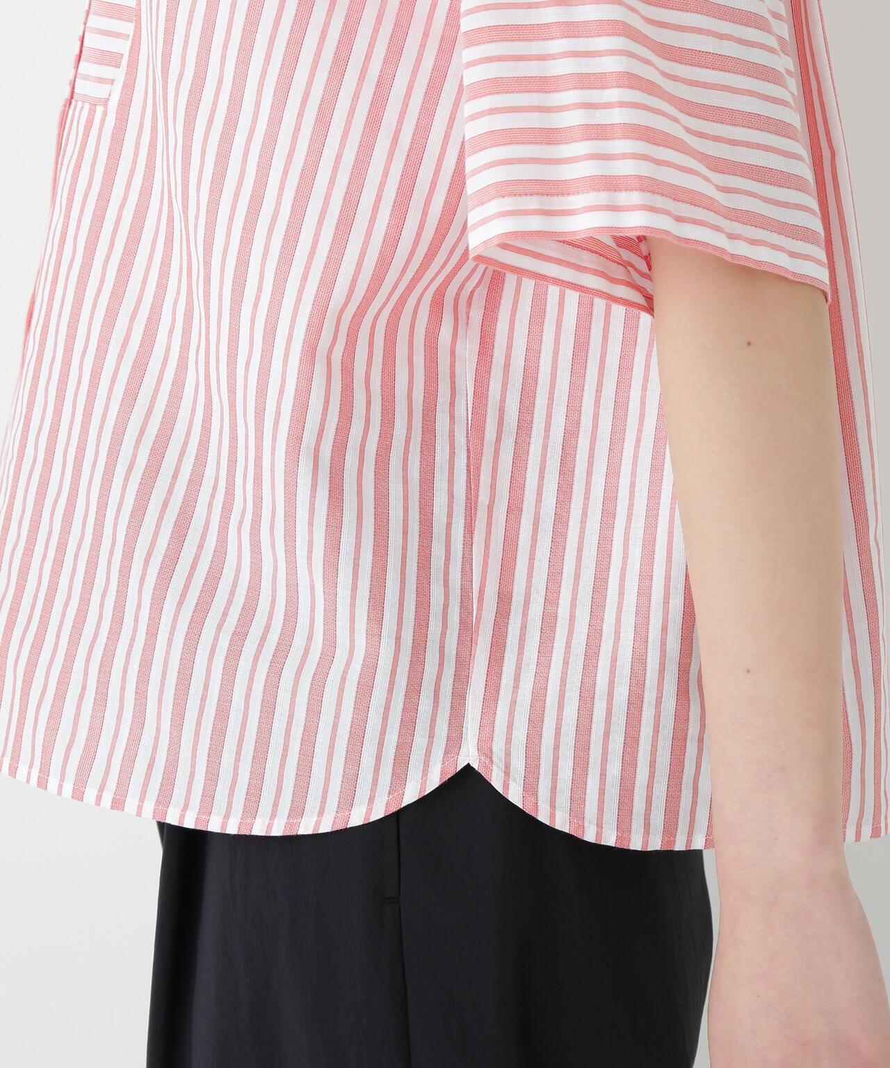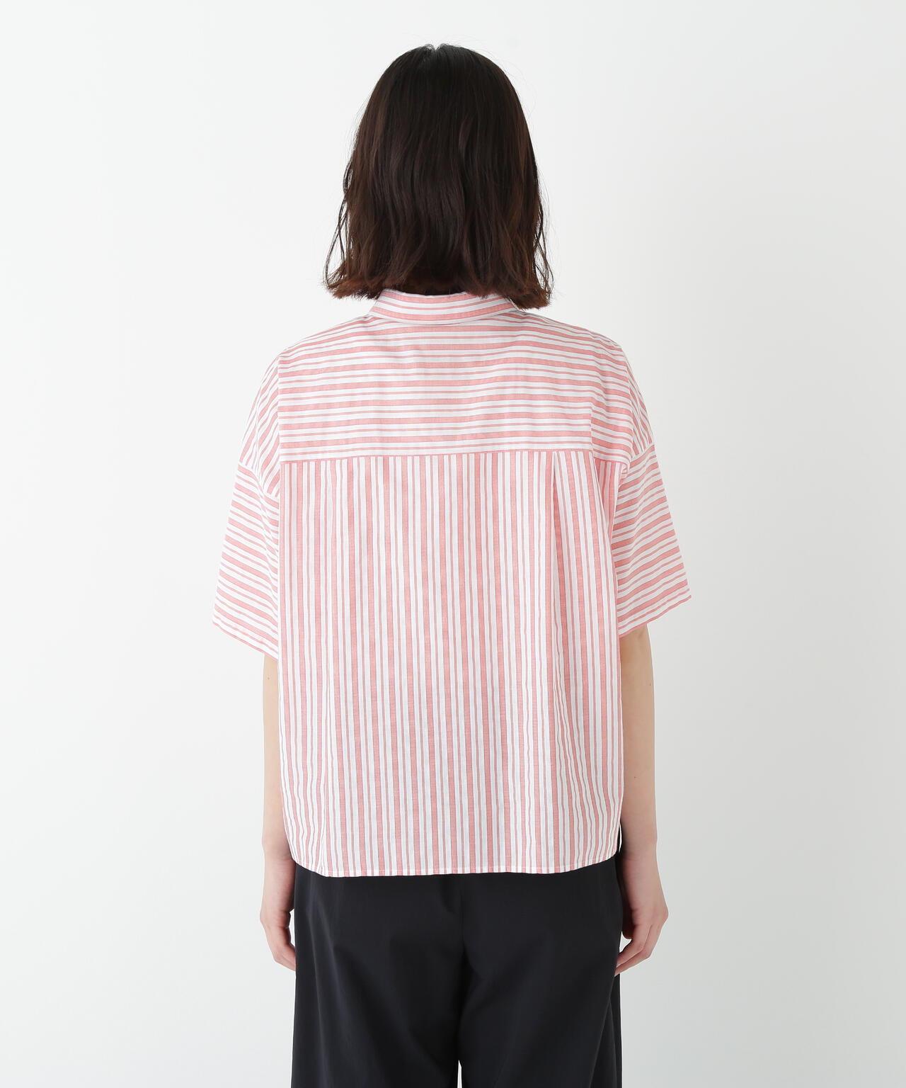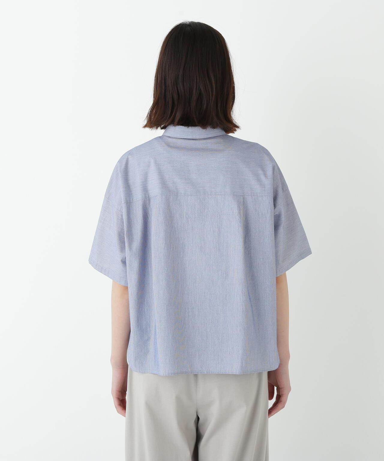 這款清涼條紋襯衫的箱型廓形 [設計要點] 這是一款半袖、箱型廓形、緊身懷抱襯衫。這款襯衫採用方形廓形,設計寬鬆,有黑色、藍色和橙色三種不同顏色可供選擇。前襟全開,採用飛翼式剪裁,可作為梭織或套頭衫穿著。
