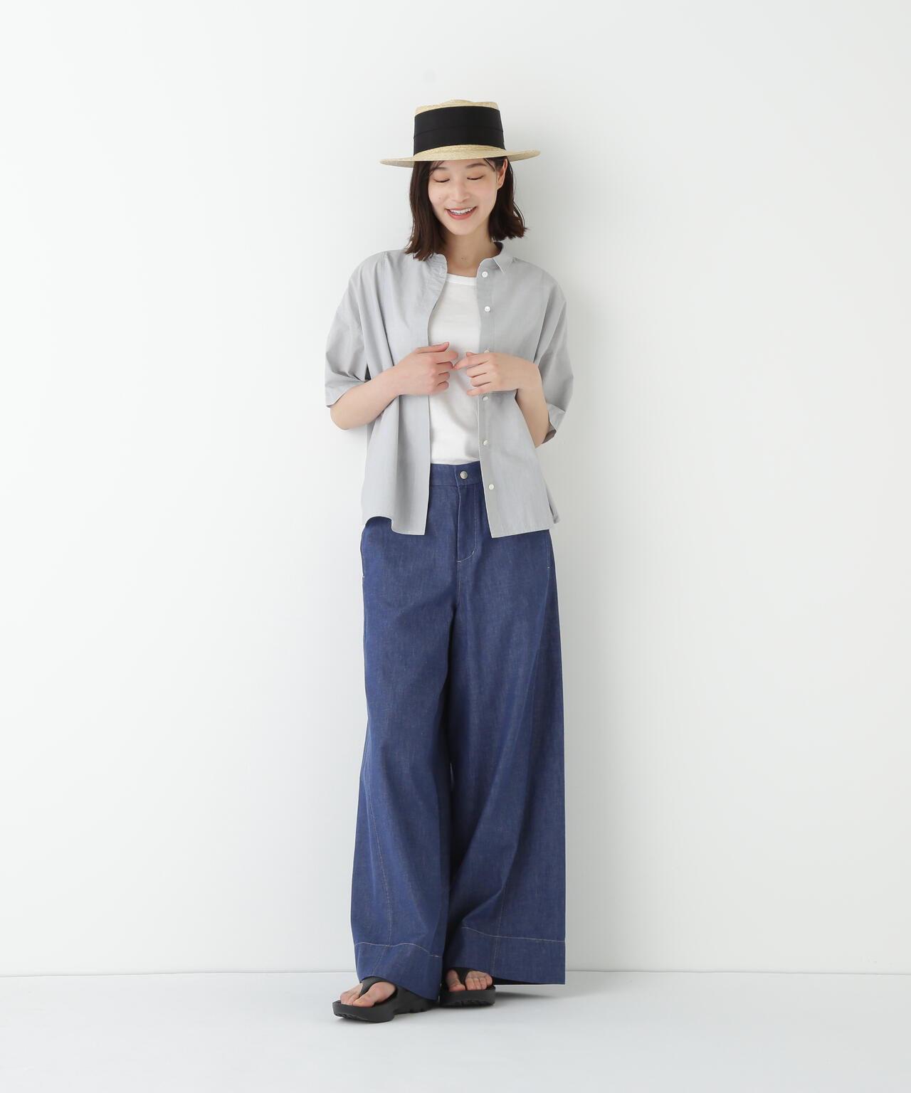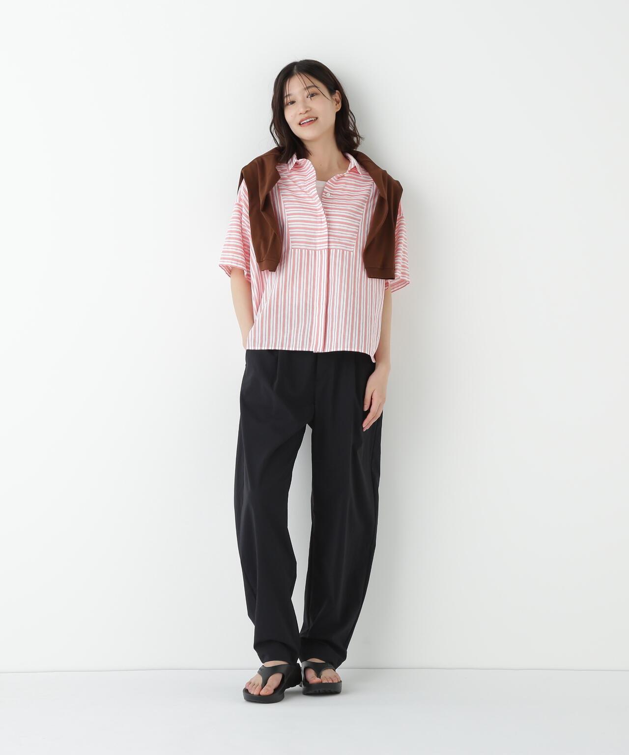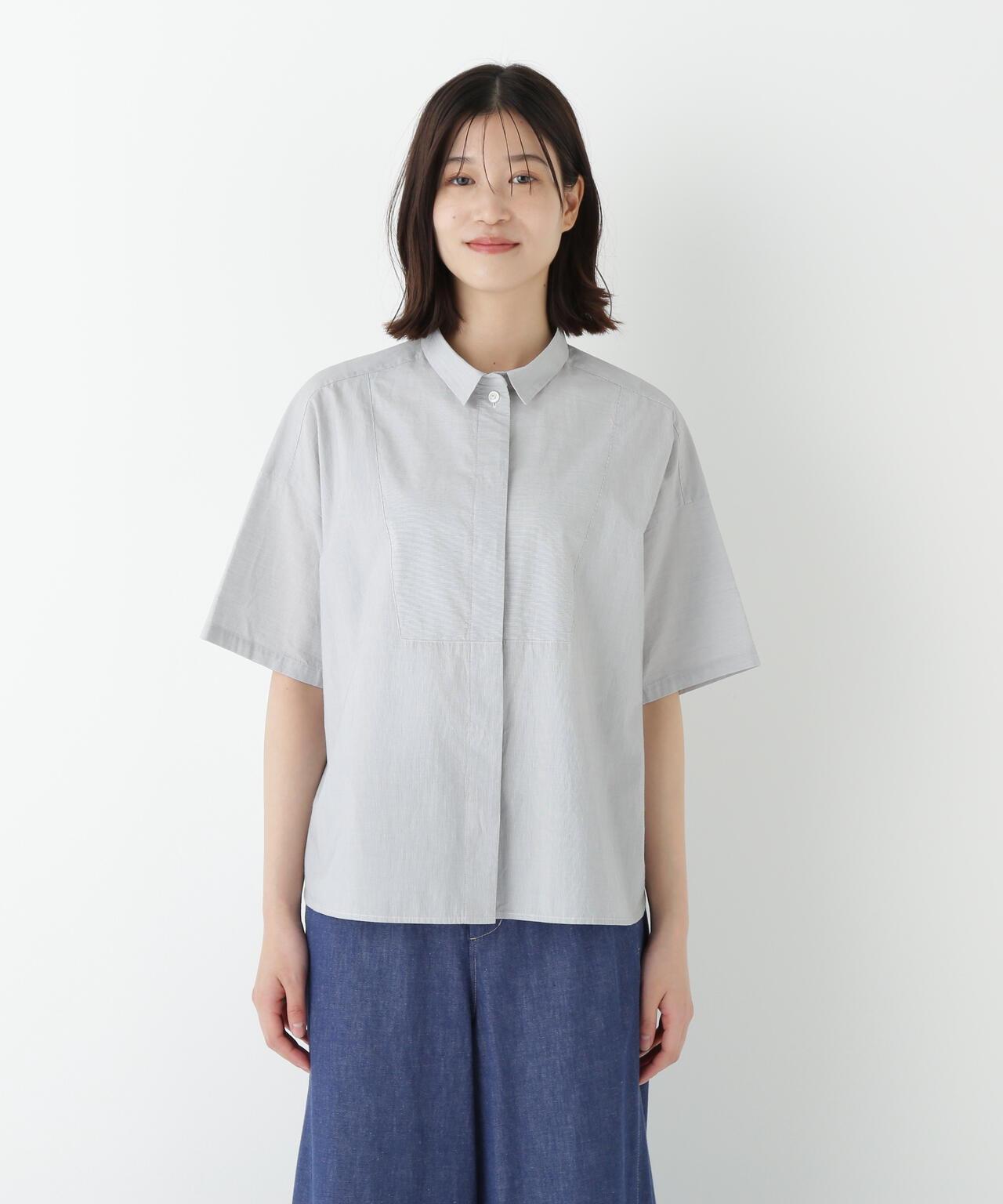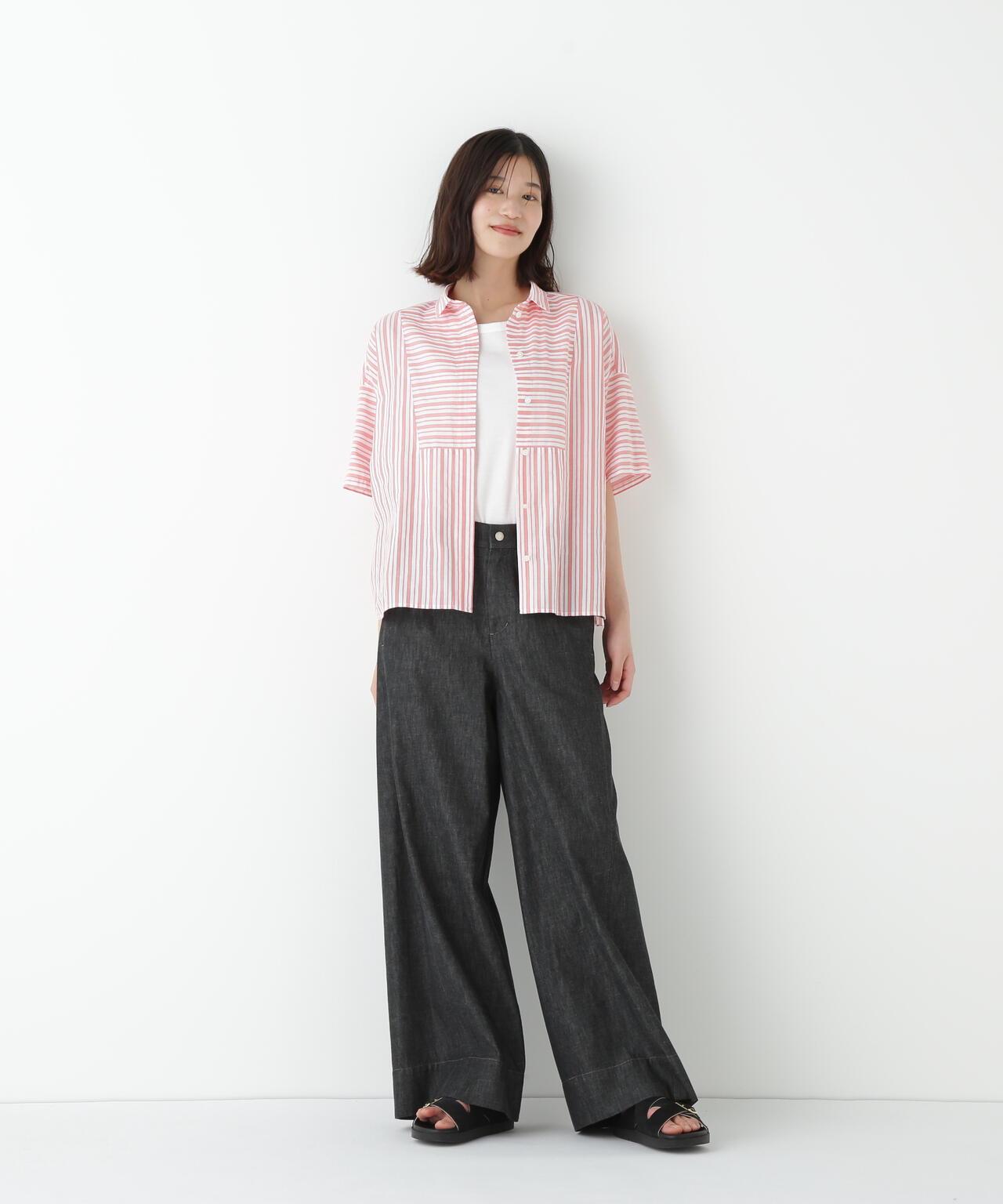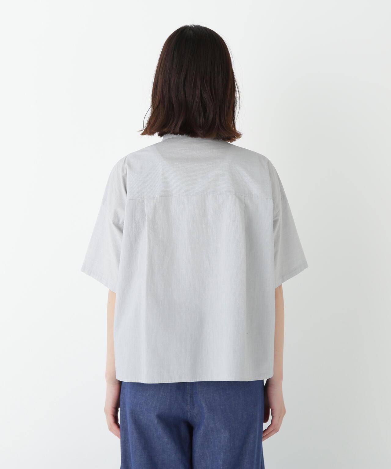 這款清涼條紋襯衫的箱型廓形 [設計要點] 這是一款半袖、箱型廓形、緊身懷抱襯衫。這款襯衫採用方形廓形,設計寬鬆,有黑色、藍色和橙色三種不同顏色可供選擇。前襟全開,採用飛翼式剪裁,可作為梭織或套頭衫穿著。