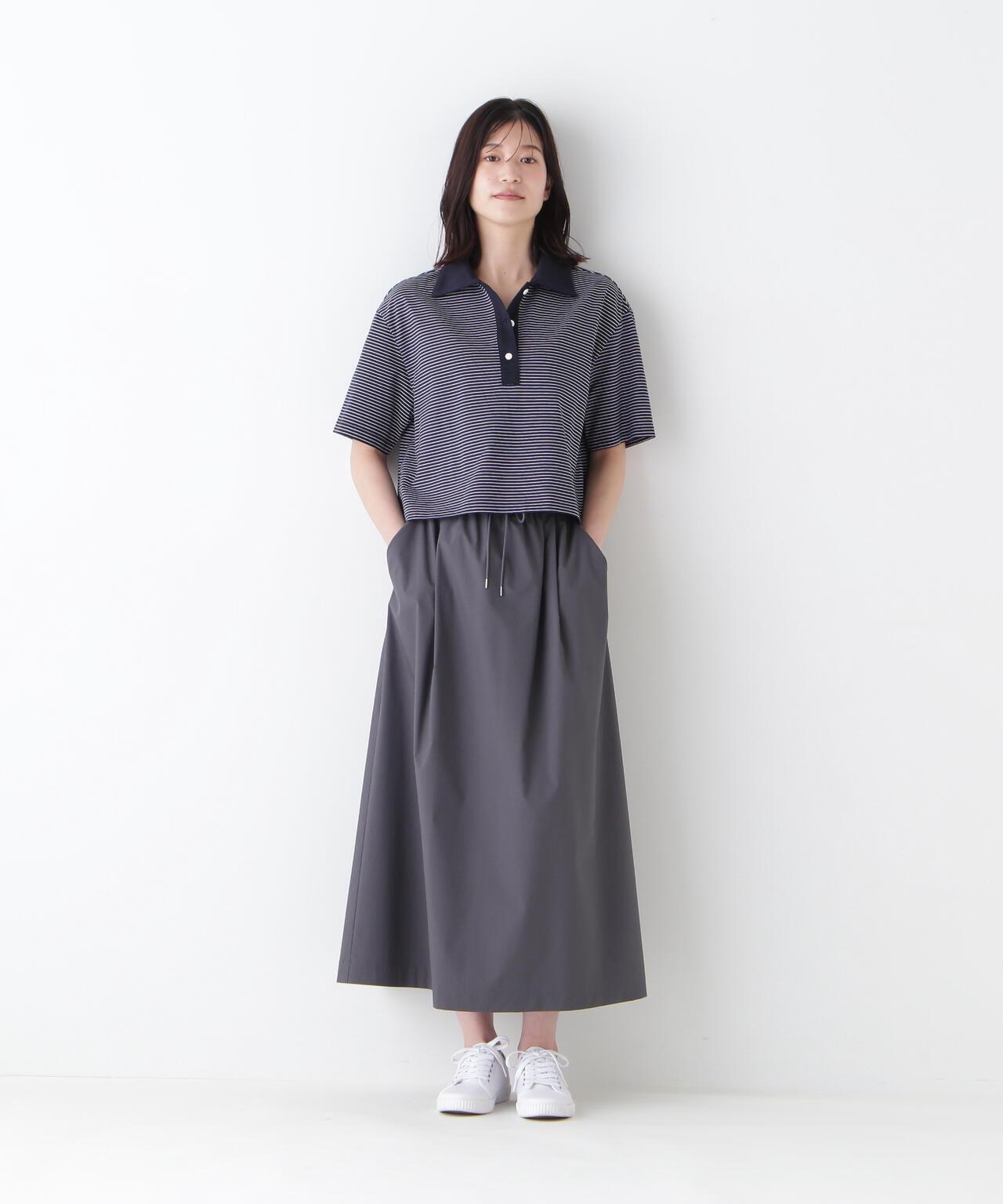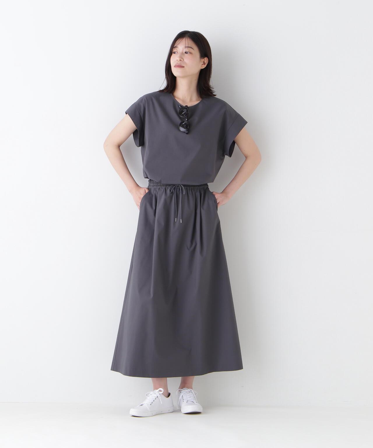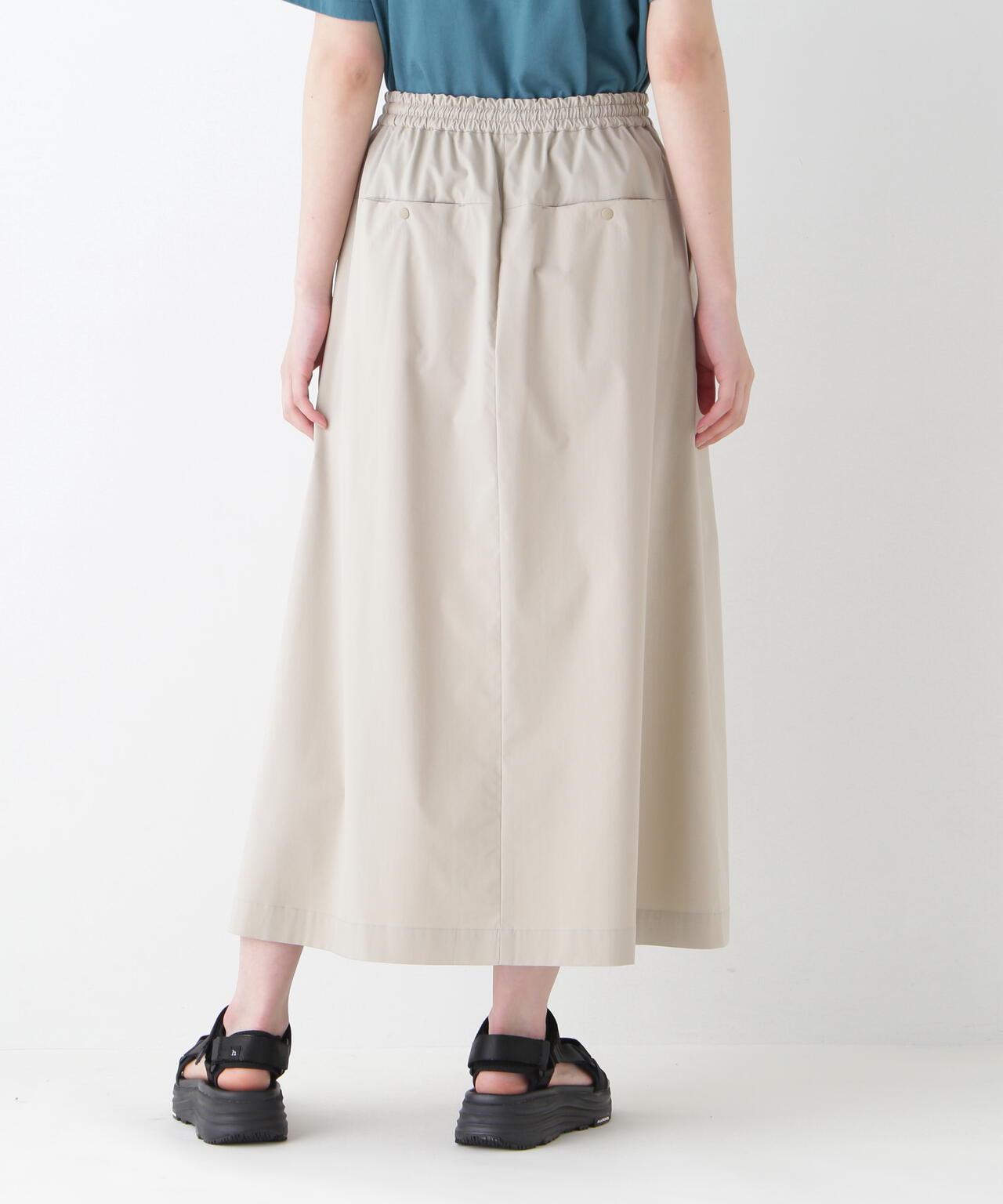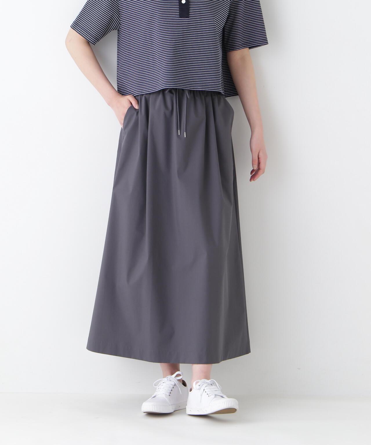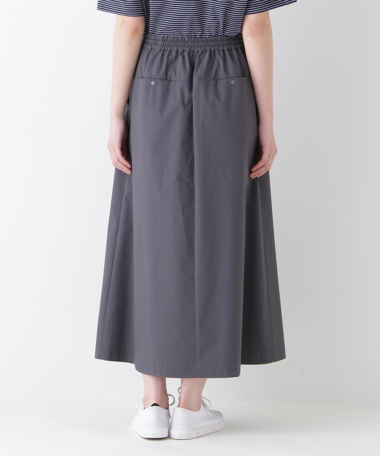 運動風格的單襉 A 字裙,腰部配有抽繩和配飾。裙子採用有機棉混紡 C/P 天候面料,表面自然美觀。這種面料還具有弱防水性和輕彈力等運動特性,在這個季節很容易打理。這款裙子易於日常穿著,其功能性材質讓人愛不釋手。建議搭配同材質的上衣。