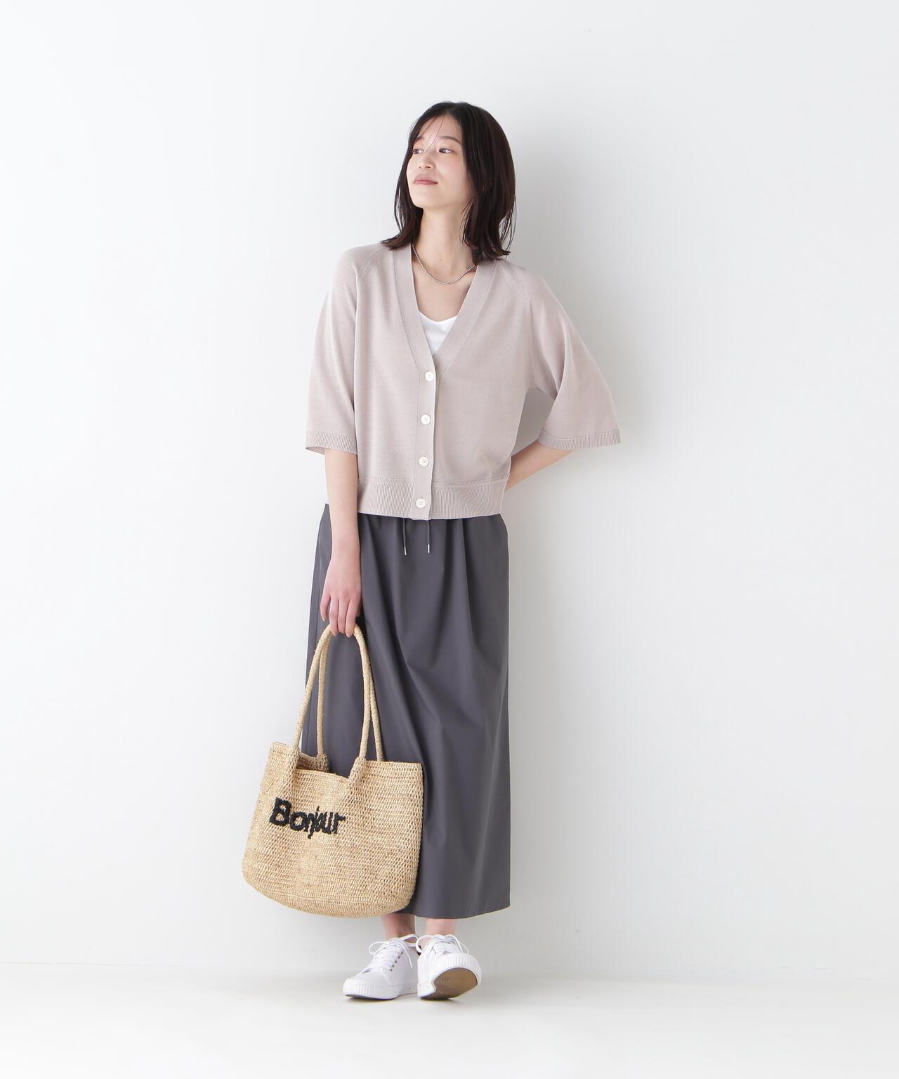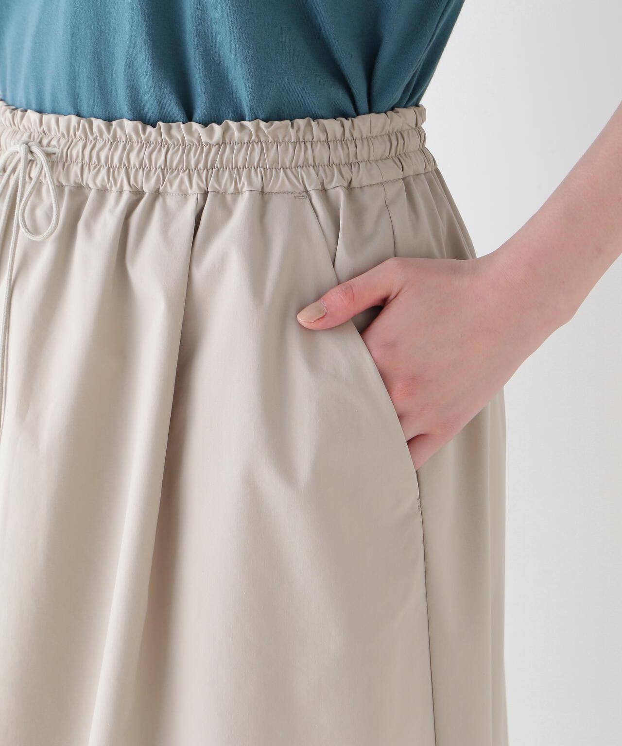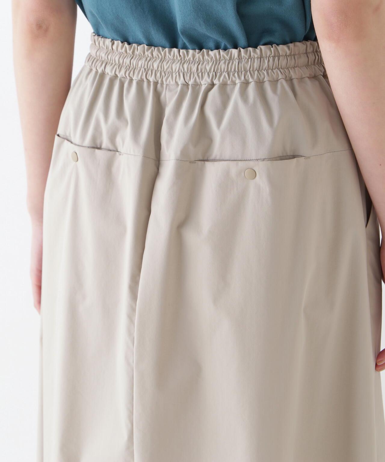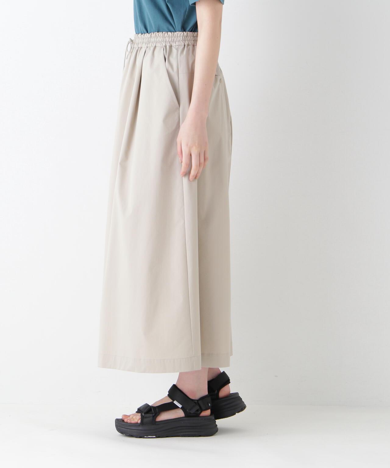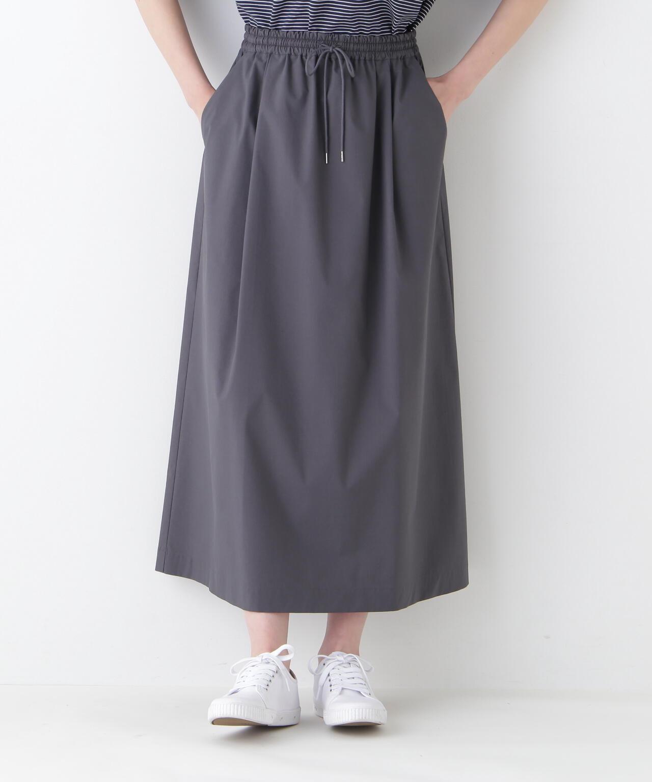運動風格的單襉 A 字裙,腰部配有抽繩和配飾。裙子採用有機棉混紡 C/P 天候面料,表面自然美觀。這種面料還具有弱防水性和輕彈力等運動特性,在這個季節很容易打理。這款裙子易於日常穿著,其功能性材質讓人愛不釋手。建議搭配同材質的上衣。