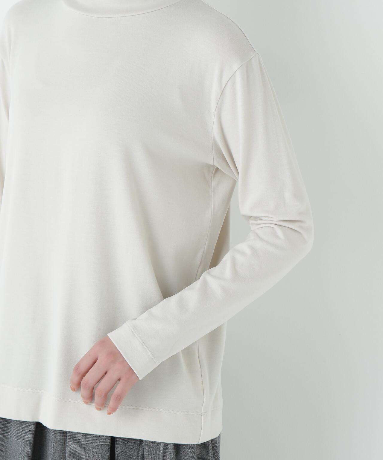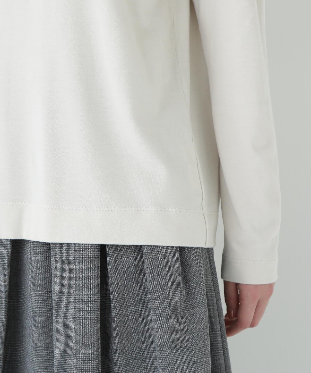 高領剪裁縫製,適合疊穿 [設計要點] 長袖剪裁縫製,領口簡潔高挺。採用柔軟而有彈性的棉混紡針織面料製成。面料具有吸溼性,可防止腫脹,同時還具有保溼性,可保持溫暖乾爽。推薦座標] 此款單品可作為針織衫和襯衫的內搭,也可作為毛衣短裙的內搭。