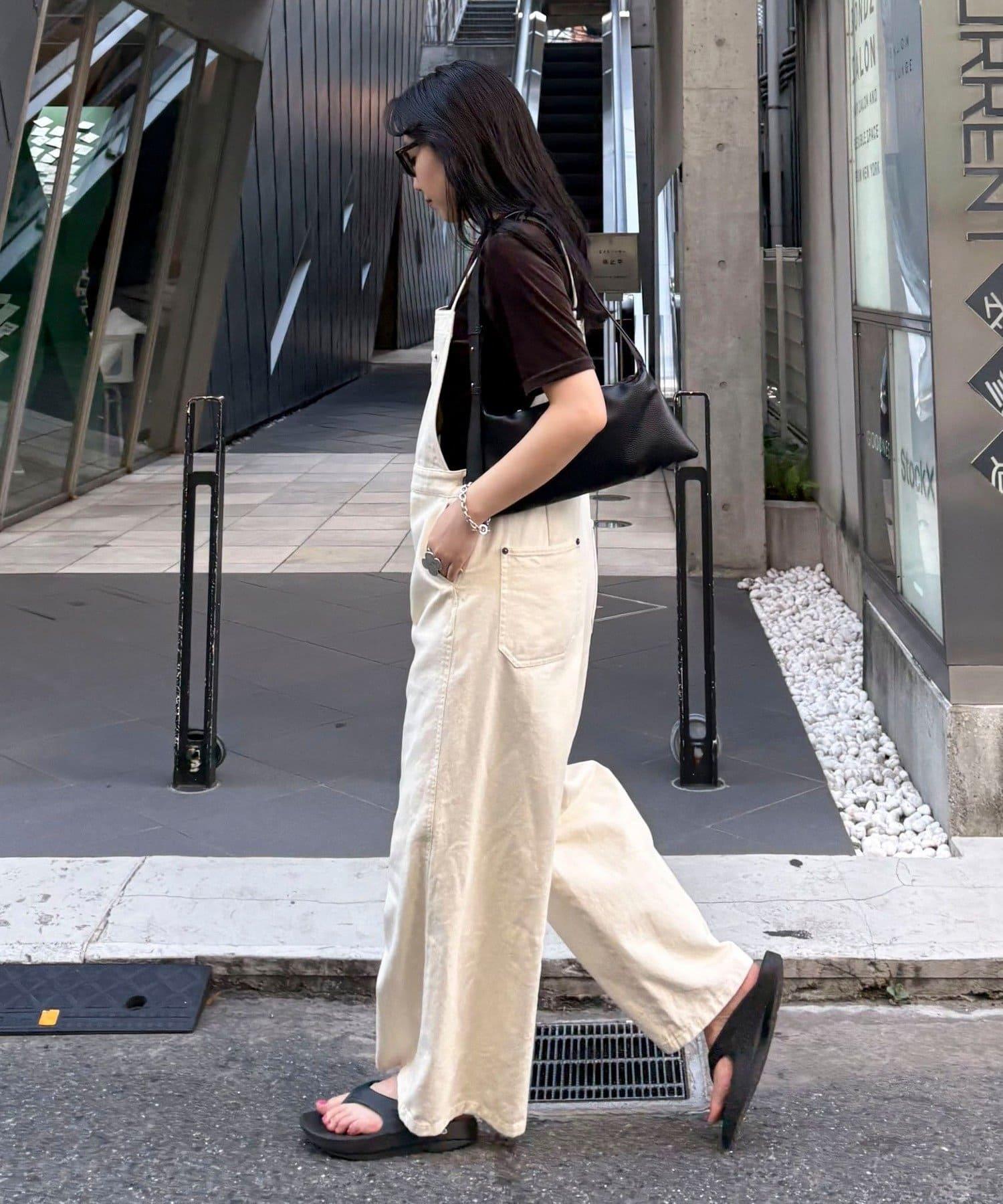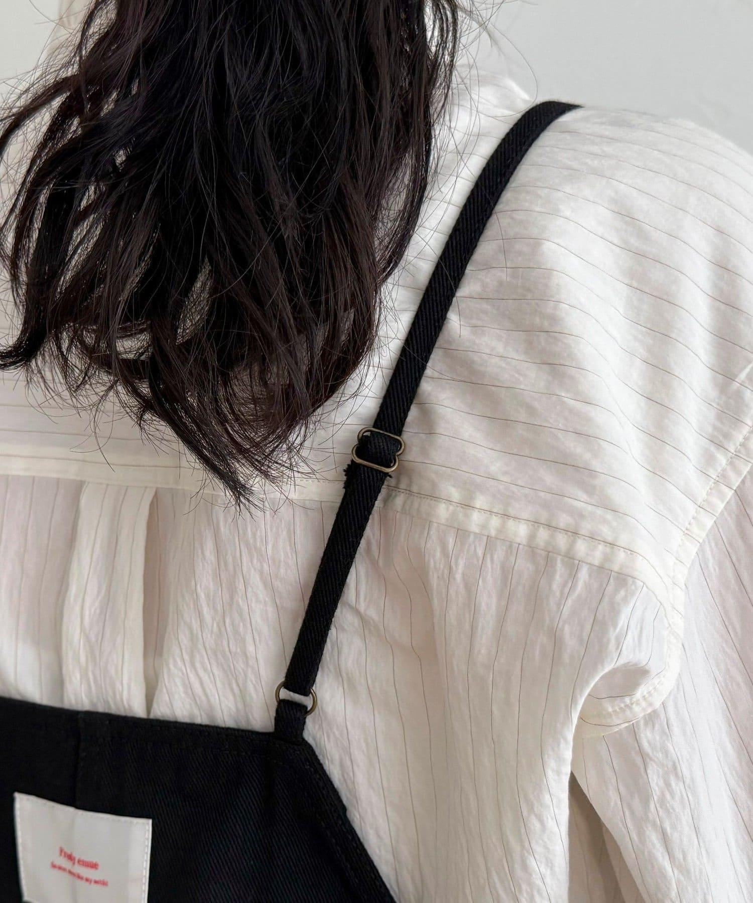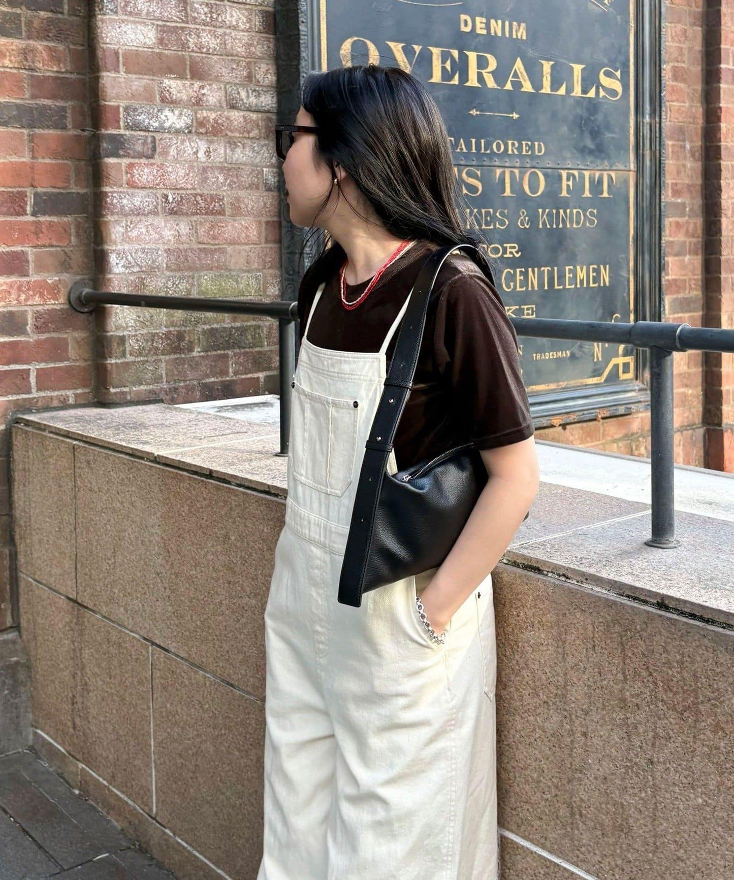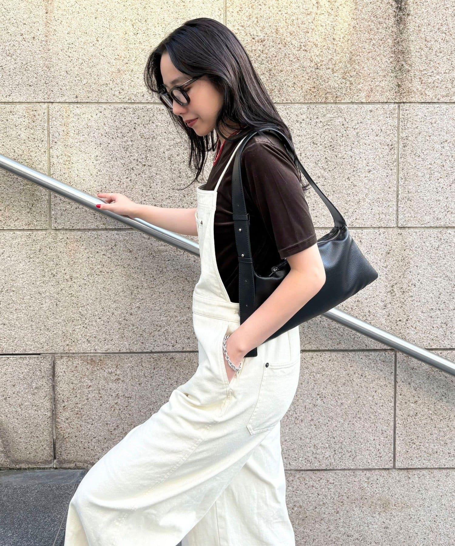 身高 156 厘米/穿 38 號:通過調節肩帶,可以根據自己的喜好調整長度,整體輪廓簡潔。與上衣搭配時,可以穿出女人味,與剪裁縫製搭配時,可以穿出休閒感。