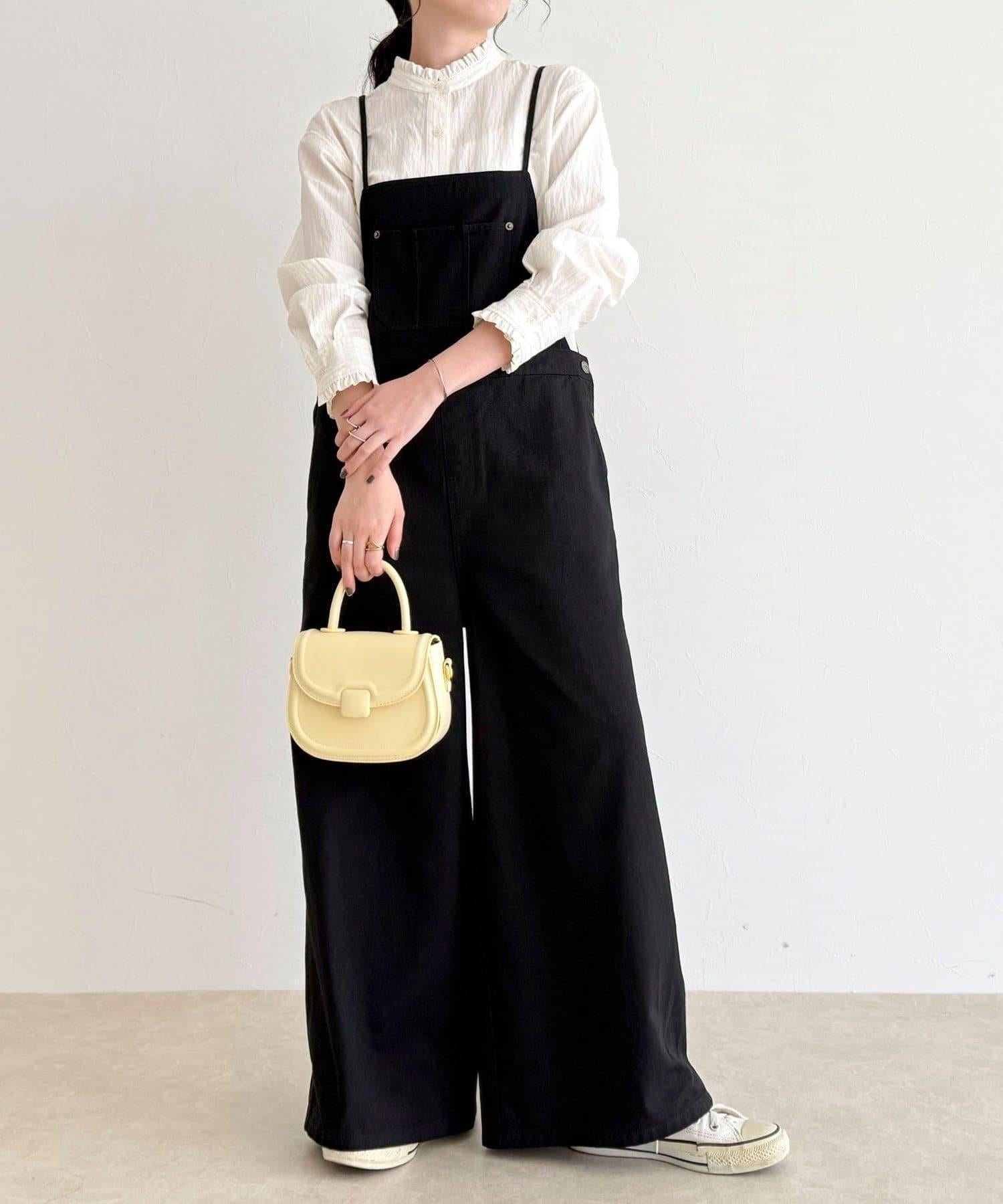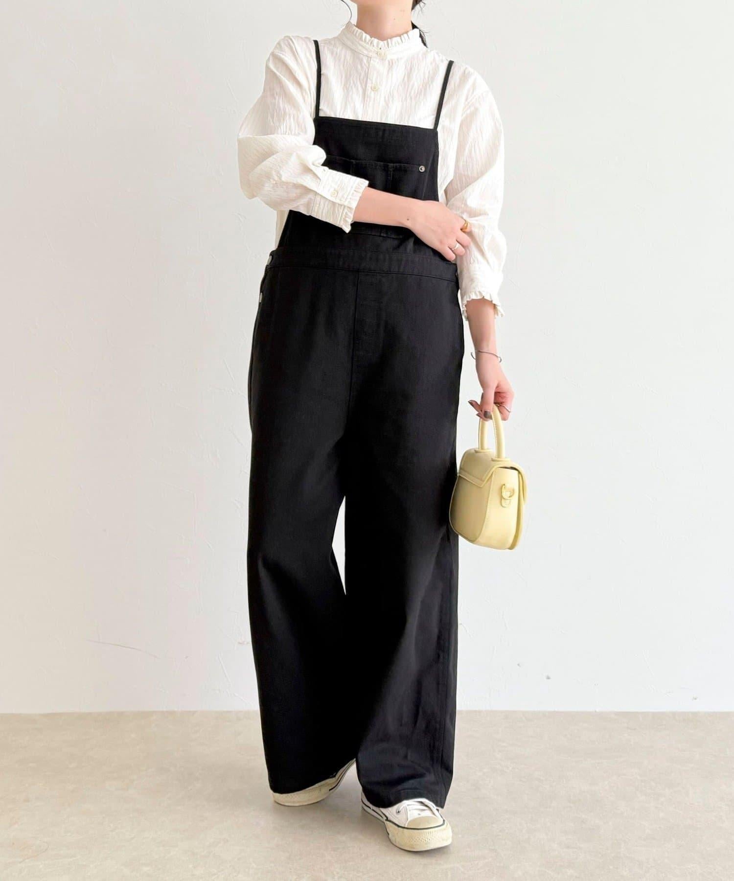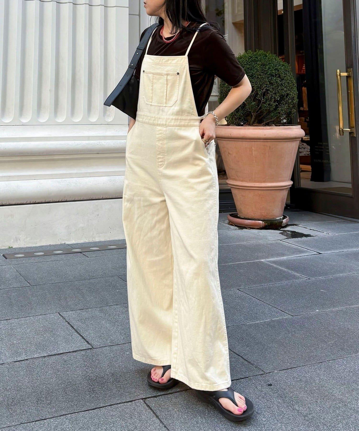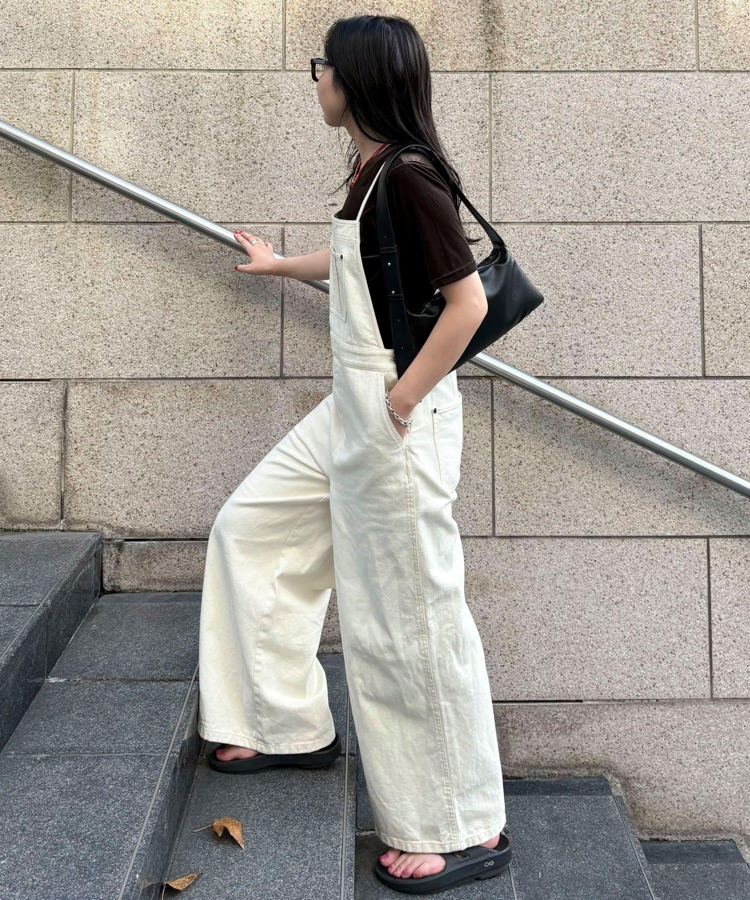 身高 156 厘米/穿 38 號:通過調節肩帶,可以根據自己的喜好調整長度,整體輪廓簡潔。與上衣搭配時,可以穿出女人味,與剪裁縫製搭配時,可以穿出休閒感。