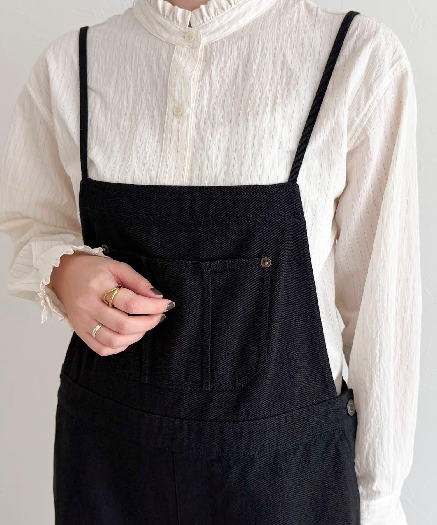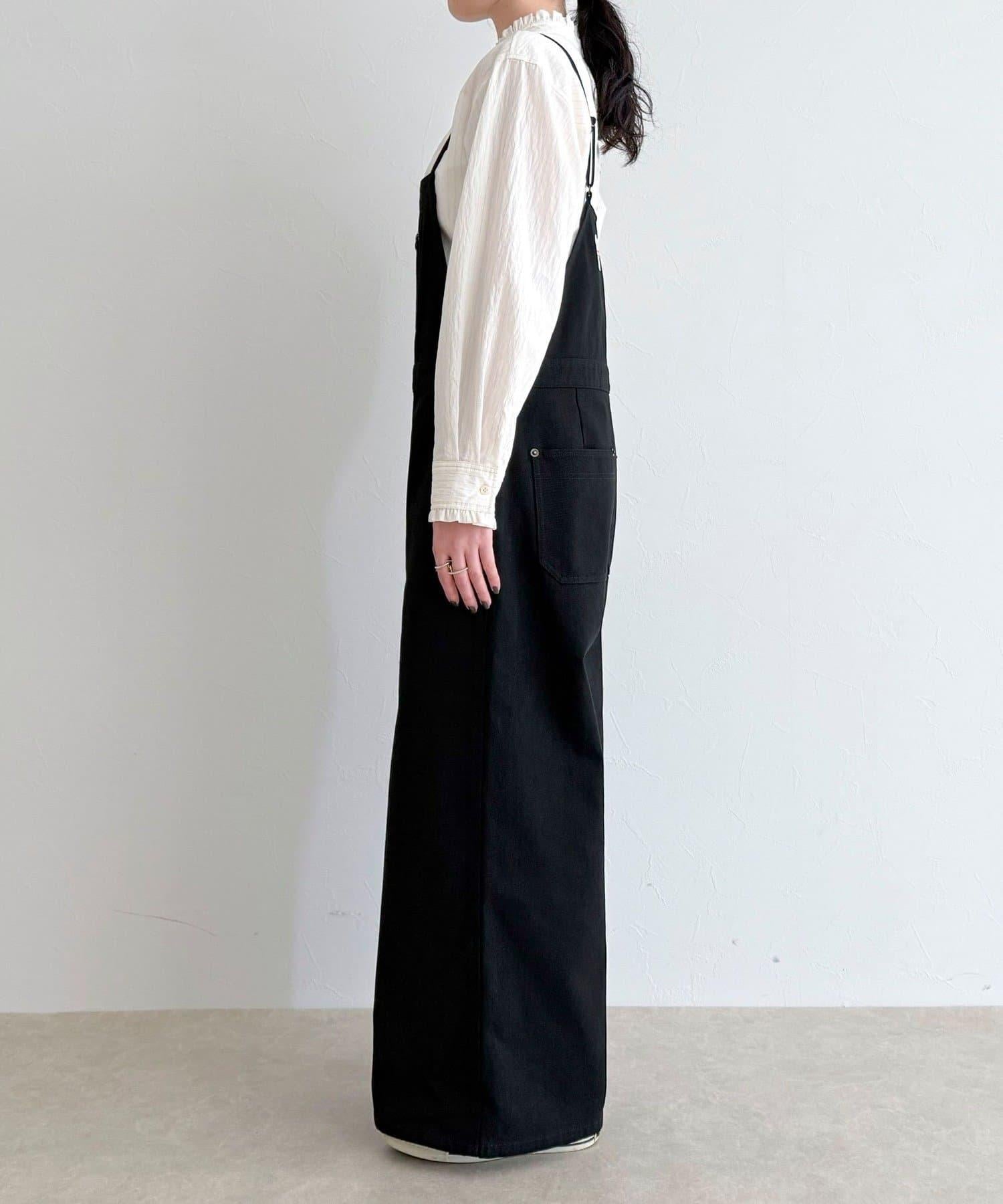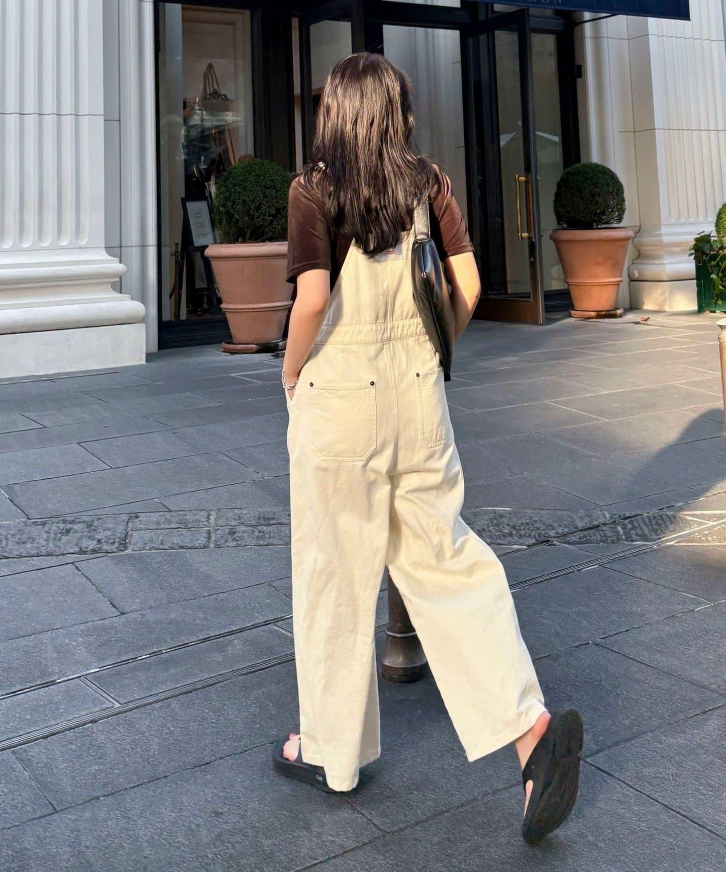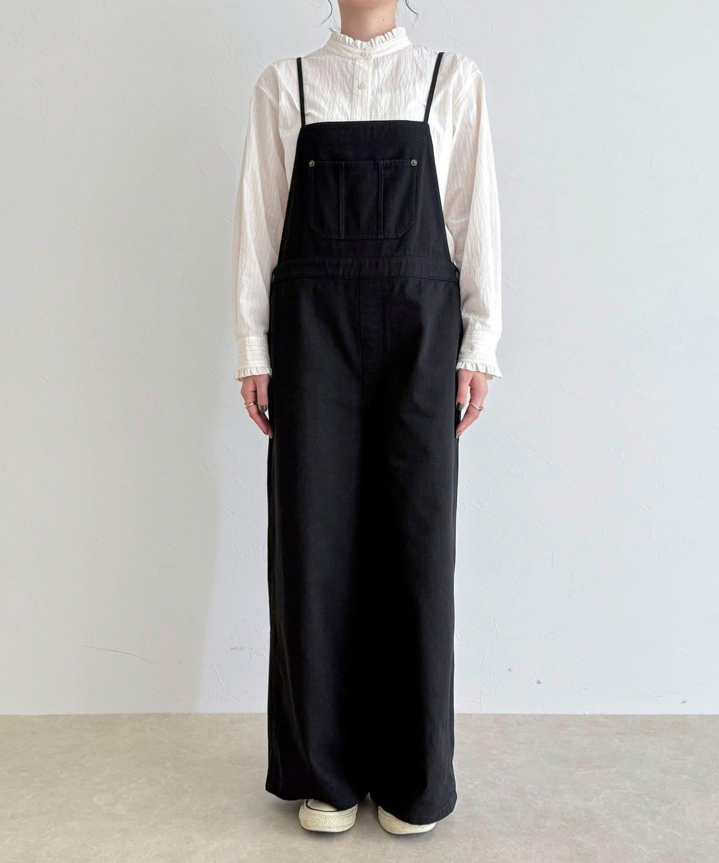 身高 156 厘米/穿 38 號:通過調節肩帶,可以根據自己的喜好調整長度,整體輪廓簡潔。與上衣搭配時,可以穿出女人味,與剪裁縫製搭配時,可以穿出休閒感。