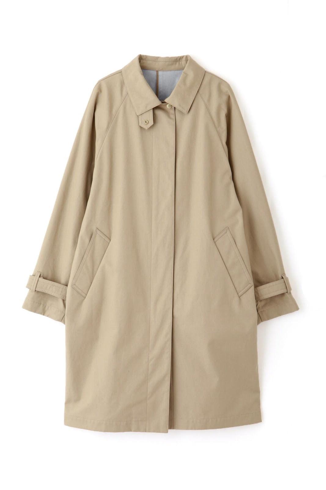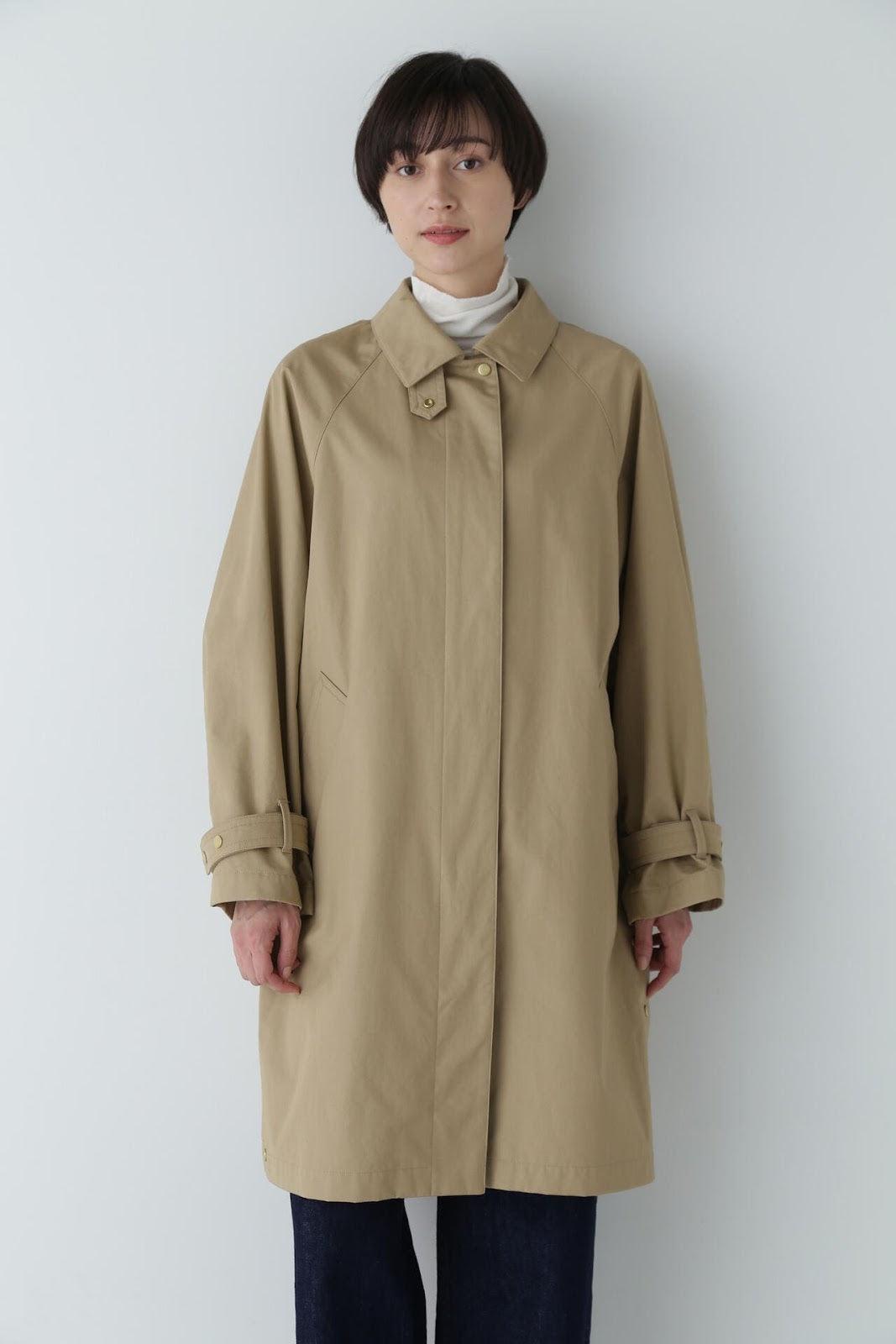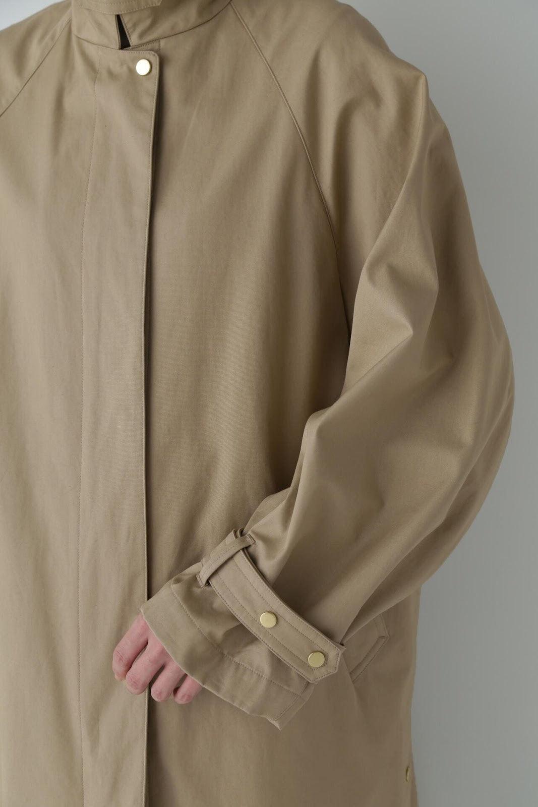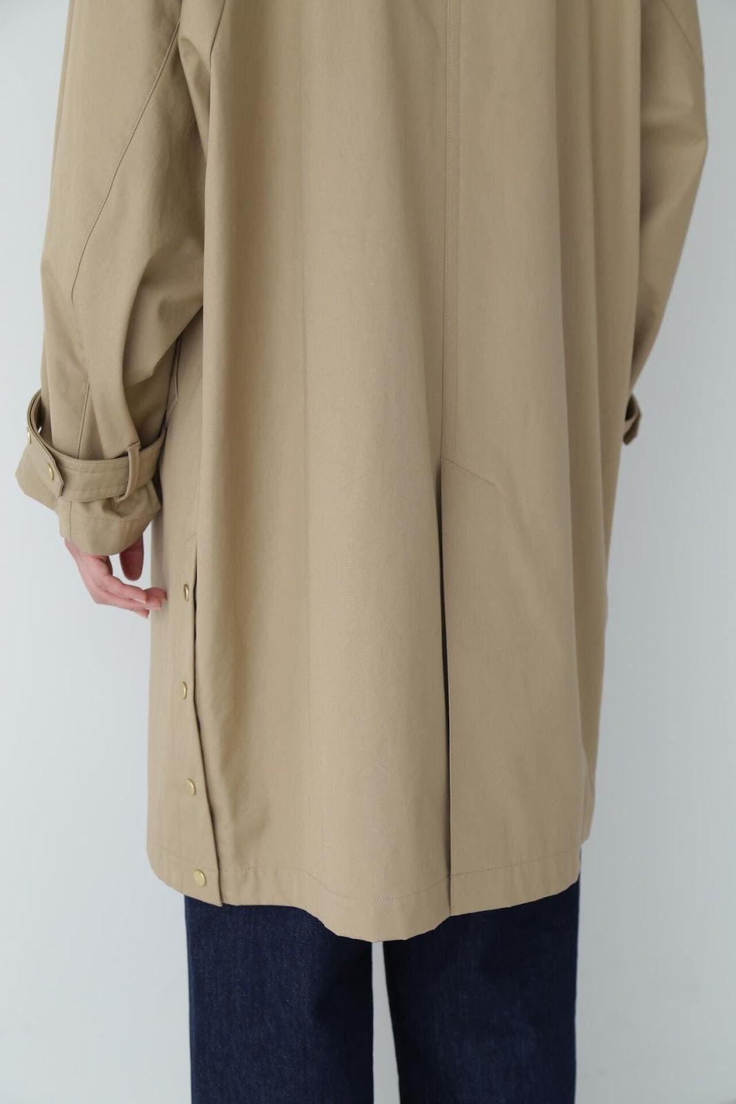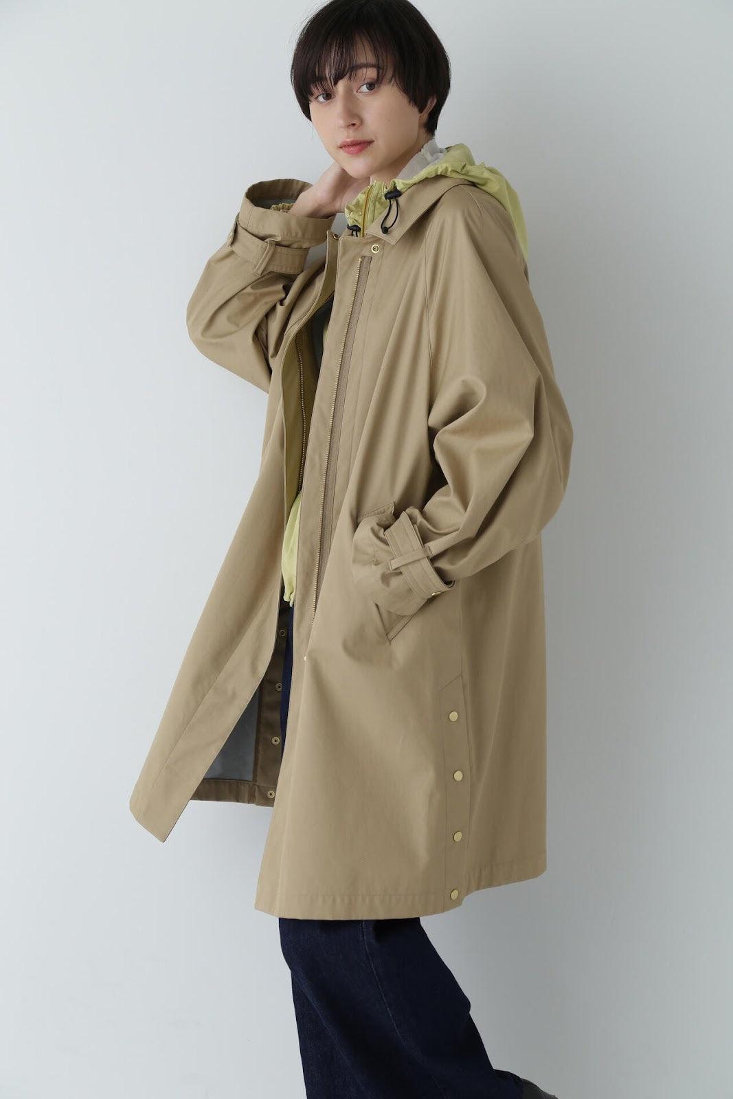 優雅的成人不鏽鋼領大衣,色彩柔和,如沐春風 [設計特色] 不鏽鋼領大衣,採用寬袖圍的插肩袖。可通過打開側面的圓點紐扣來安排開衩。後領的迷你腰帶可以收起,將其變為立領。正面由純棉寬布製成,背面由粘合材料與易穿的純棉針織布層壓而成。針織面料粘合在反面,以減少反彈。大衣的尺寸可以搭配過大的上衣,因此很容易與寒冷季節的冬季針織衫搭配穿著。同時還開發了連帽外套,如anorak blouson。
