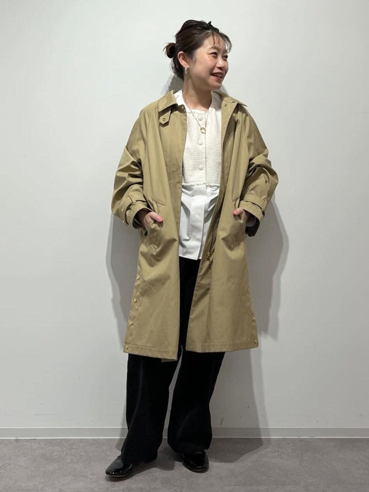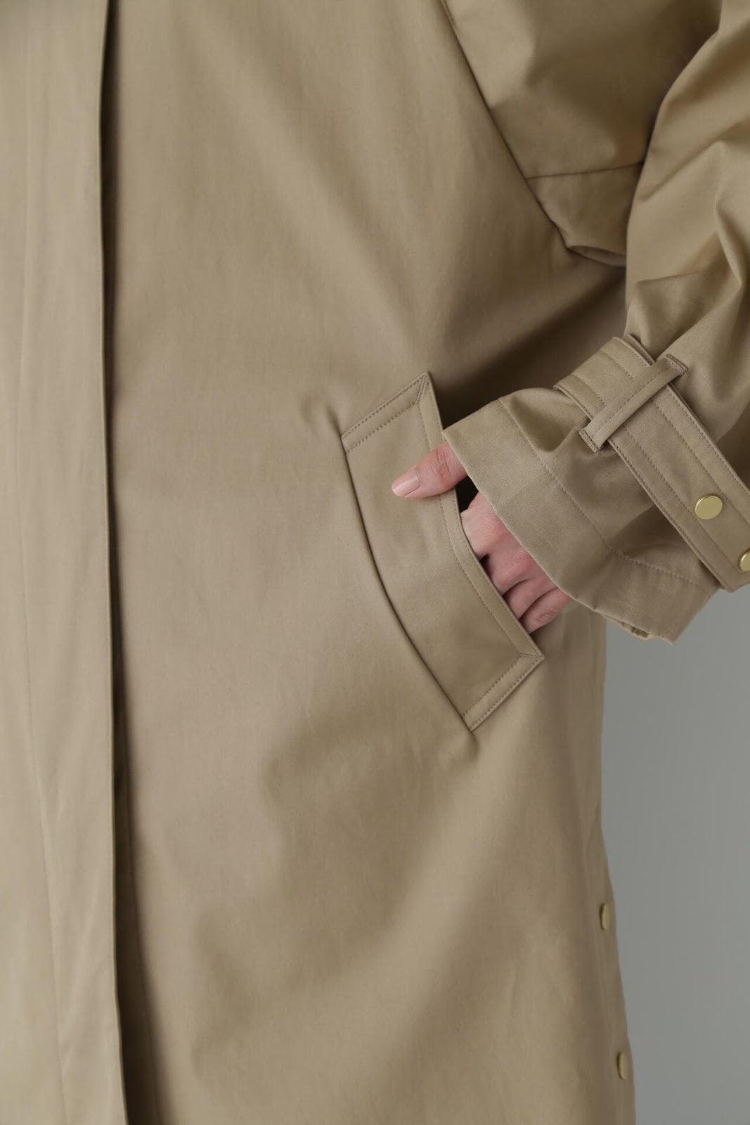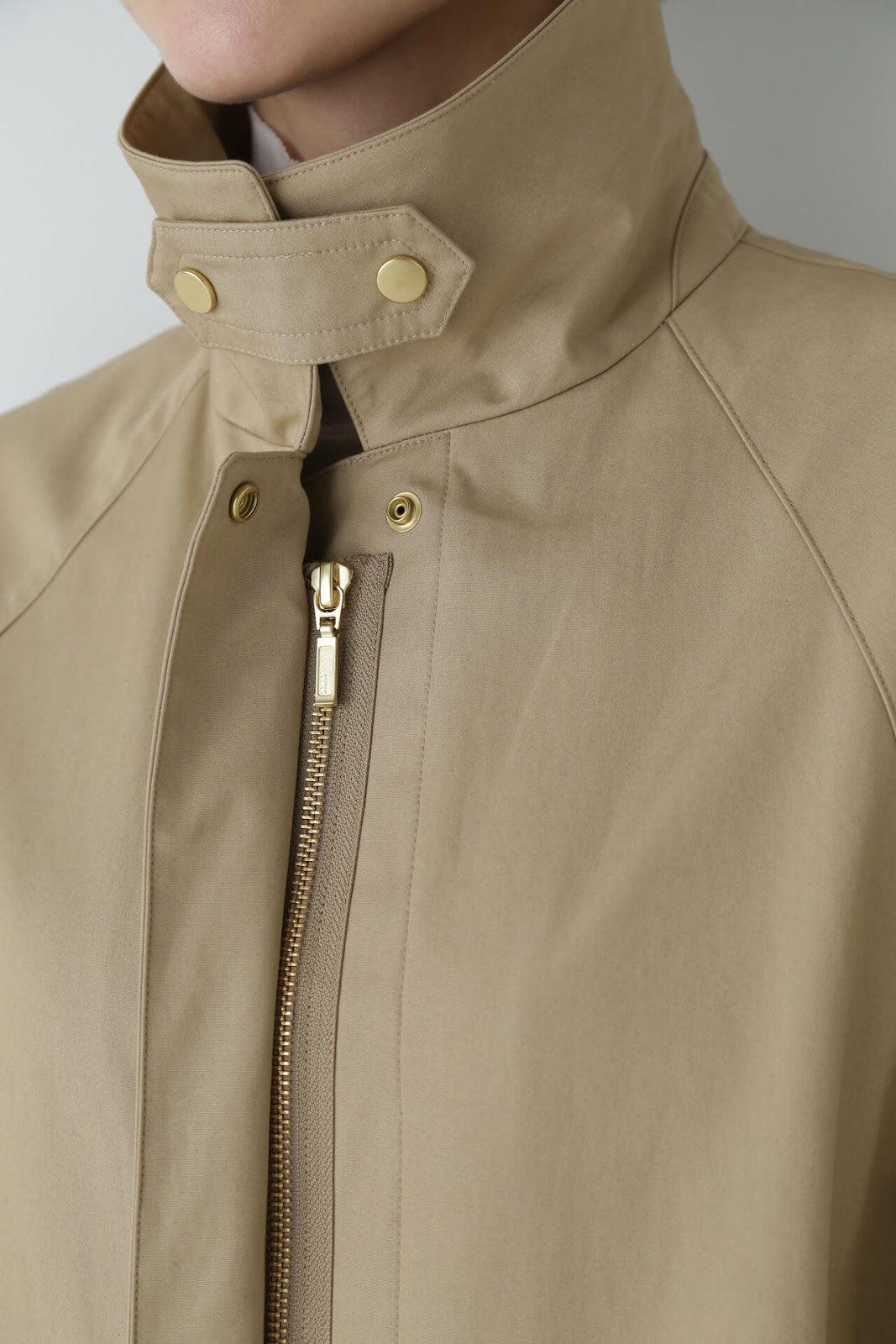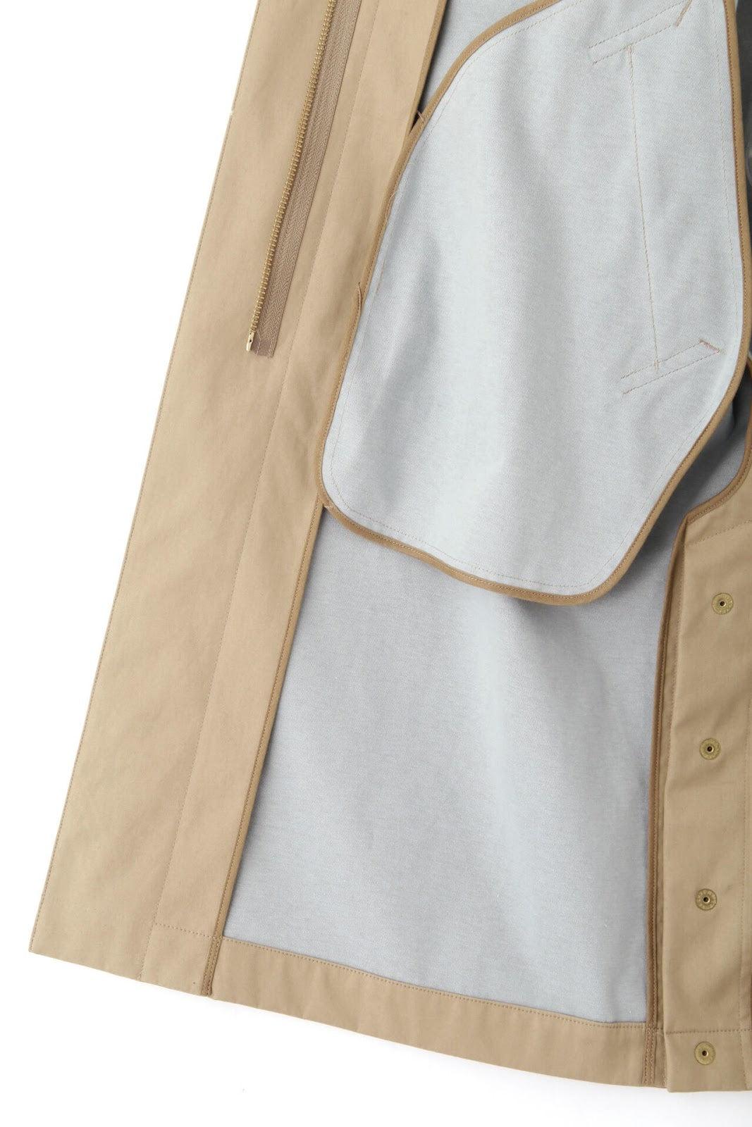 優雅的成人不鏽鋼領大衣,色彩柔和,如沐春風 [設計特色] 不鏽鋼領大衣,採用寬袖圍的插肩袖。可通過打開側面的圓點紐扣來安排開衩。後領的迷你腰帶可以收起,將其變為立領。正面由純棉寬布製成,背面由粘合材料與易穿的純棉針織布層壓而成。針織面料粘合在反面,以減少反彈。大衣的尺寸可以搭配過大的上衣,因此很容易與寒冷季節的冬季針織衫搭配穿著。同時還開發了連帽外套,如anorak blouson。