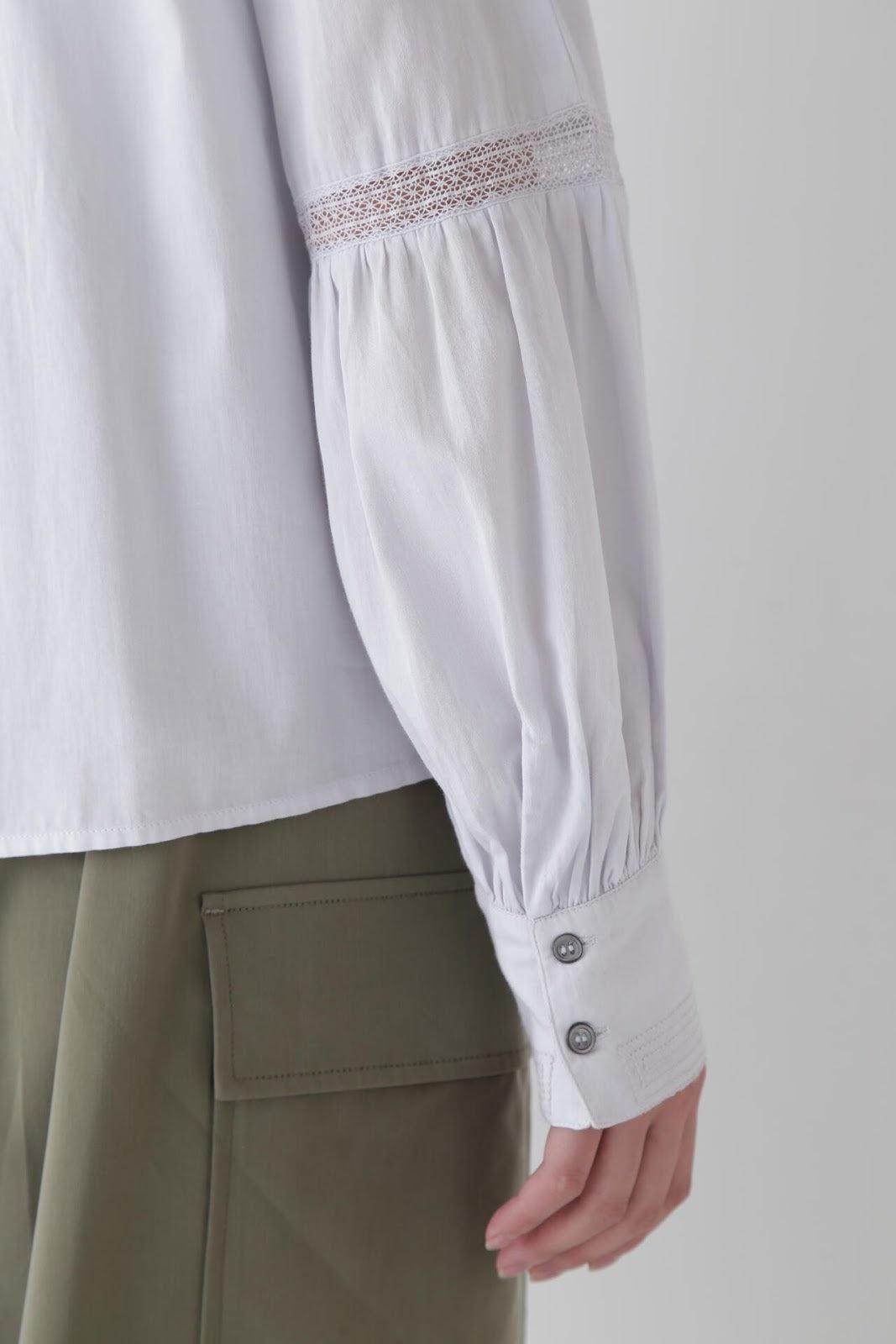 為你的造型增添時尚感的船長襯衫上衣 [設計特色] 這款船長襯衫上衣充滿了印度製造的細節,如精緻的扭轉花邊和縫線刺繡的運用。上衣採用棉緞製成,質地柔軟,光澤度適中,具有優雅自然的印度風情。推薦搭配:休閒上衣,可搭配多種下裝。自然的質地便於日常穿著,與牛仔褲也很搭。