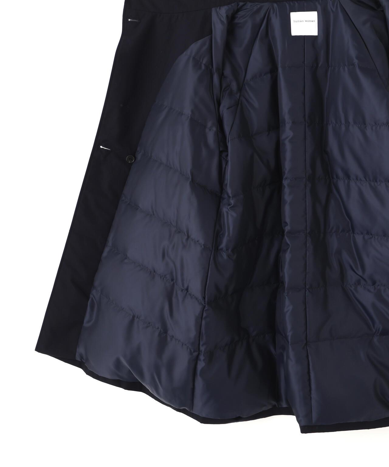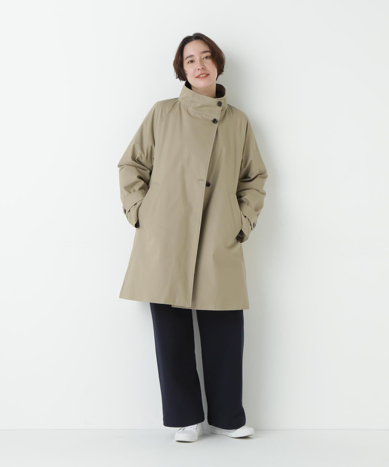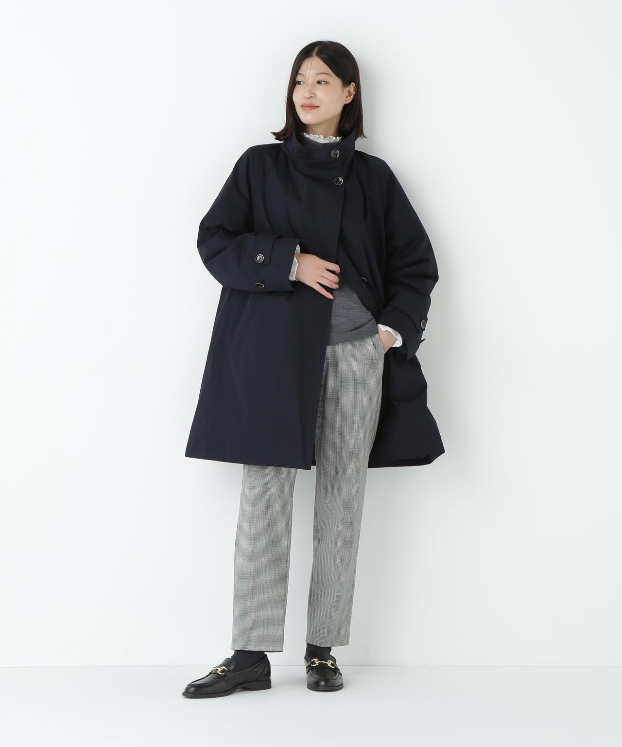 適用於多種場合的優雅立領大衣 [設計特色] 本季流行的棉質嘎巴羽絨大衣又回來了。立領設計給人一種簡潔的印象,這也是今年的典型設計。類似風衣的傘形軛也是設計要點之一。輕盈的羽絨也是一個亮點。面料採用緊密紗線,密織 Gabba,並經過防水處理。推薦座標:較厚的衣臂使這款外衣易於穿在厚針織衫和上衣外面。它可以在各種場合穿脫,非常適合日常風格。您還可以通過關閉紐扣來享受表情變化。
