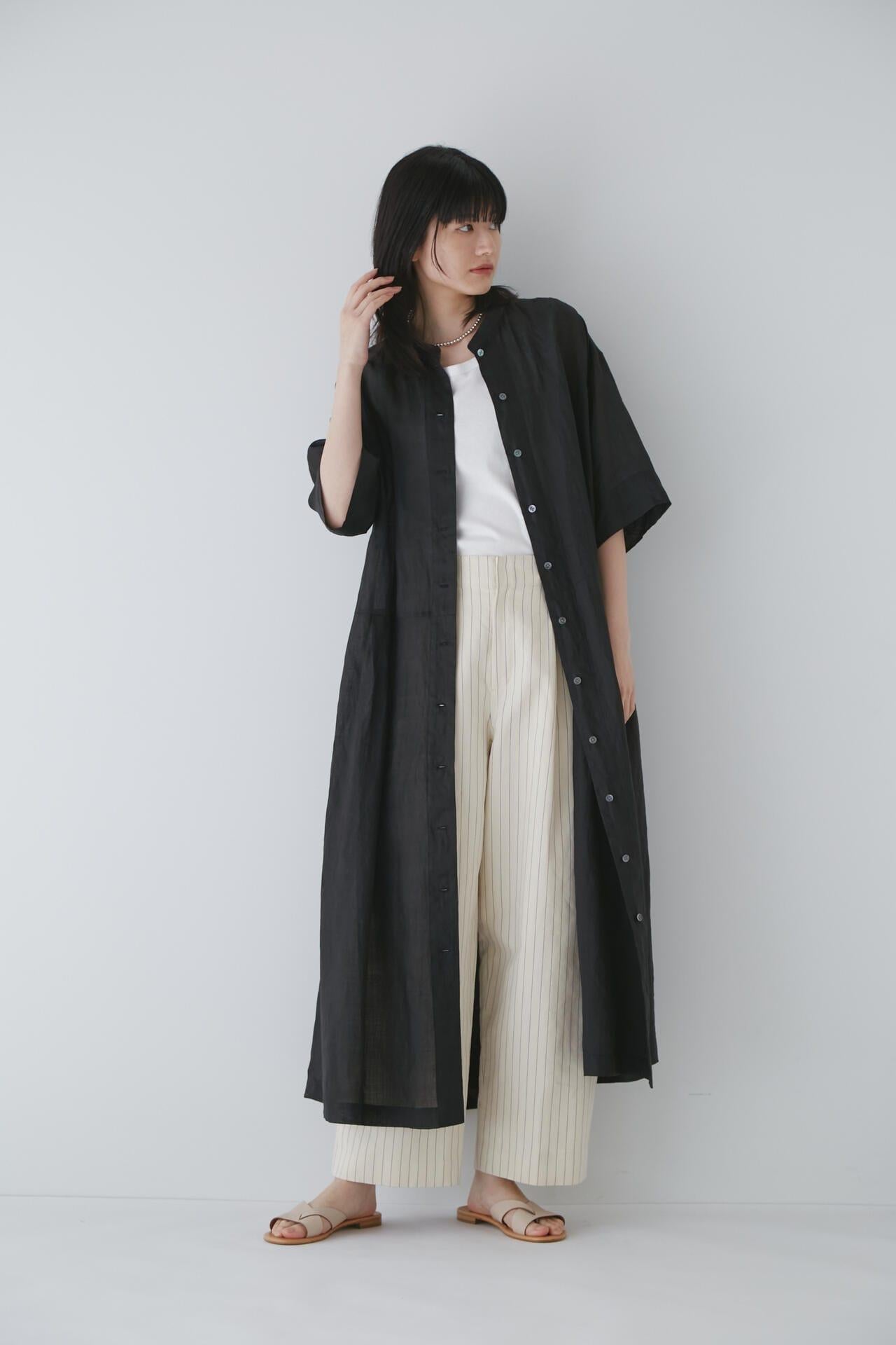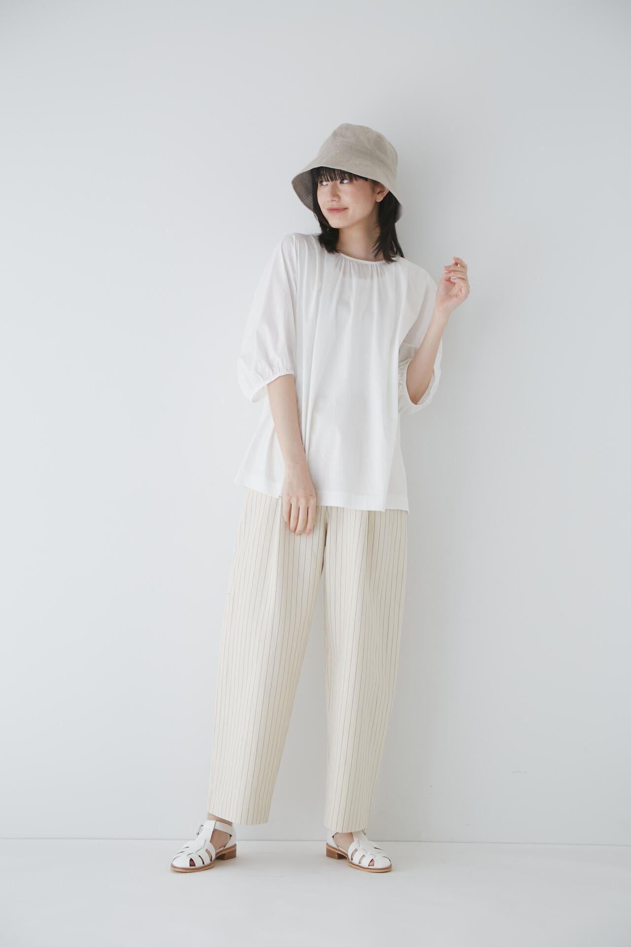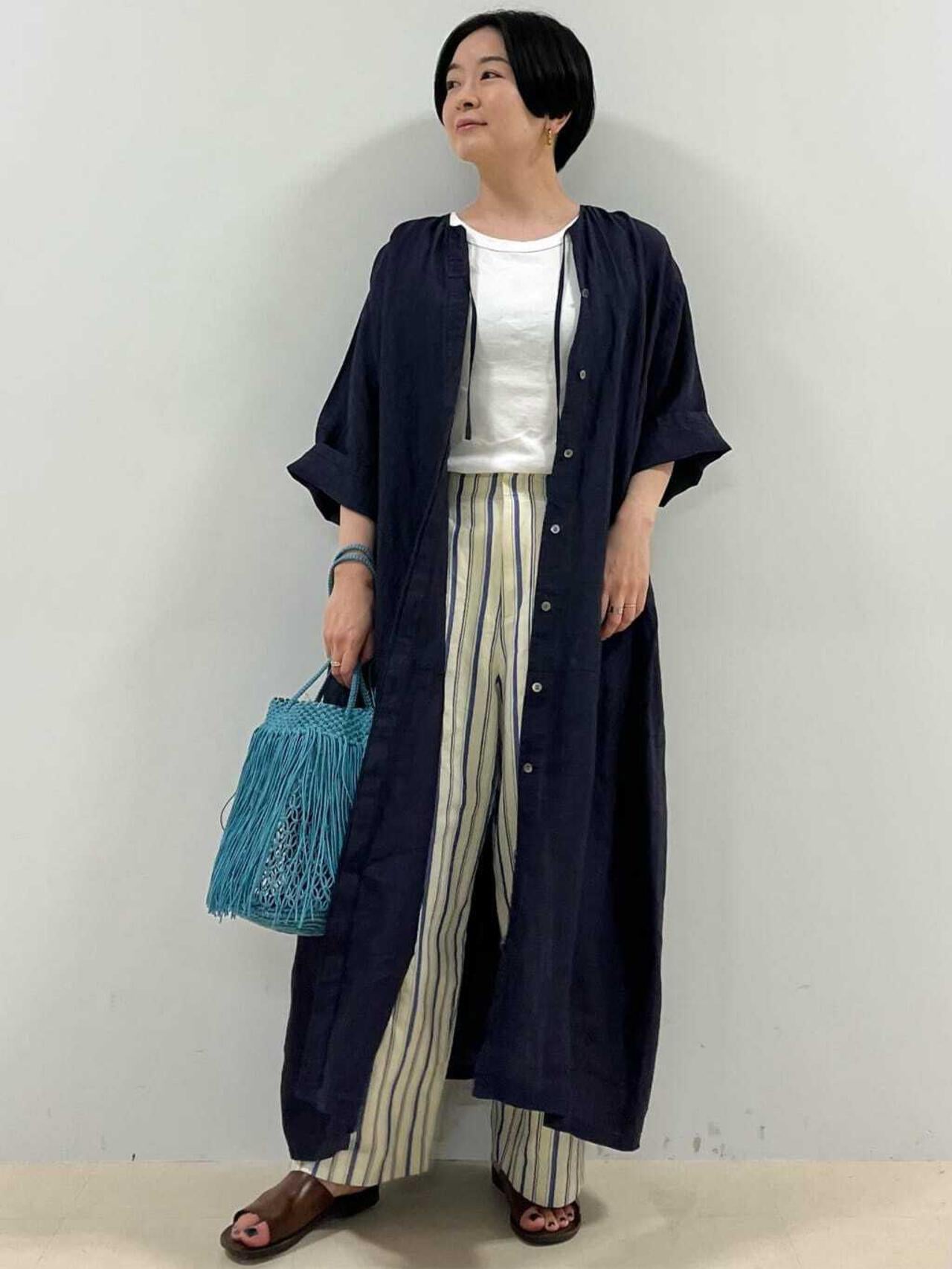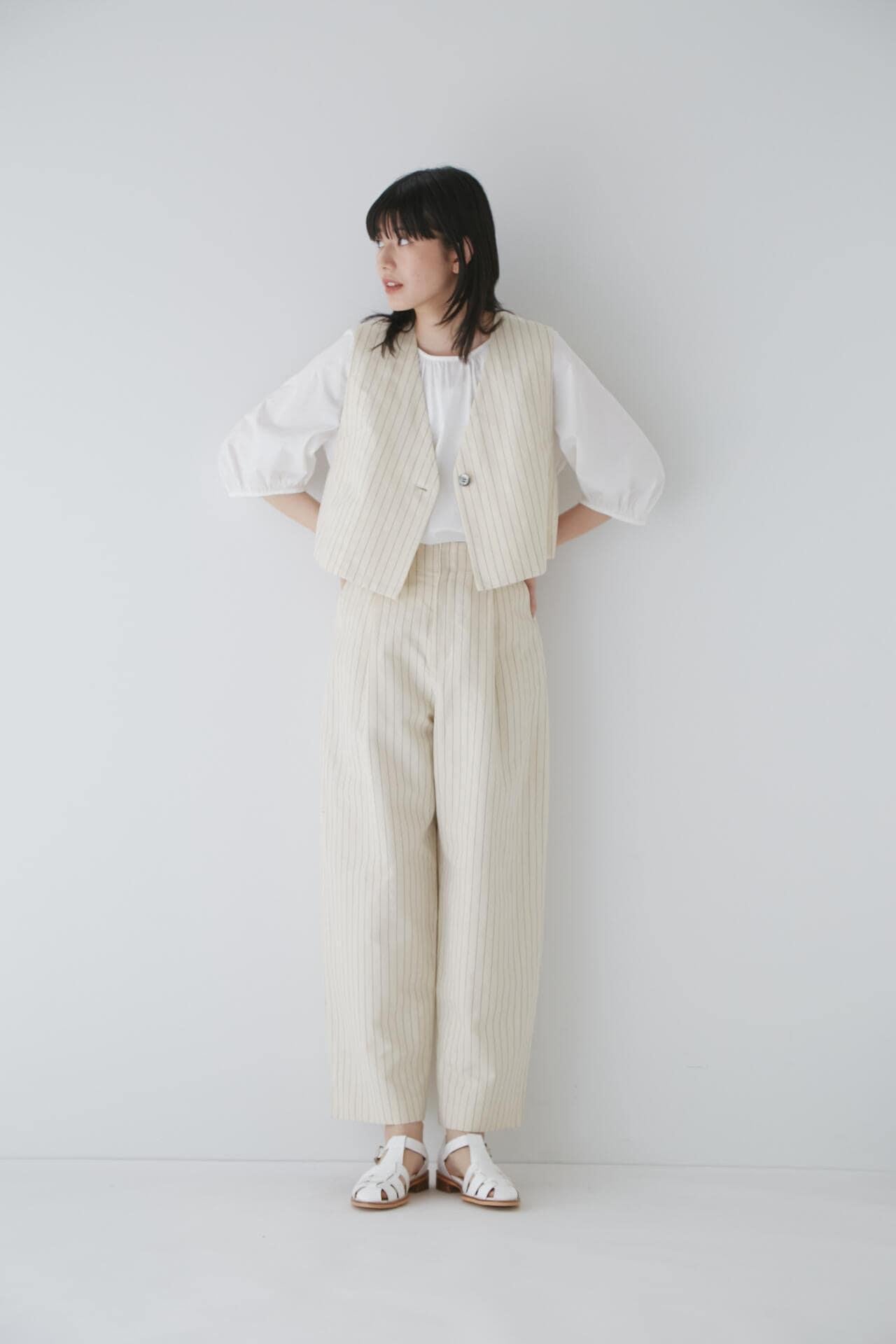 舒適的繭型廓形長褲,採用柔軟的條紋面料 [設計特色] 採用條紋面料製作的繭型廓形長褲,特別柔軟。腰後皮帶上的海洋風格繫帶是這款長褲的一大亮點,並將其整齊地延續下去。有兩種不同表現形式的顏色可供選擇:蔚藍色基底上的紫色細條紋和蔚藍色基底上的清新藍色多條紋。面料採用獨創的條紋棉麻牛面料,具有細微的柔軟感,編織和整理效果甜美。建議搭配:可與同種面料製成的夾克衫搭配,或與麻質上衣搭配,打造今年非常流行的都市風格。