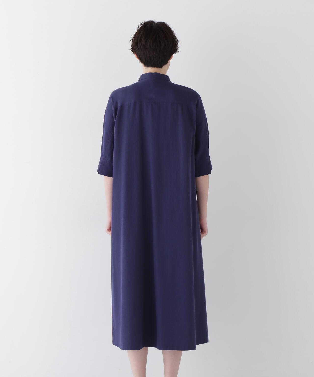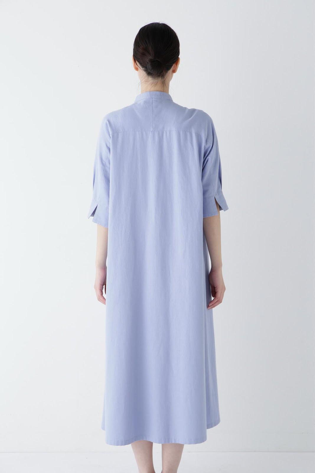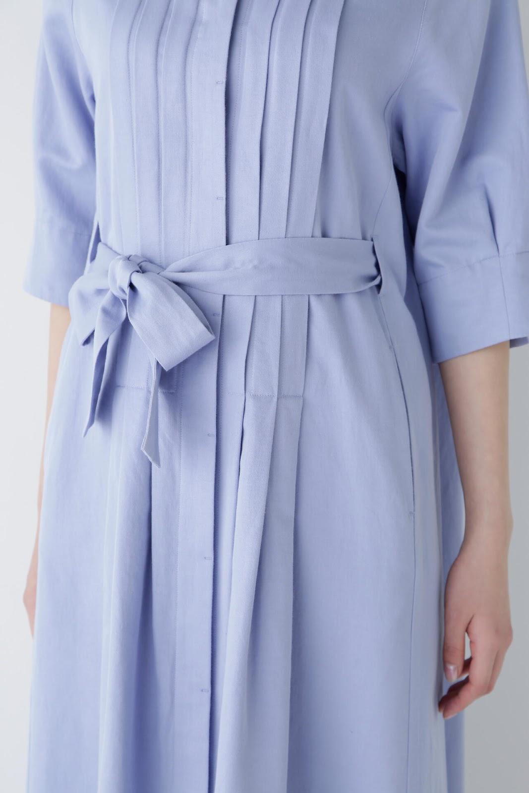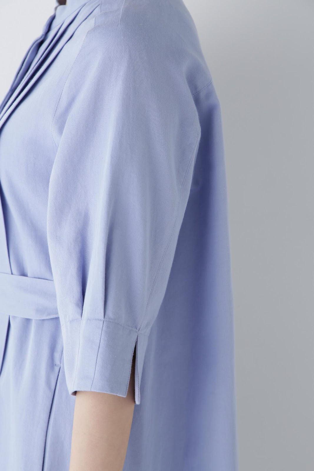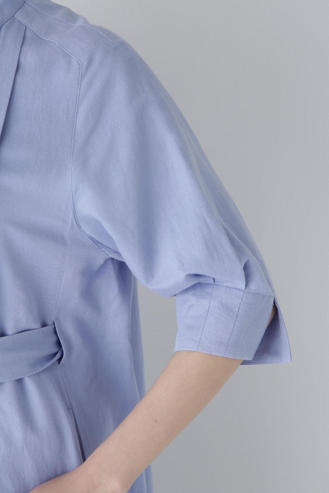 可穿可脫的帶領連衣裙 [設計特色] 這款帶領連衣裙的前襟有一個明顯的收口細節。袖子採用開衩設計,可向後翻轉。這款連衣裙採用柔軟的麻混紡細棉緞製成,既優雅又休閒。這款連衣裙既可單穿,也可作為梭織外套穿著。