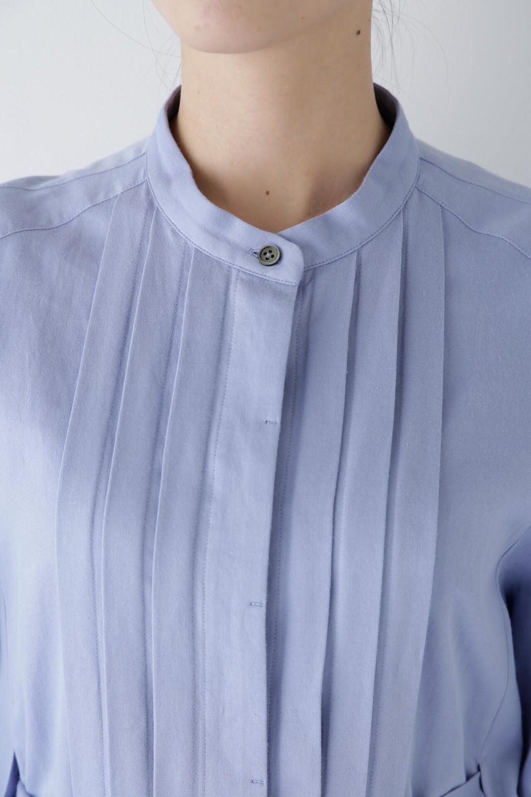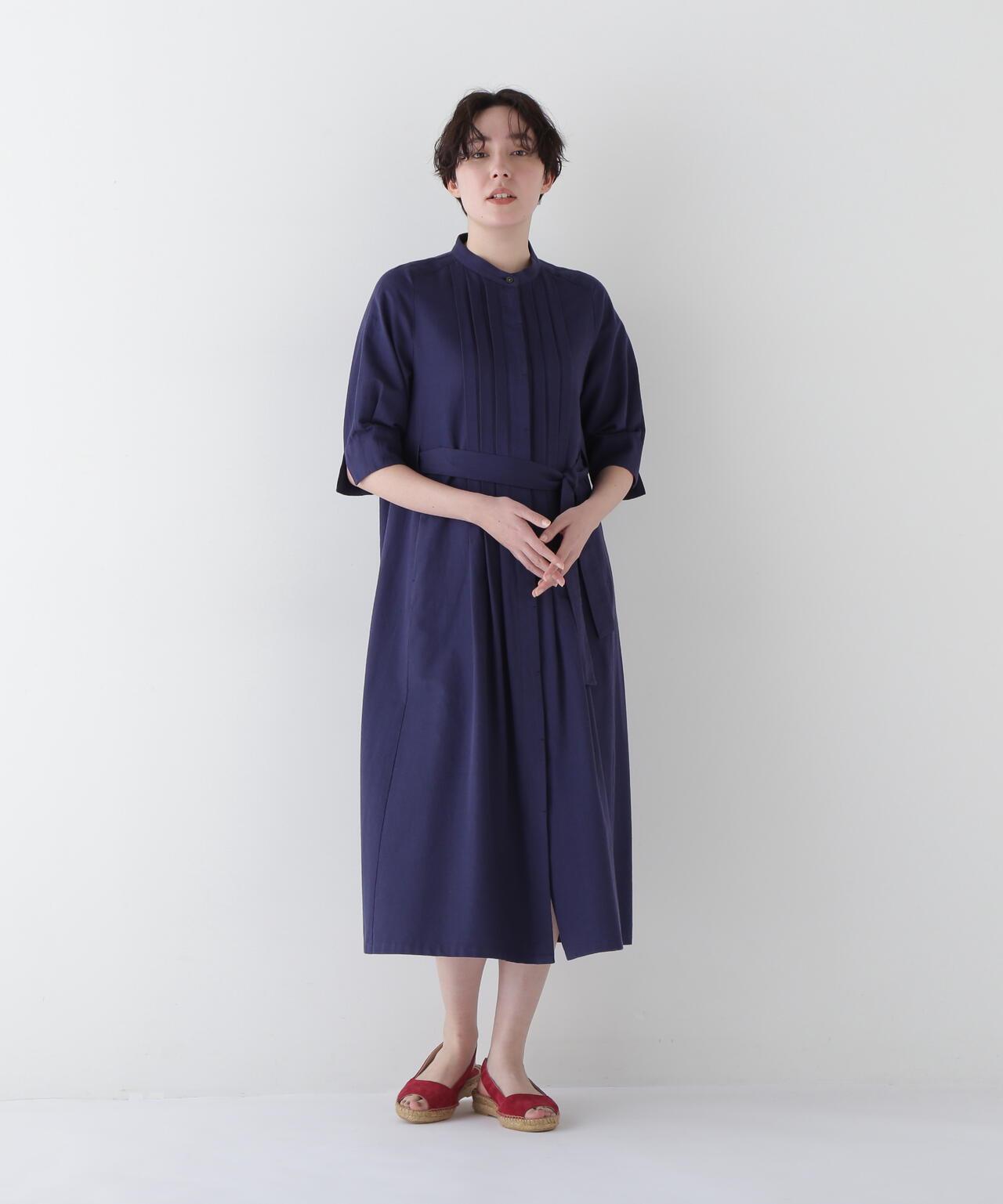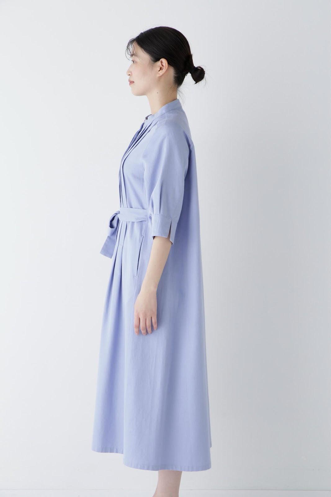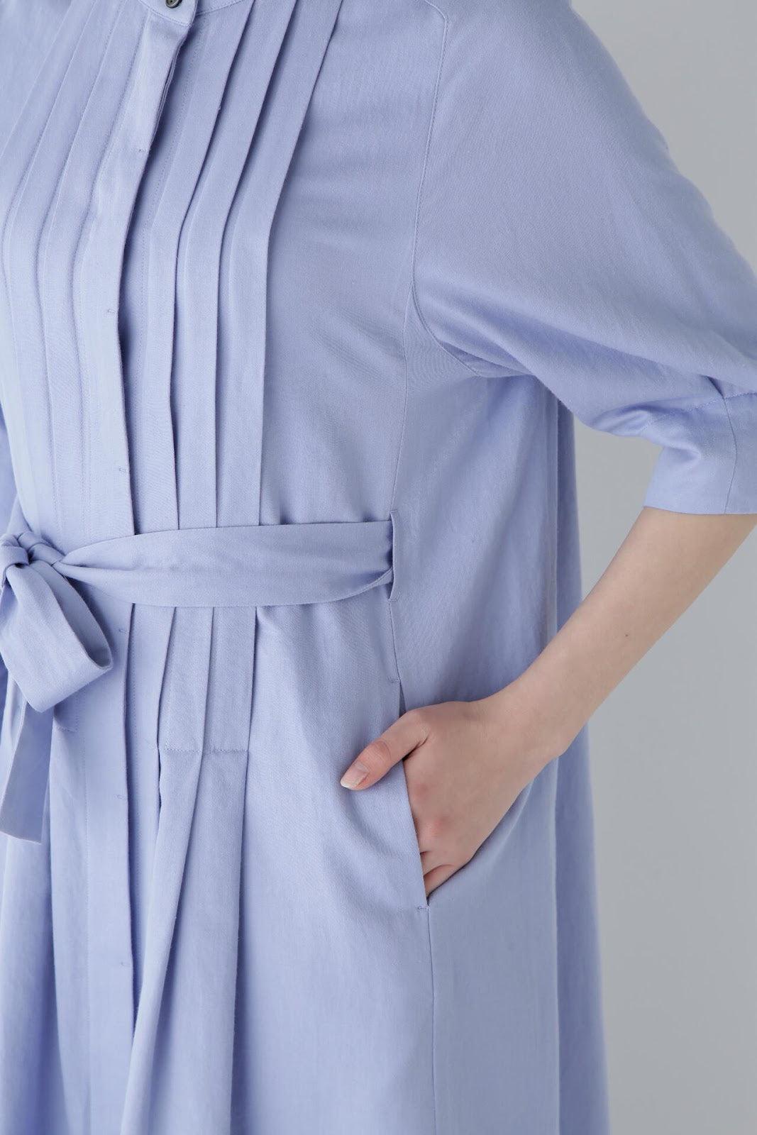 可穿可脫的帶領連衣裙 [設計特色] 這款帶領連衣裙的前襟有一個明顯的收口細節。袖子採用開衩設計,可向後翻轉。這款連衣裙採用柔軟的麻混紡細棉緞製成,既優雅又休閒。這款連衣裙既可單穿,也可作為梭織外套穿著。