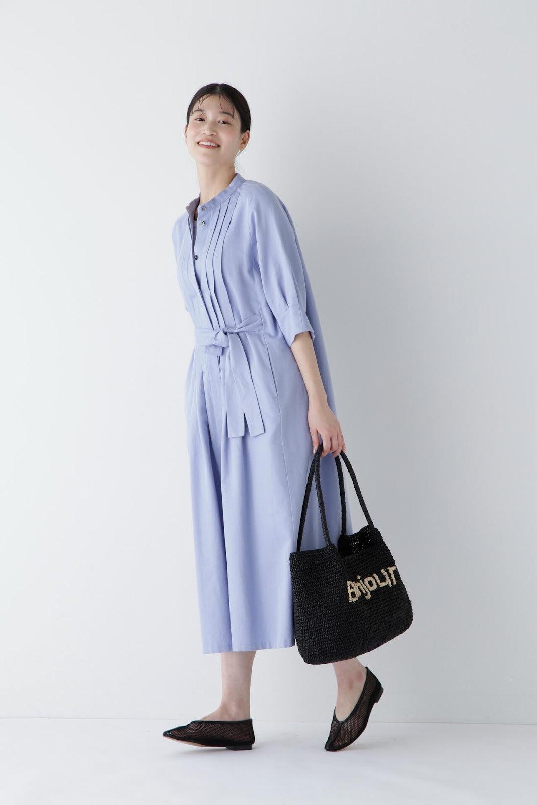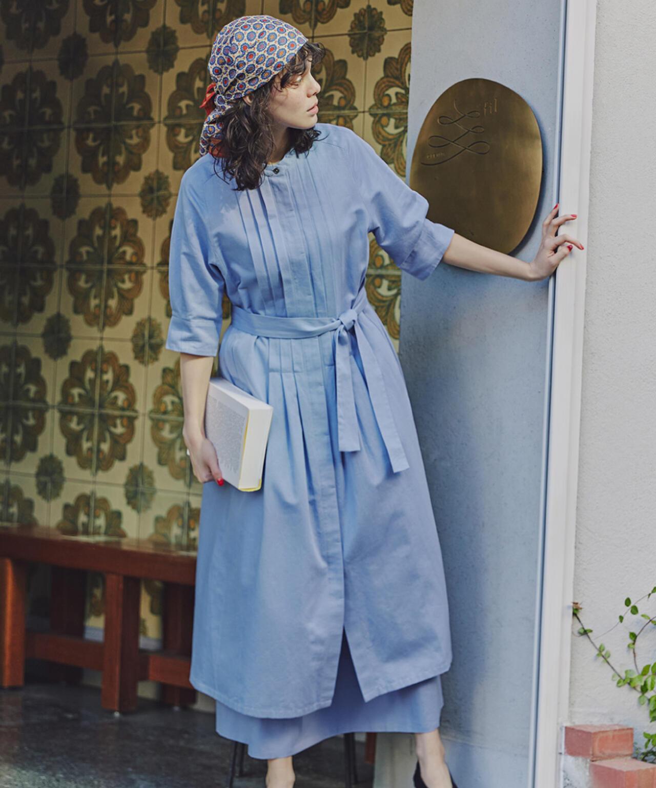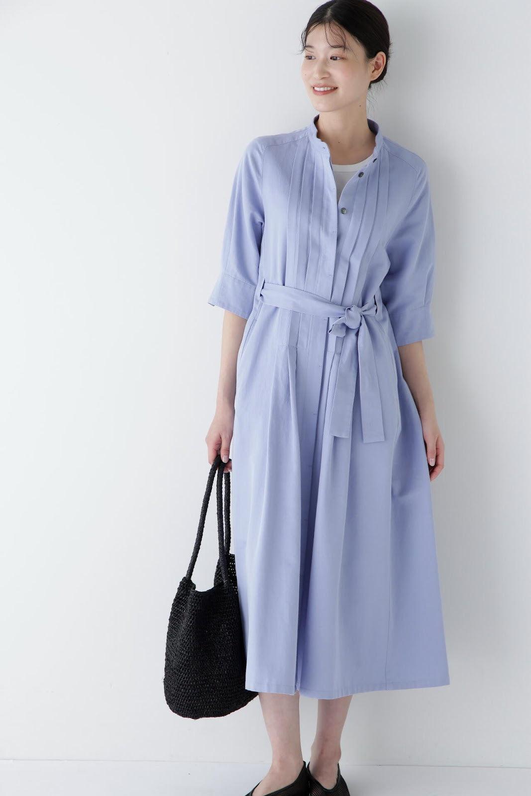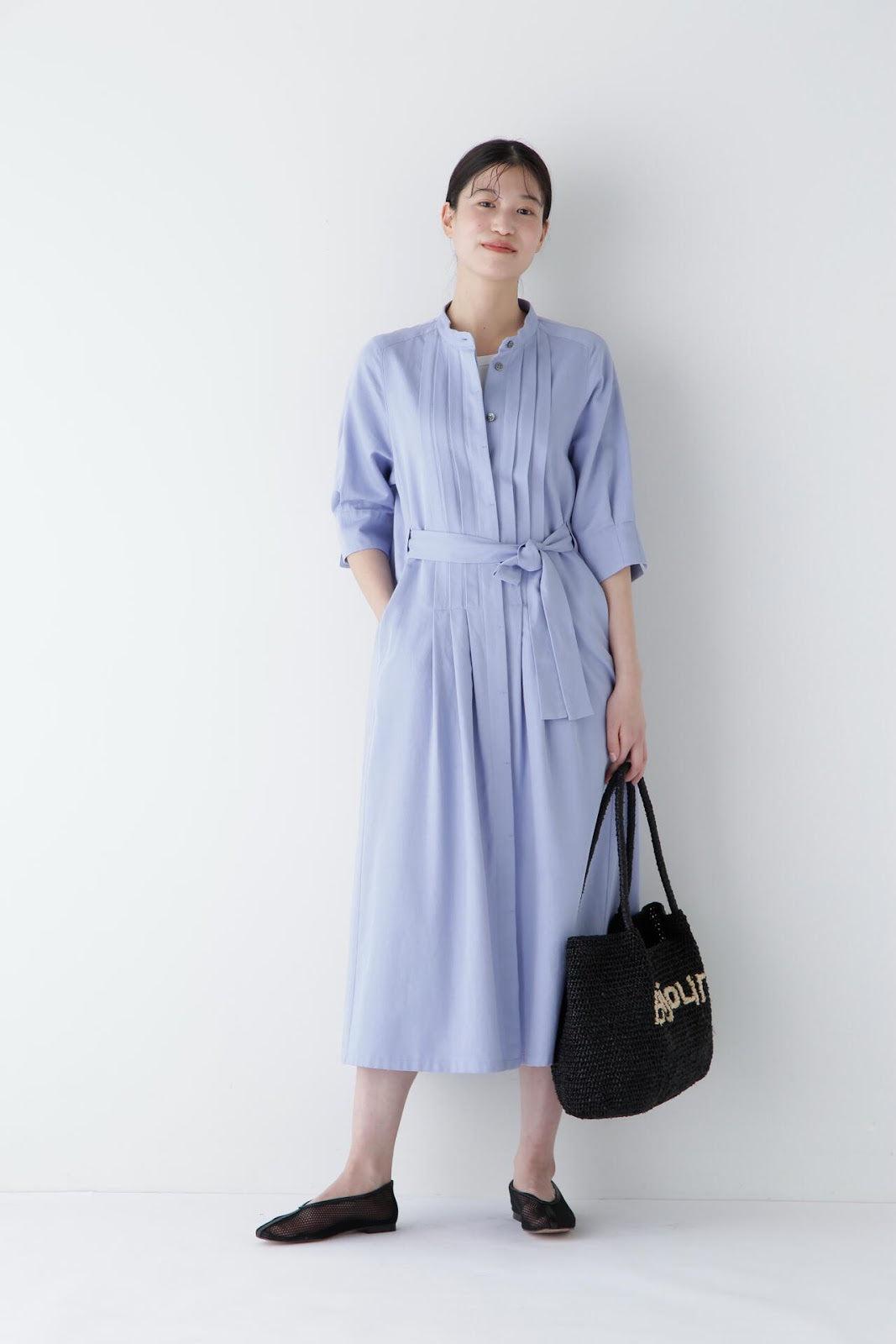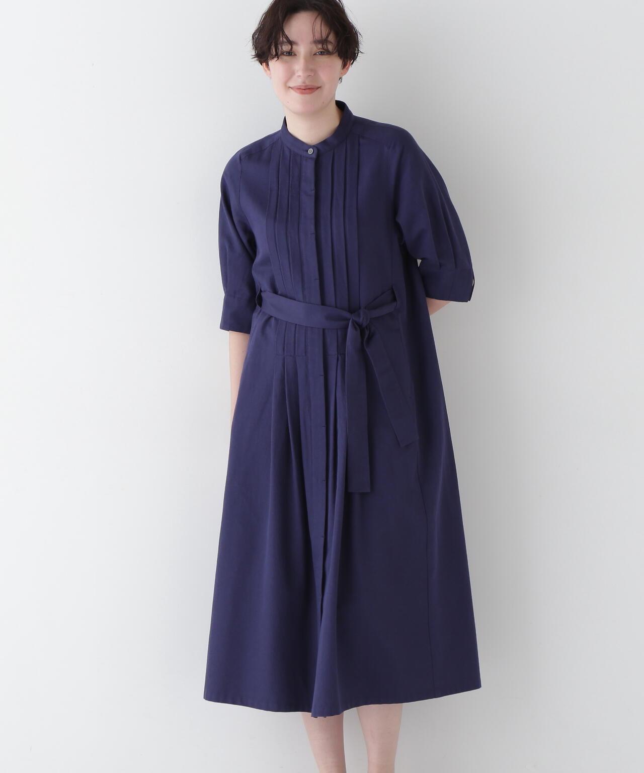 可穿可脫的帶領連衣裙 [設計特色] 這款帶領連衣裙的前襟有一個明顯的收口細節。袖子採用開衩設計,可向後翻轉。這款連衣裙採用柔軟的麻混紡細棉緞製成,既優雅又休閒。這款連衣裙既可單穿,也可作為梭織外套穿著。