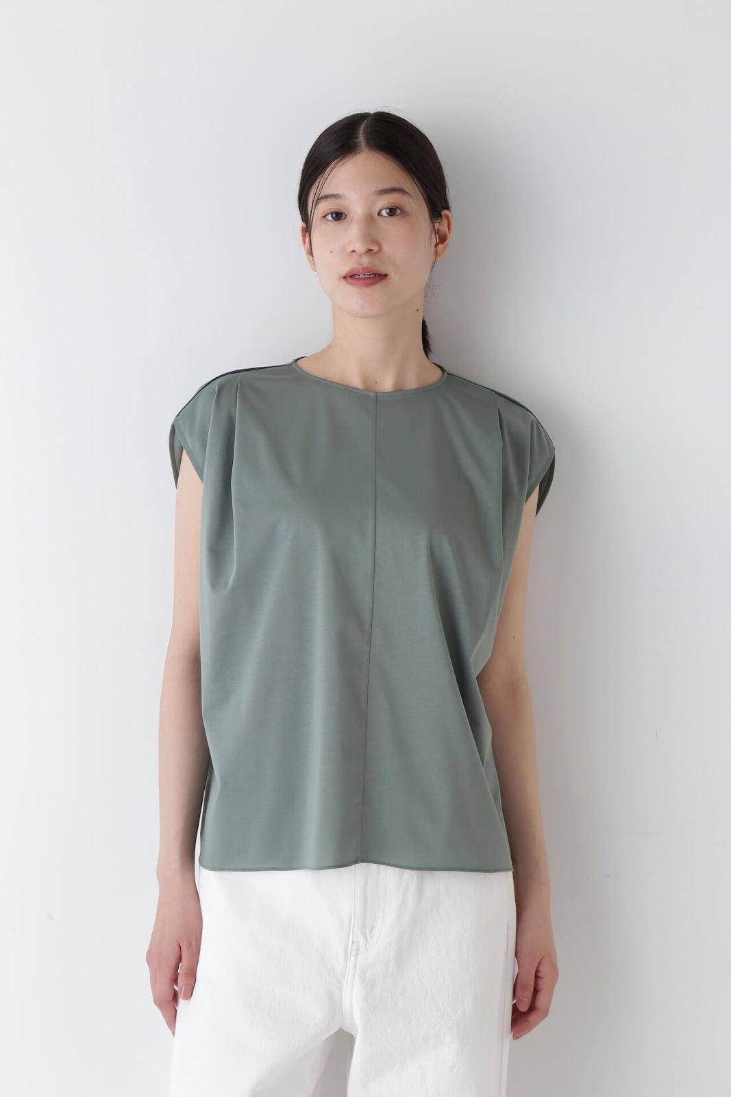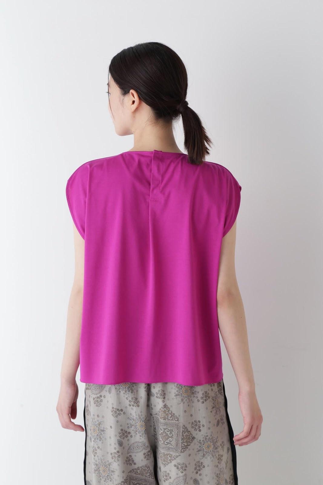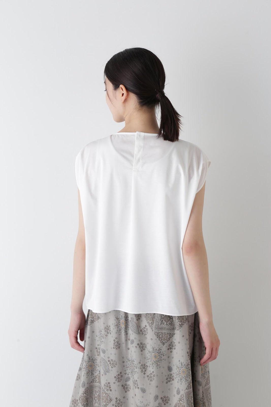 剪裁與縫製兼具女性魅力與舒適感 [設計要點] 這款剪裁與縫製相結合的套頭衫,深法式袖子,中間剪裁的多爾曼袖子看起來很細緻。面料採用全梭織工藝,乾淨利落。面料採用針織面料,既有梭織面料的手感,又保留了裁剪縫製服裝的舒適質感。該產品有三種顏色可供選擇:純白色、點彩粉色和淺綠色。裁剪縫製的面料給人留下了美好的印象,因此建議用於辦公室場景。此外,它也是搭配圖案或彩色下裝的完美單品,例如同期推出的摩洛哥印花長褲。