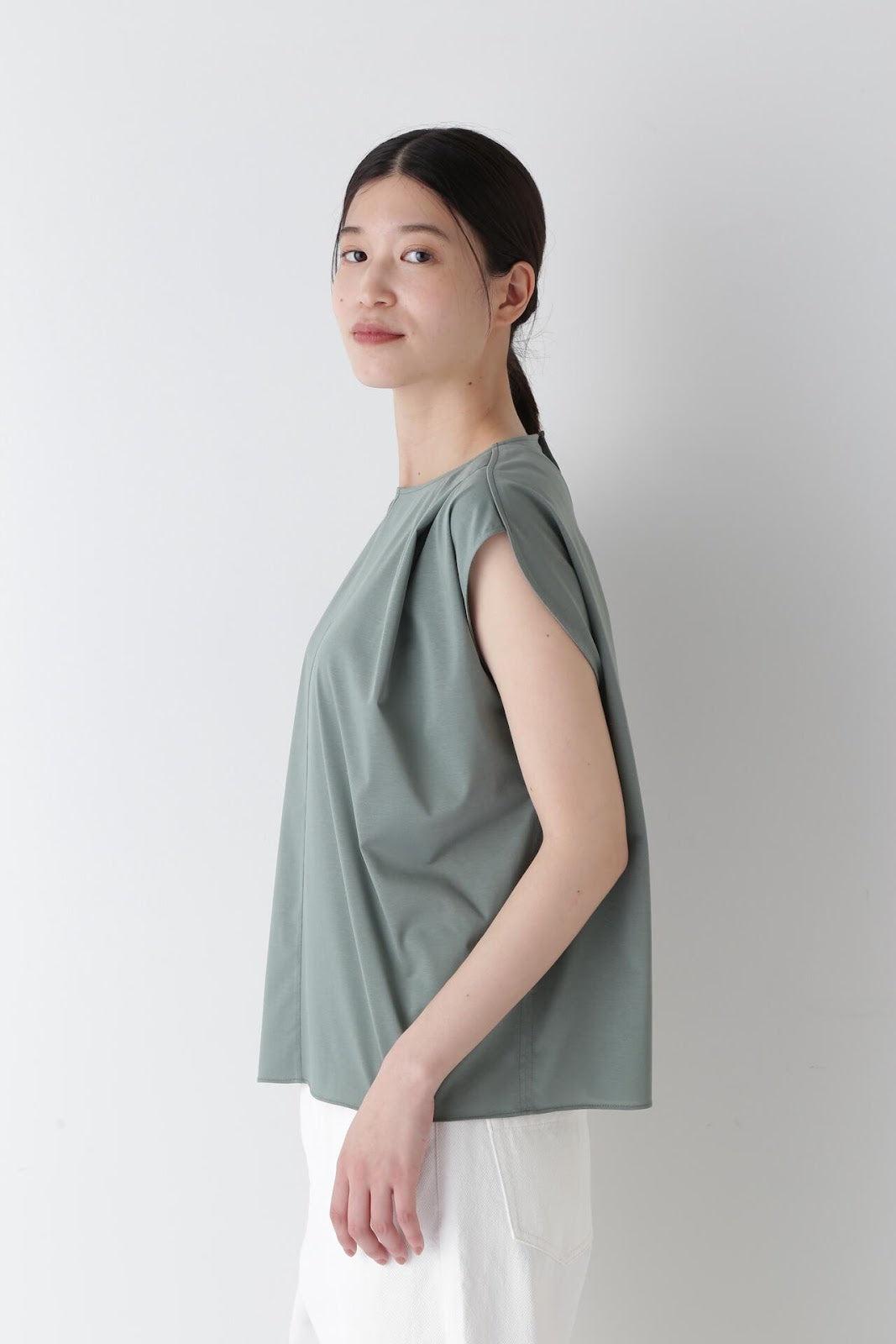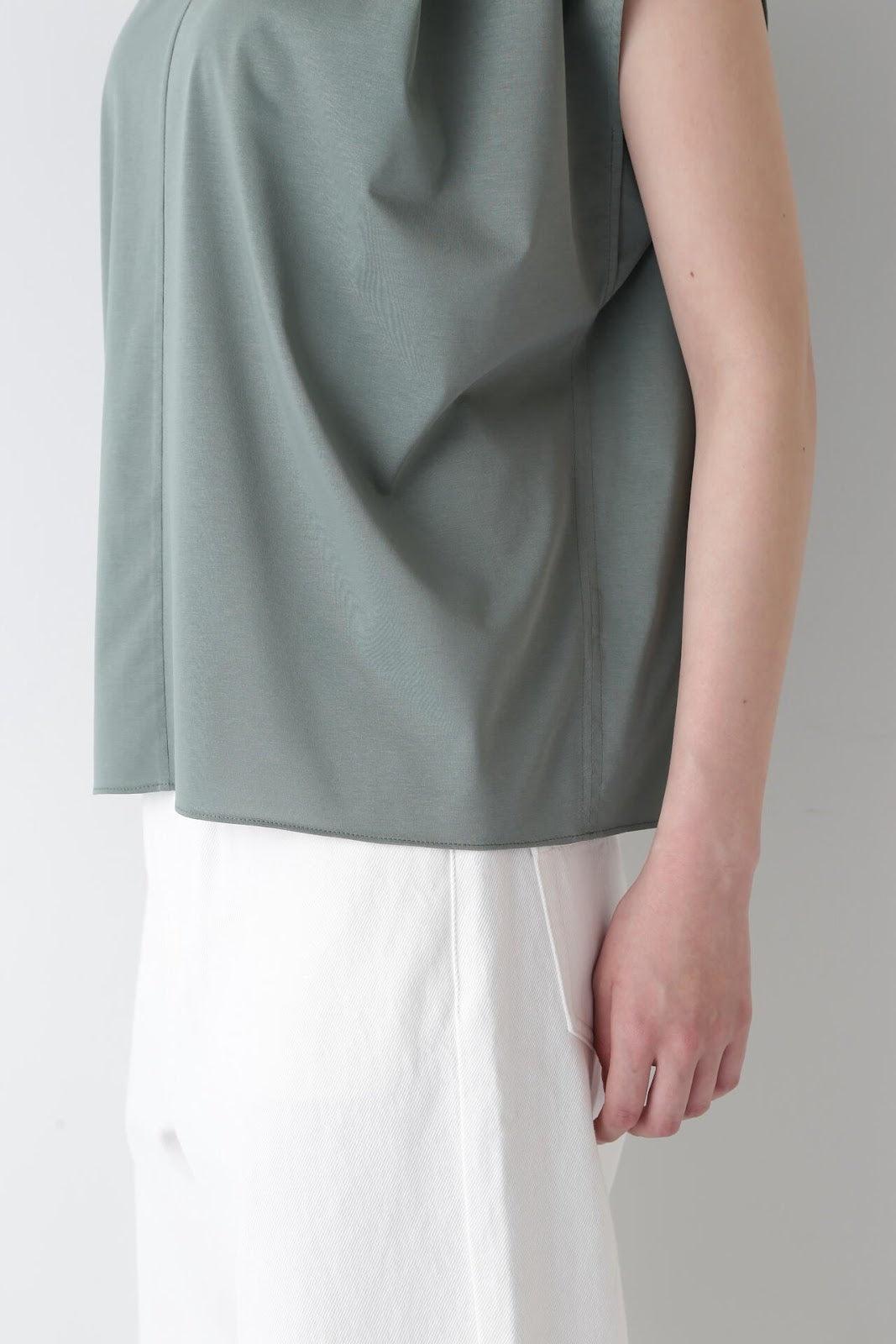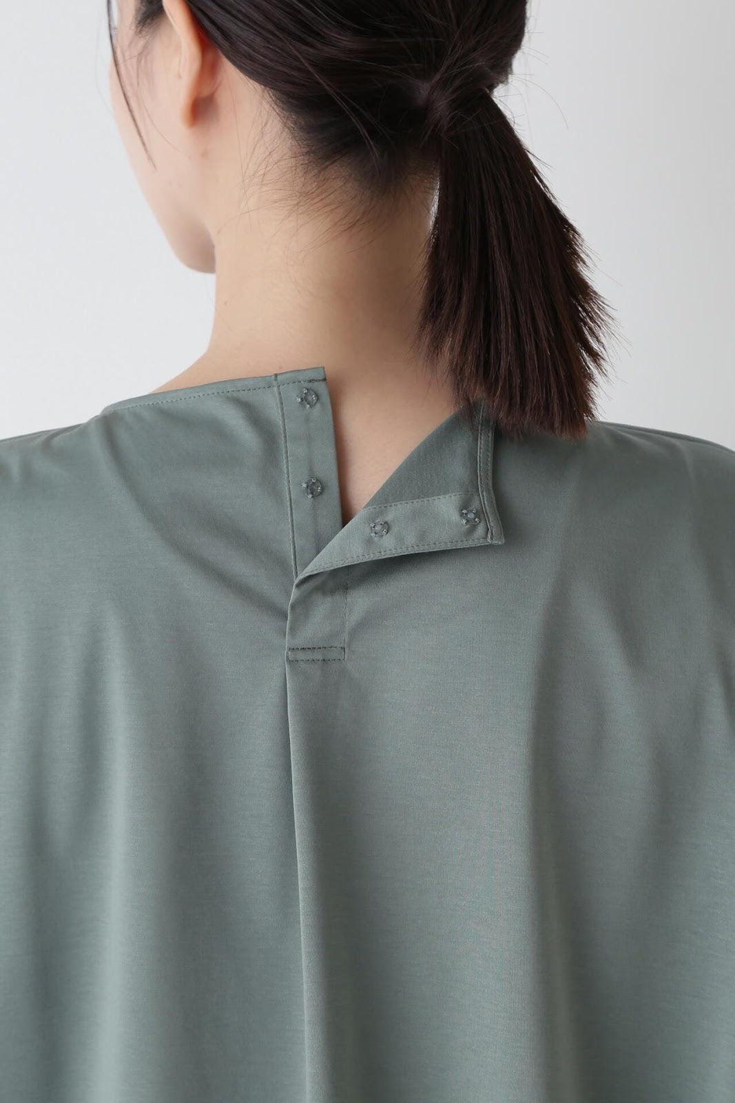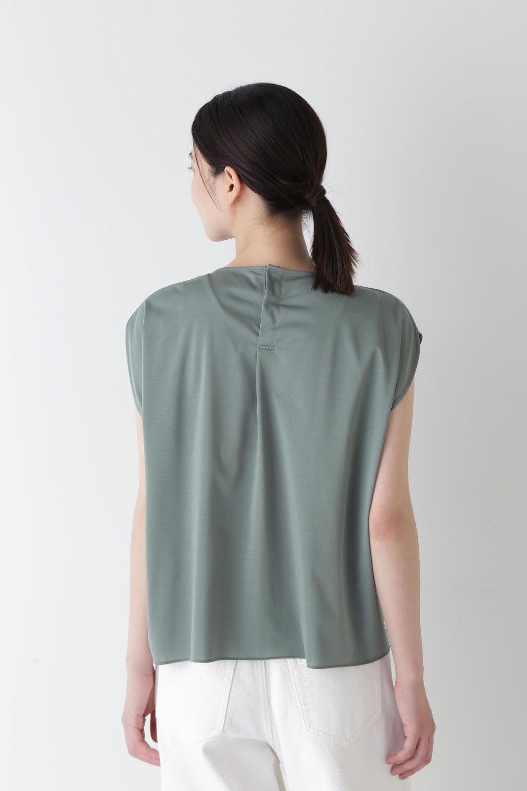 剪裁與縫製兼具女性魅力與舒適感 [設計要點] 這款剪裁與縫製相結合的套頭衫,深法式袖子,中間剪裁的多爾曼袖子看起來很細緻。面料採用全梭織工藝,乾淨利落。面料採用針織面料,既有梭織面料的手感,又保留了裁剪縫製服裝的舒適質感。該產品有三種顏色可供選擇:純白色、點彩粉色和淺綠色。裁剪縫製的面料給人留下了美好的印象,因此建議用於辦公室場景。此外,它也是搭配圖案或彩色下裝的完美單品,例如同期推出的摩洛哥印花長褲。