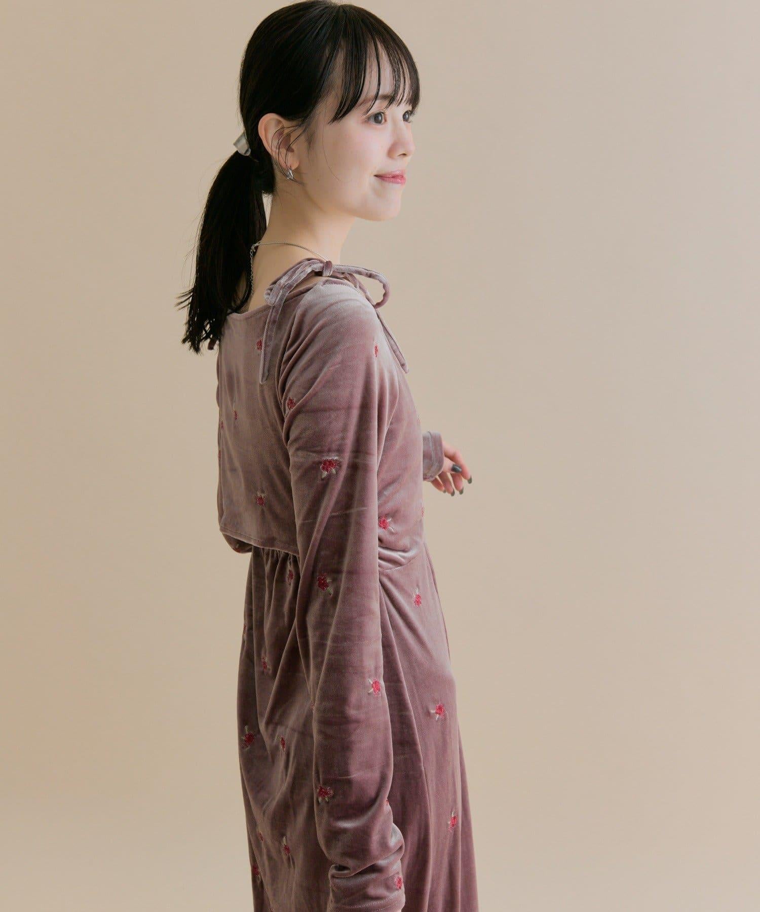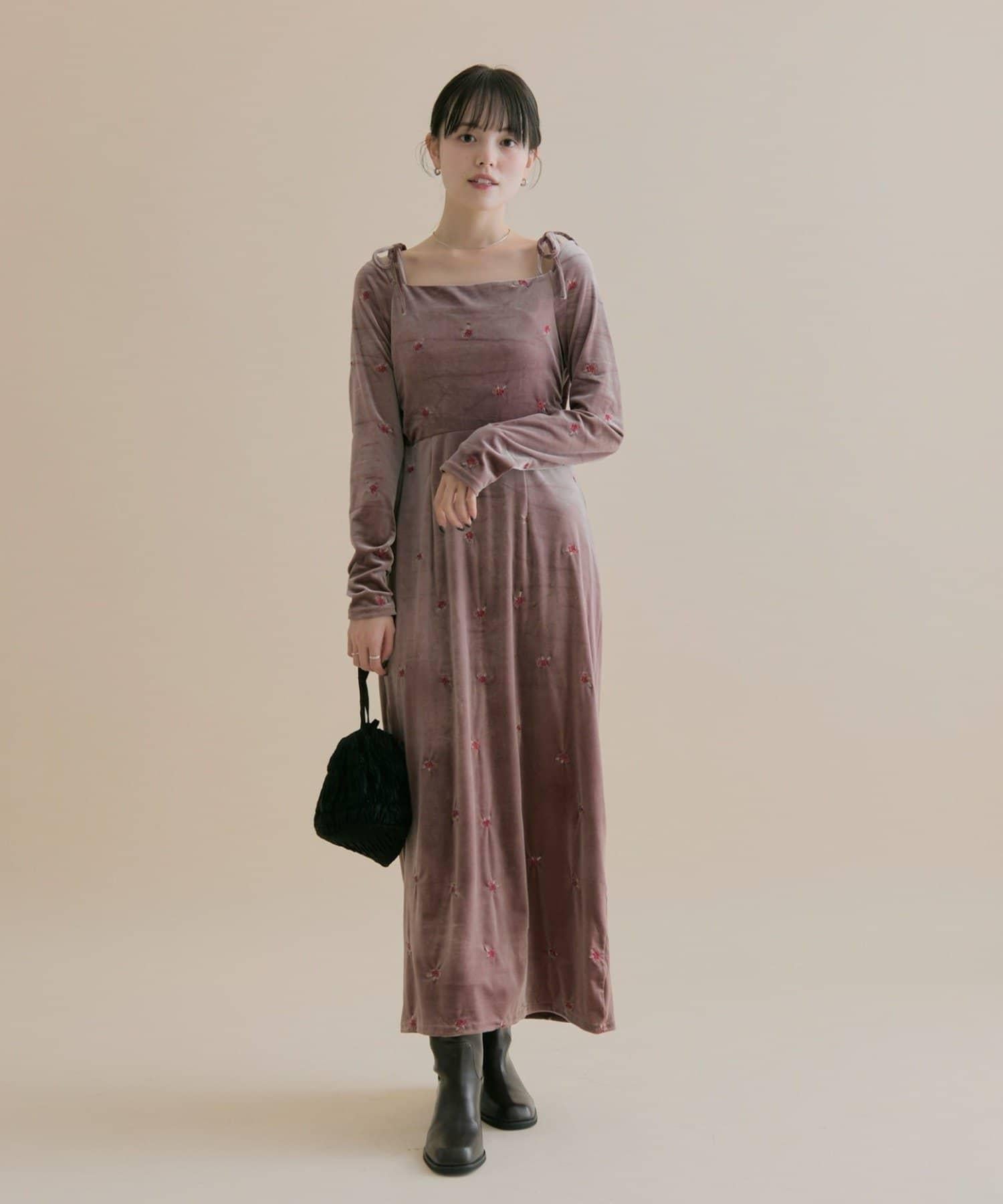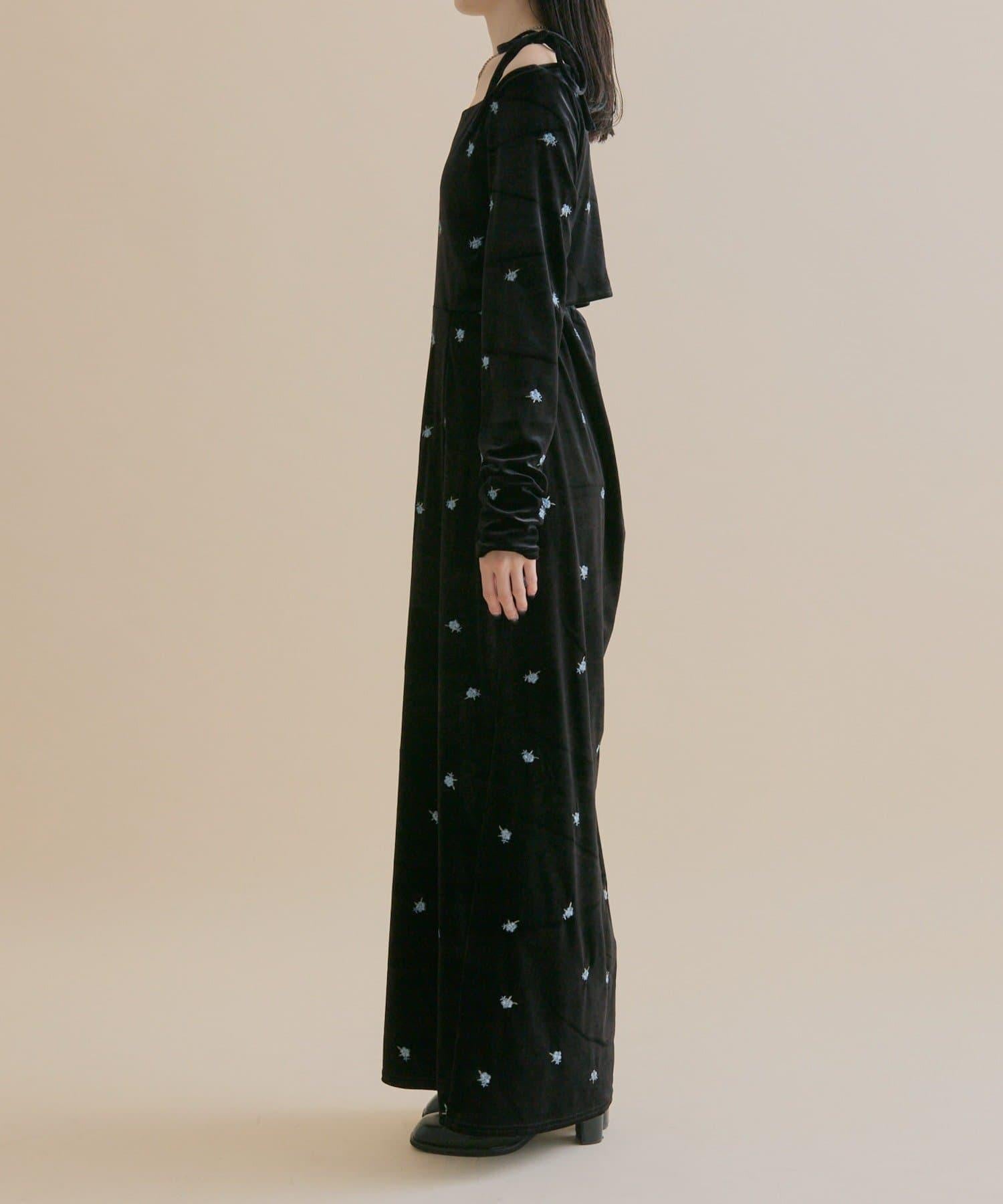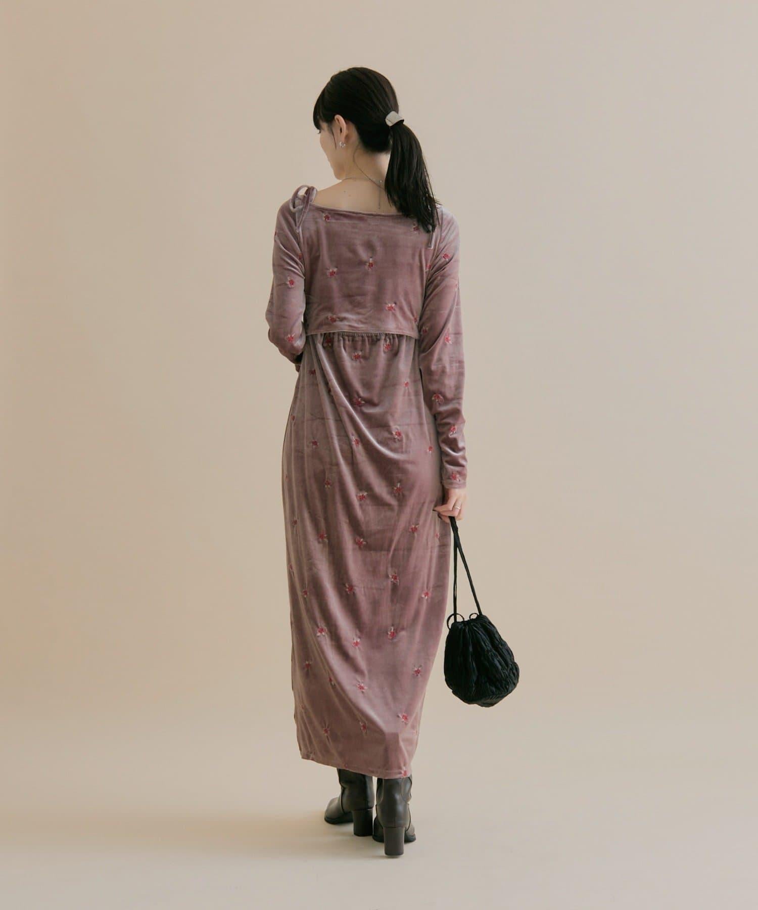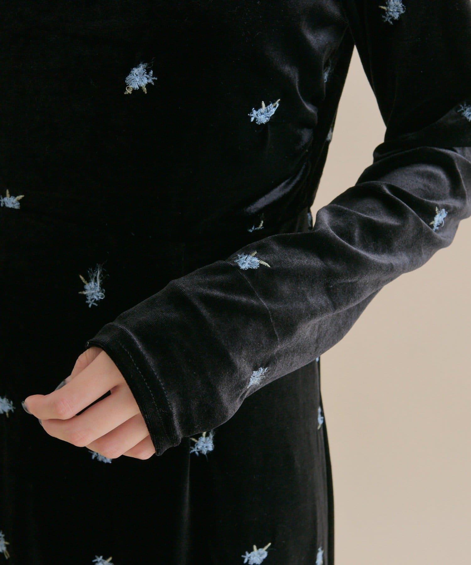 預約商品【森川企畫】花卉圖案天鵝絨連衣裙