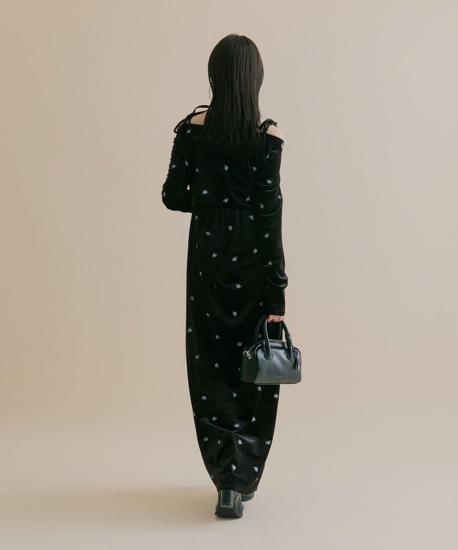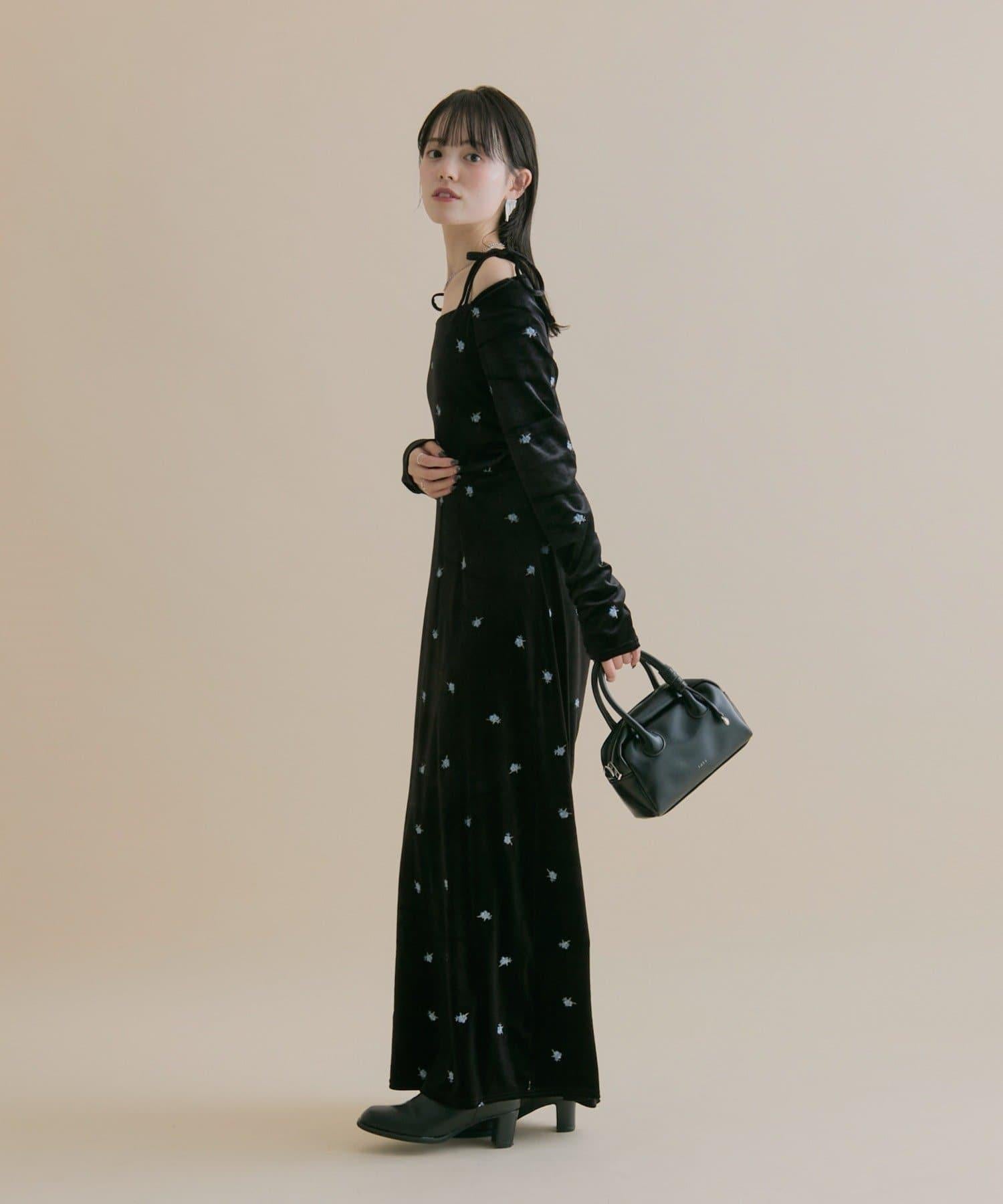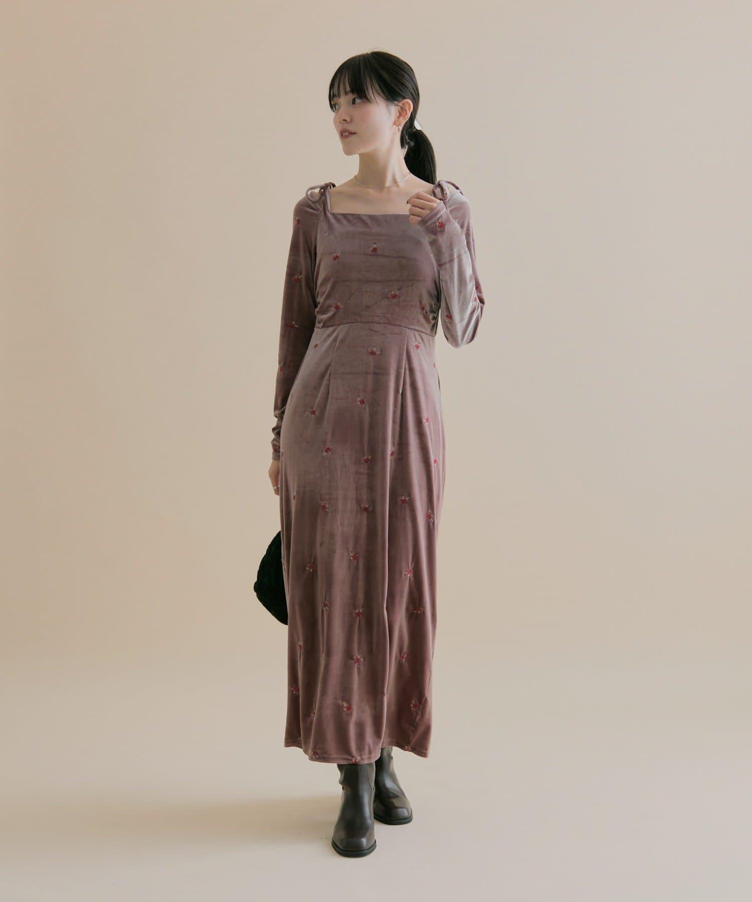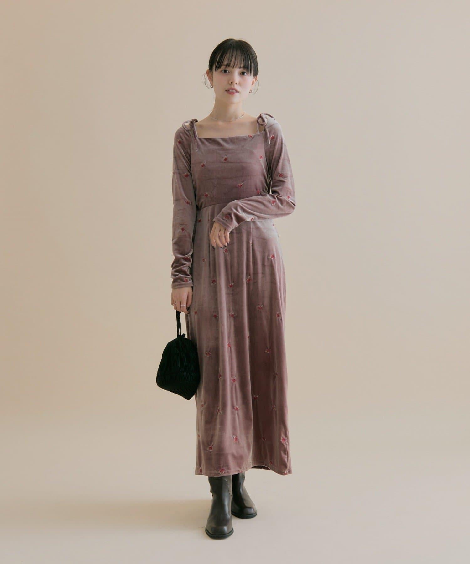 預約商品【森川企畫】花卉圖案天鵝絨連衣裙