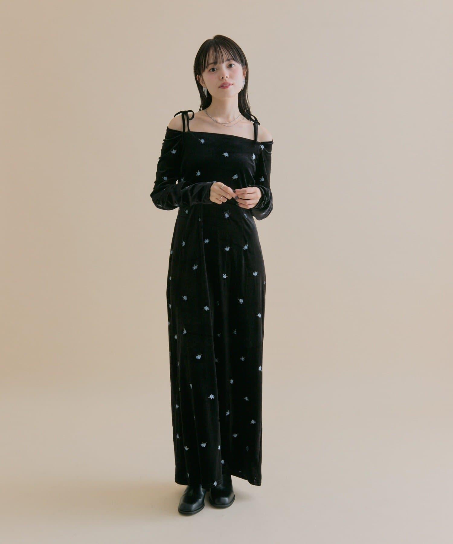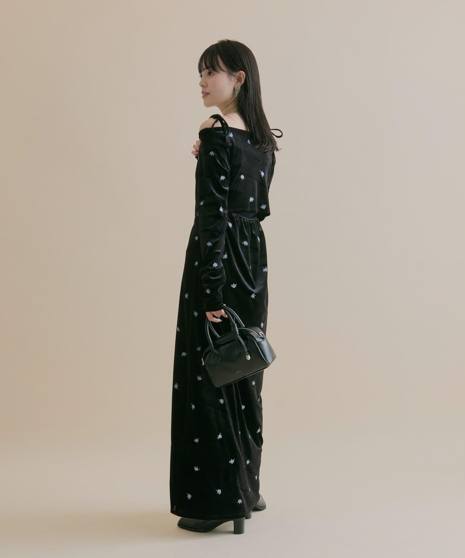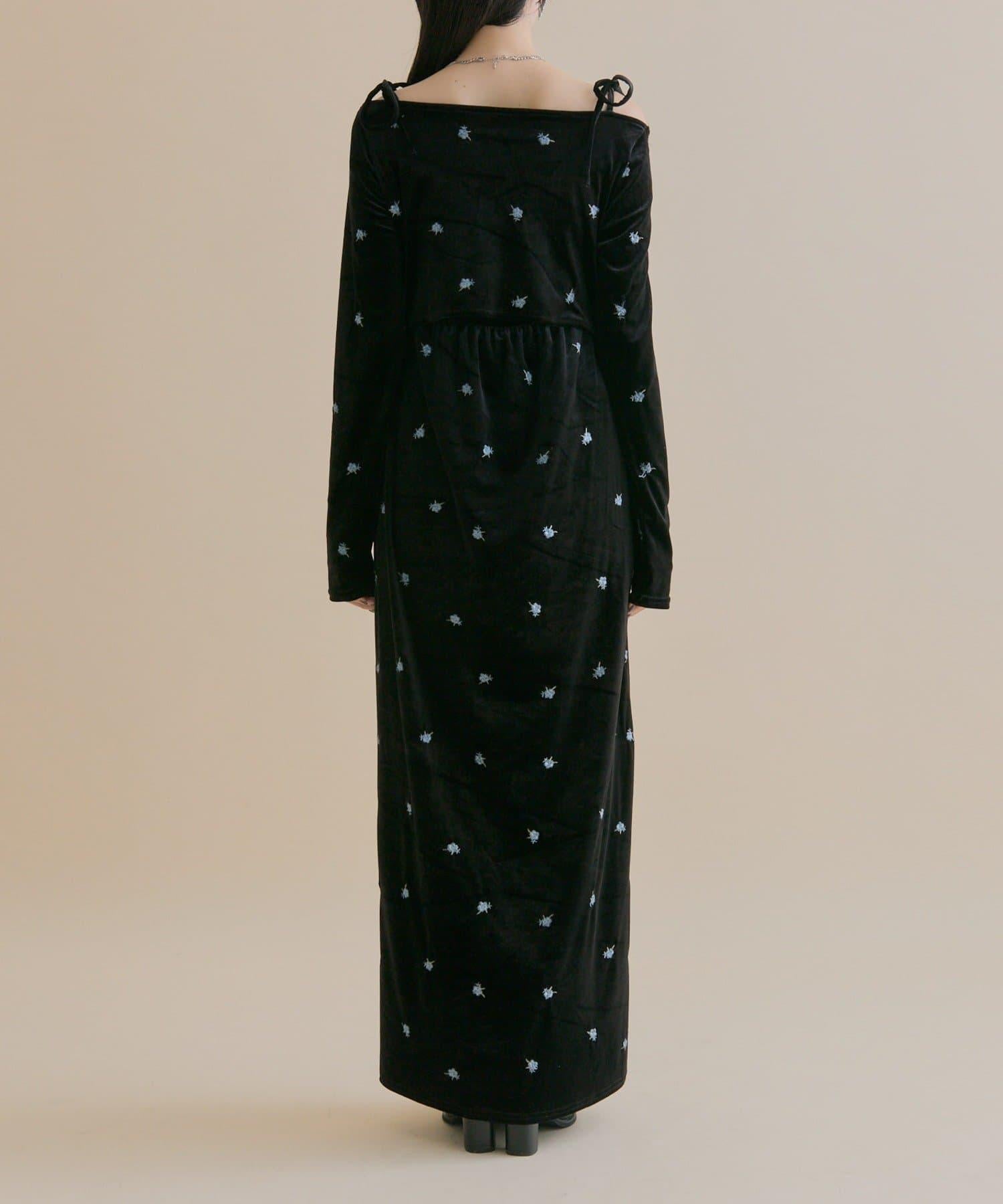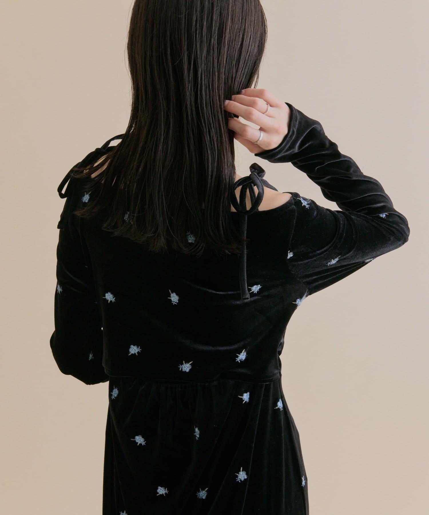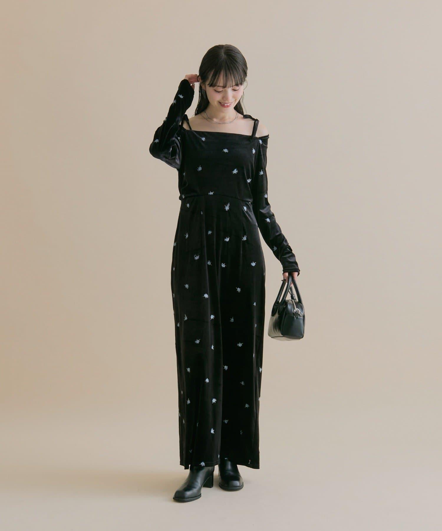 預約商品【森川企畫】花卉圖案天鵝絨連衣裙