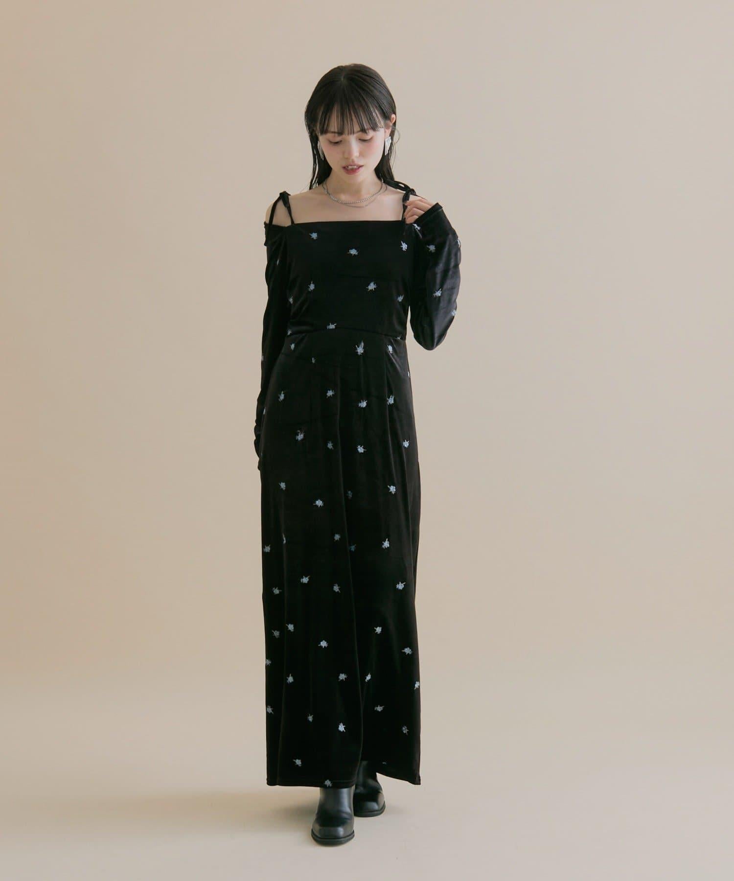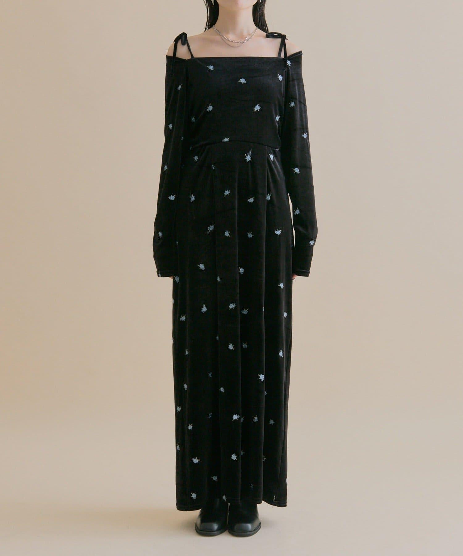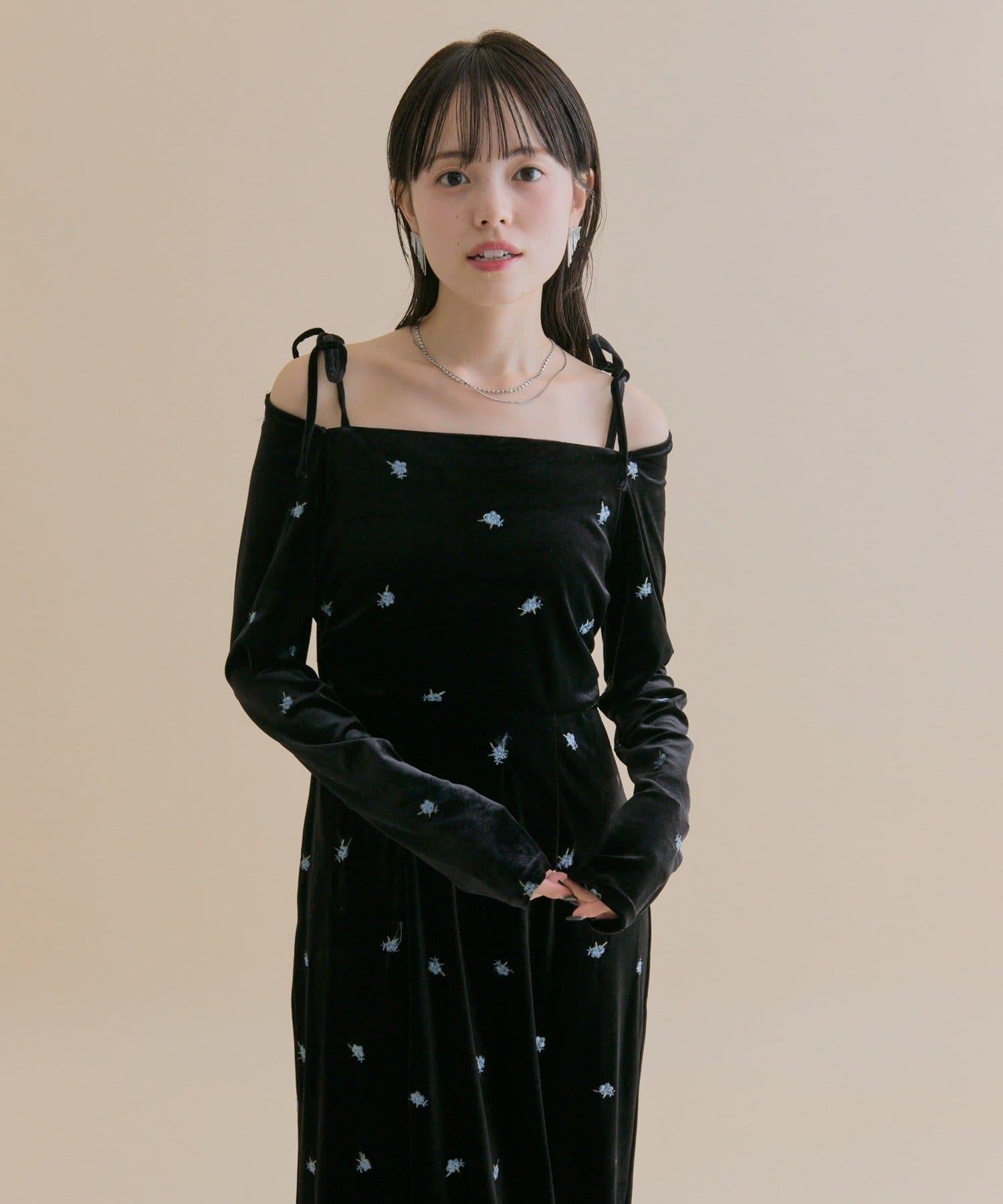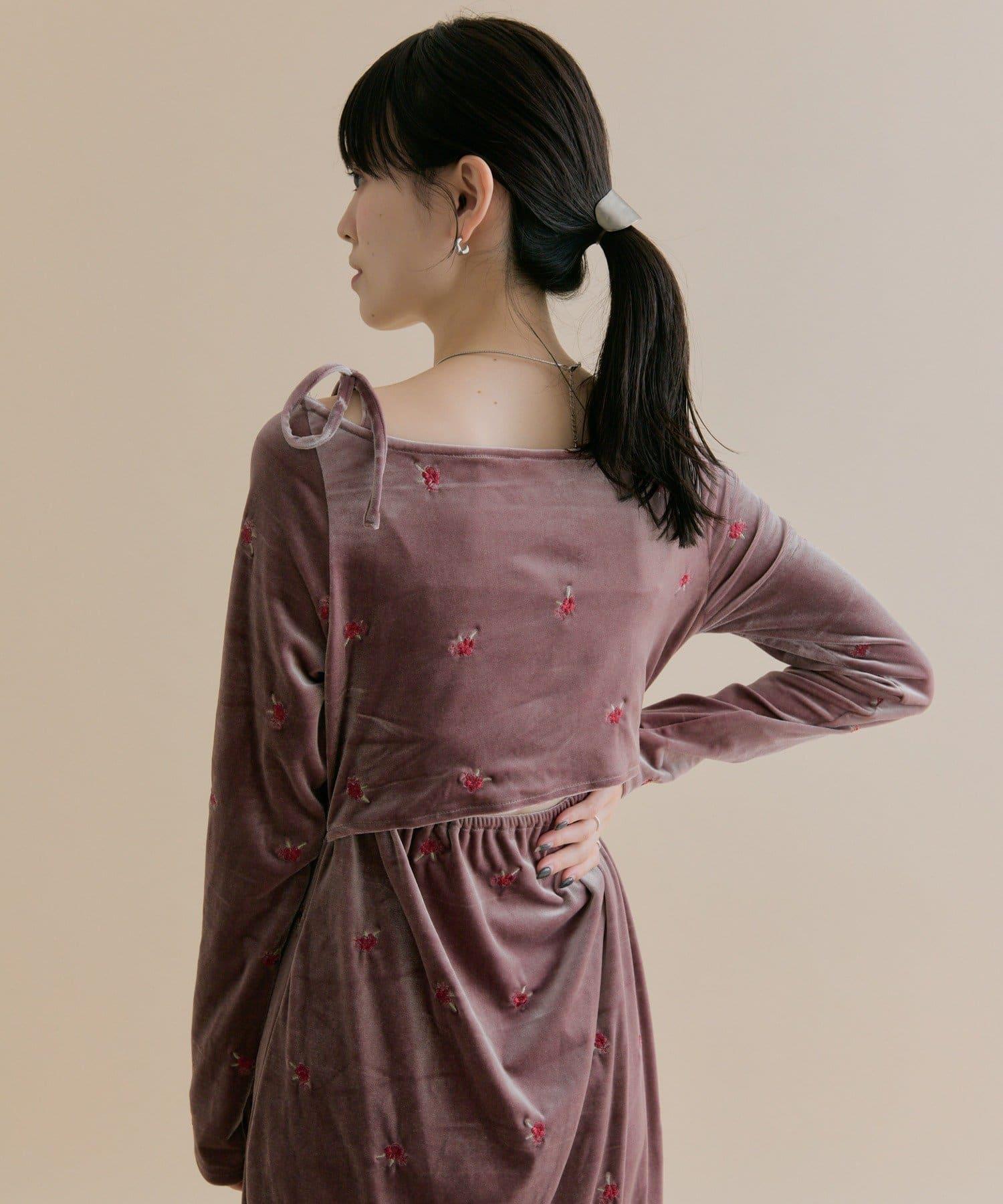 預約商品【森川企畫】花卉圖案天鵝絨連衣裙
