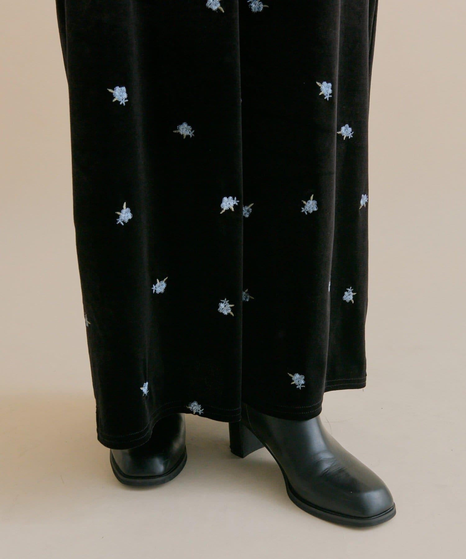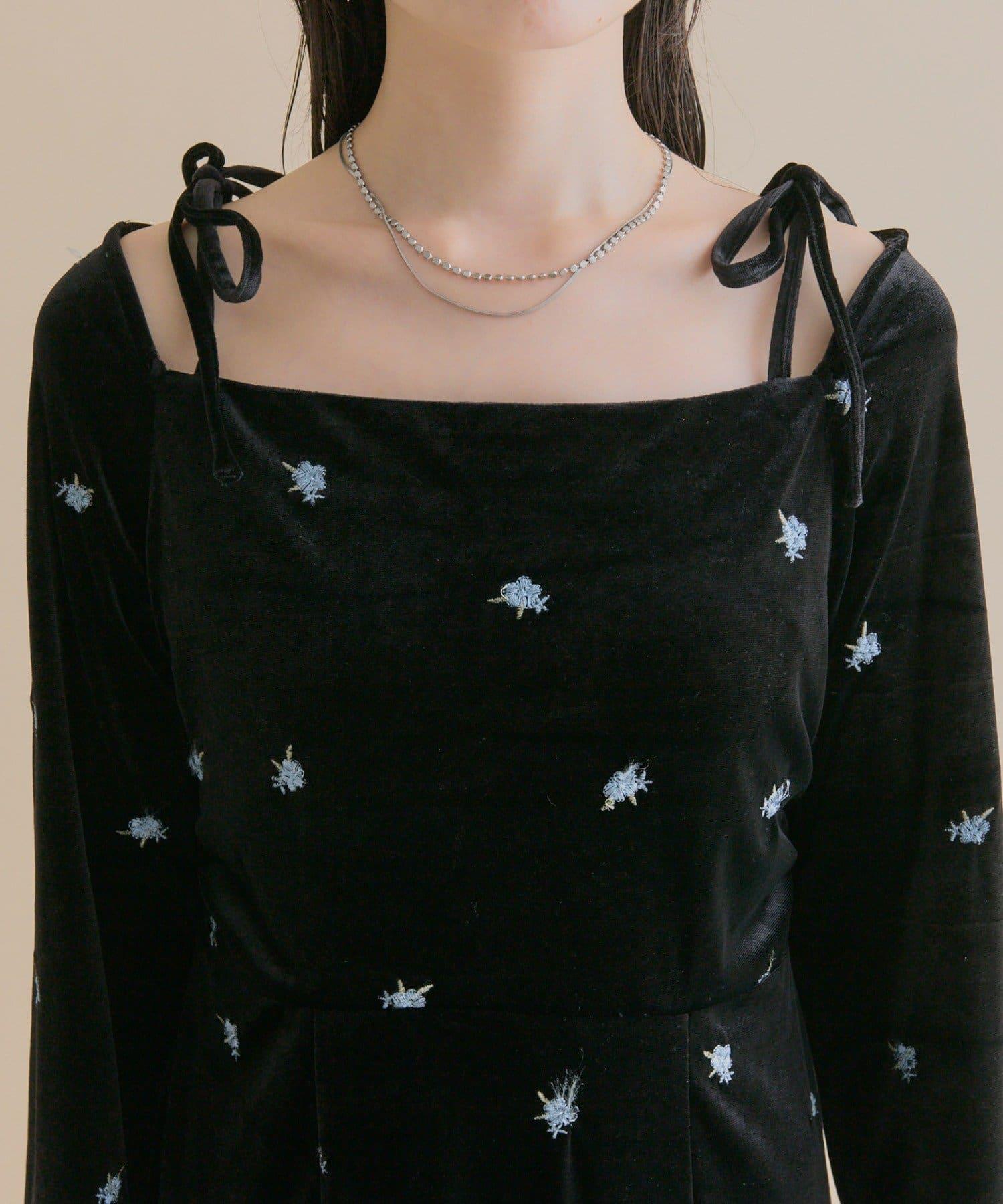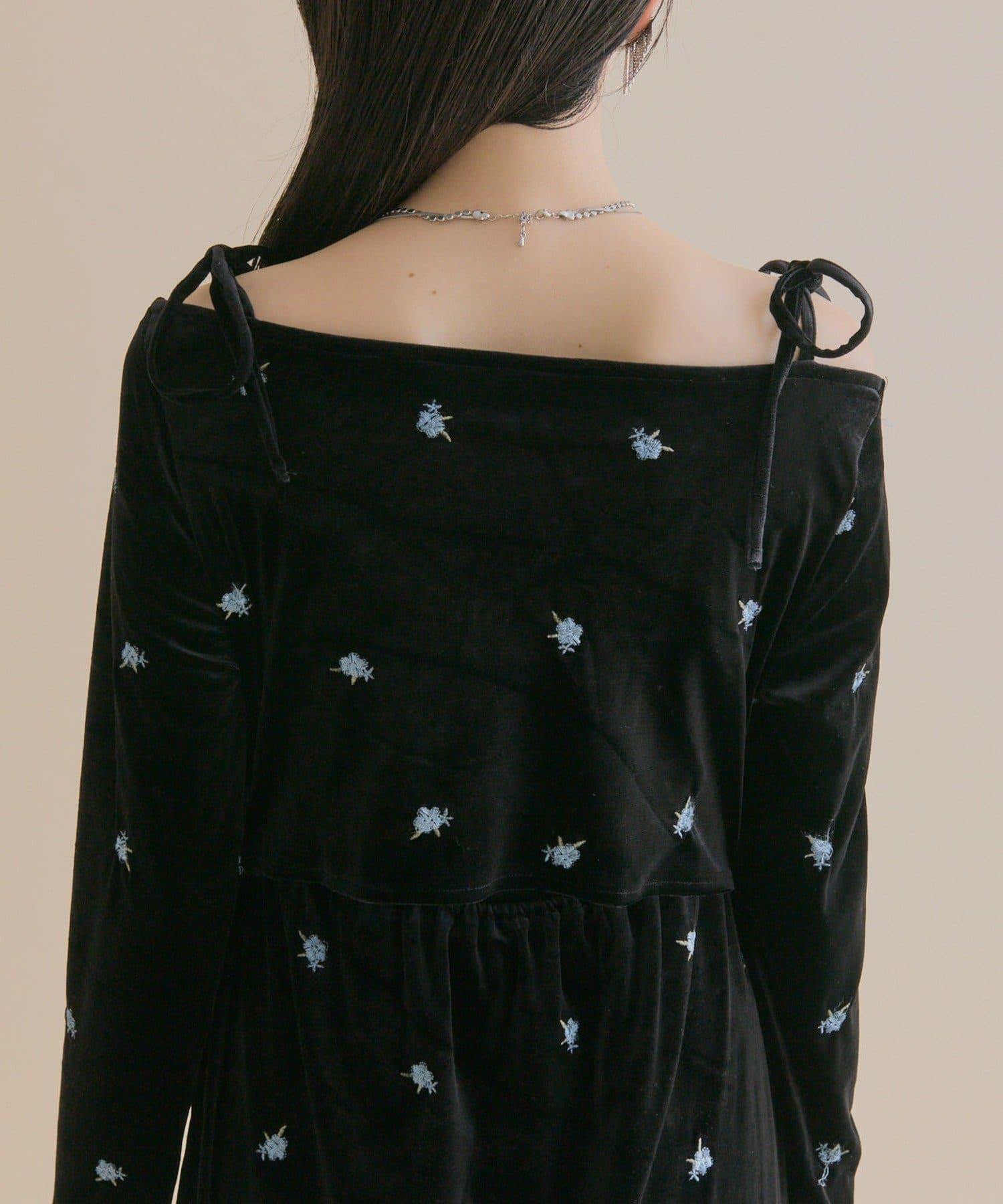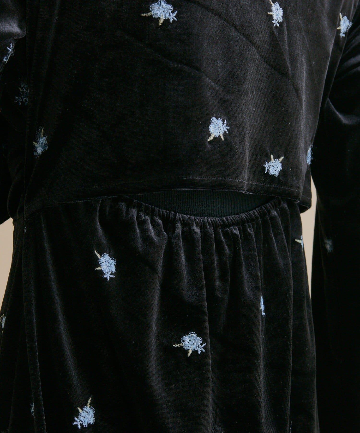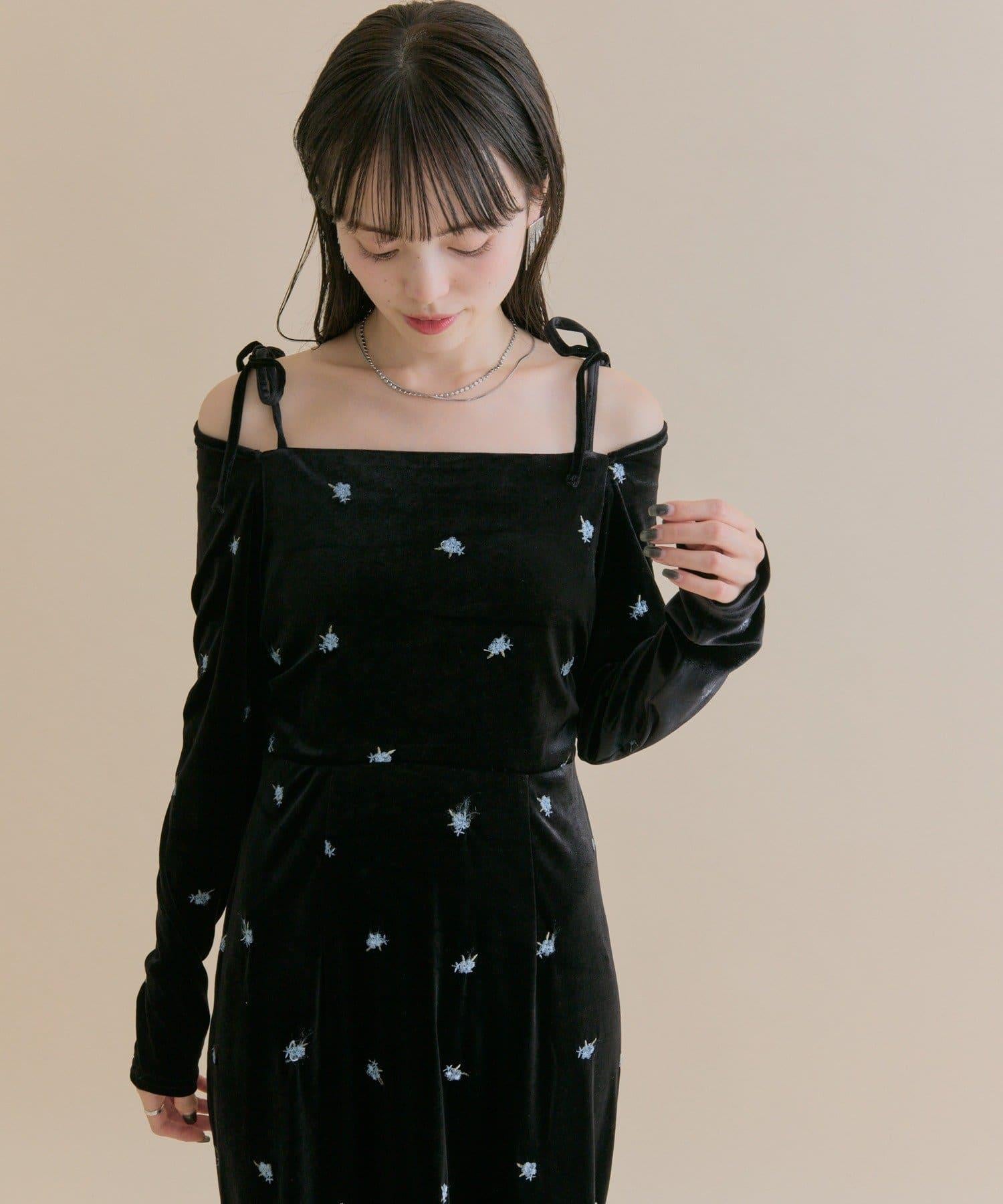 預約商品【森川企畫】花卉圖案天鵝絨連衣裙