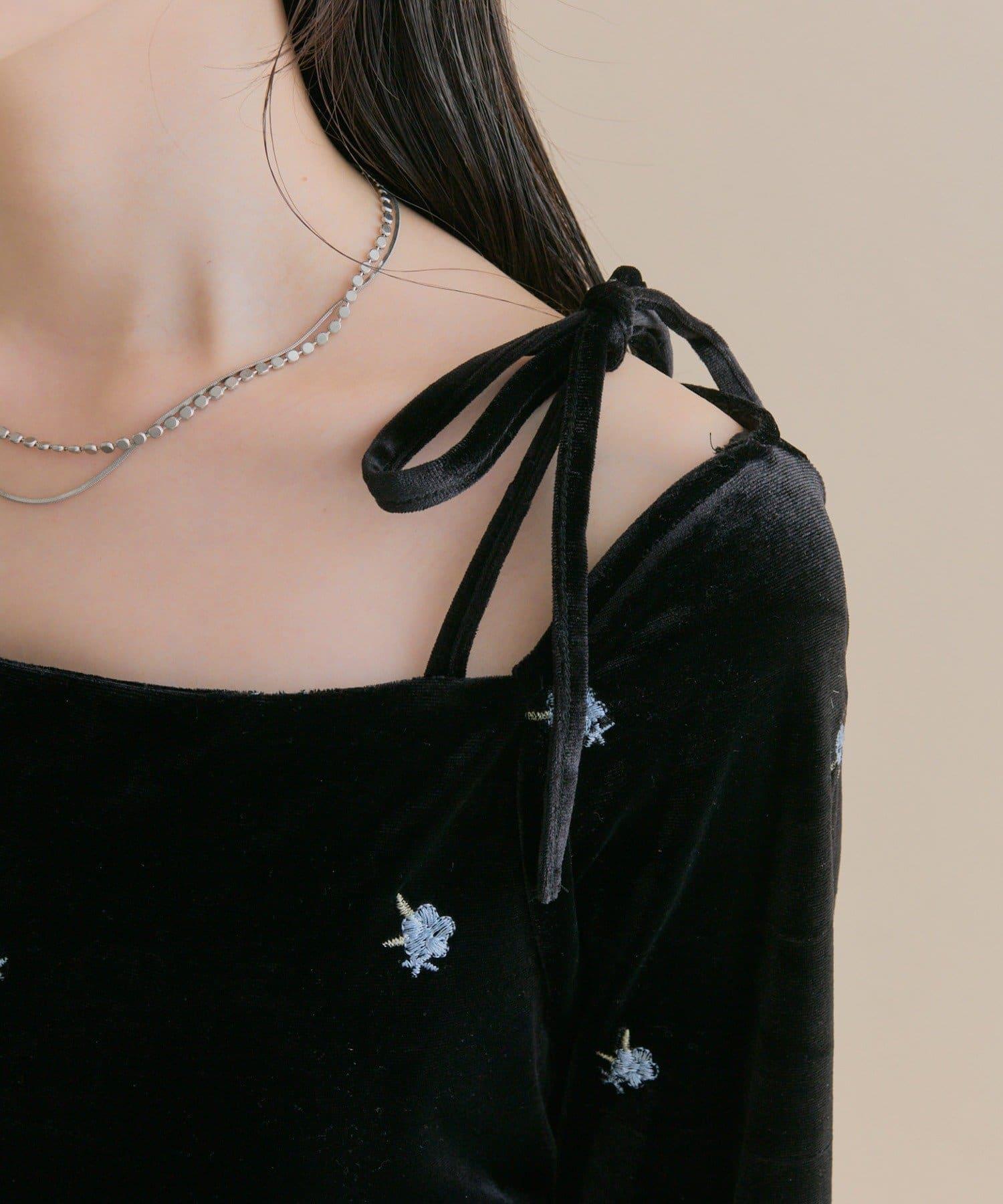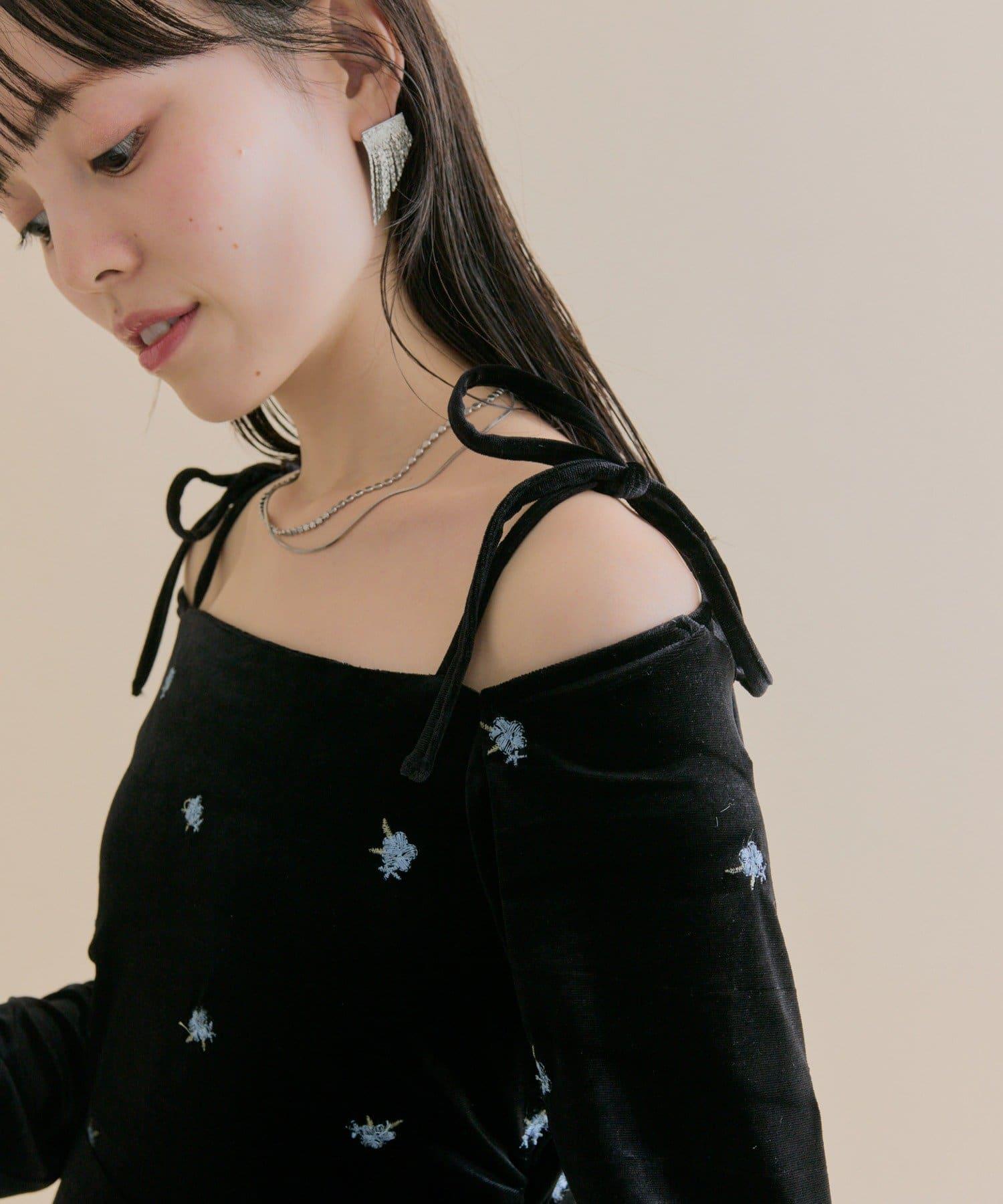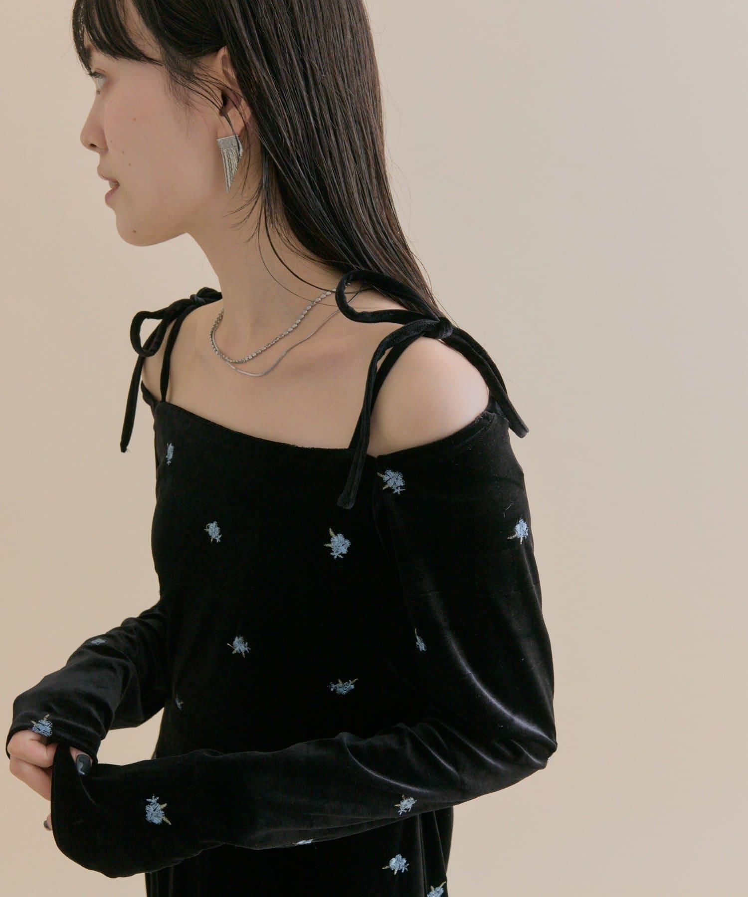 肩部的緞帶和背部的露膚設計,突出並營造出恰到好處的慵懶感╲。